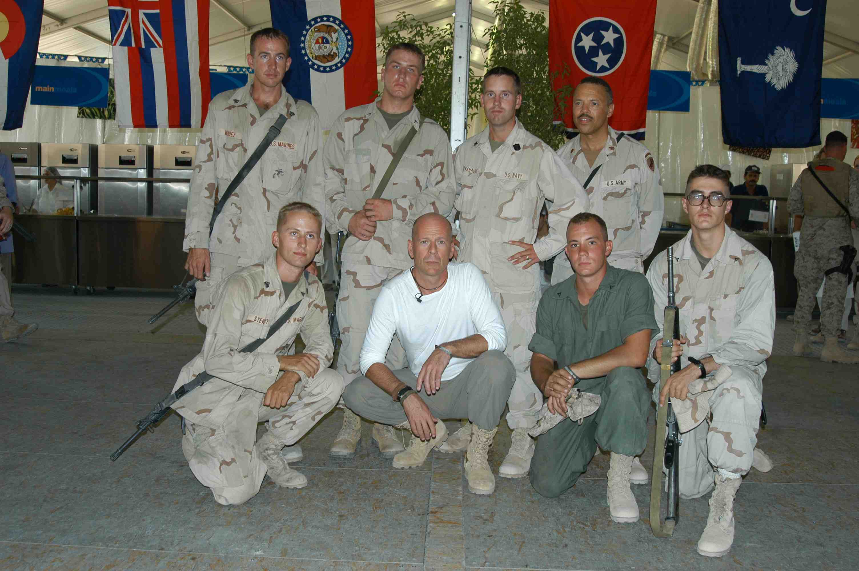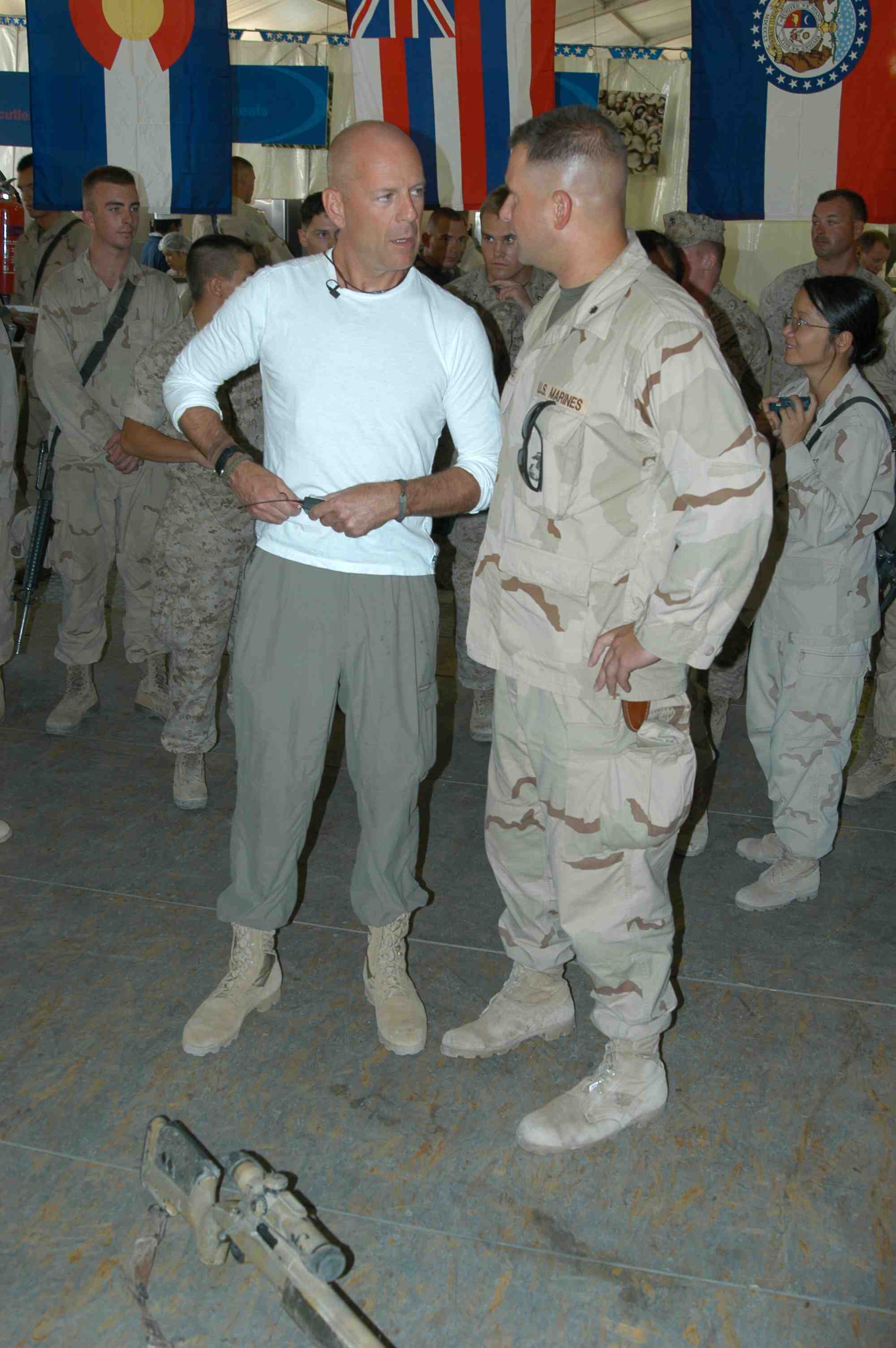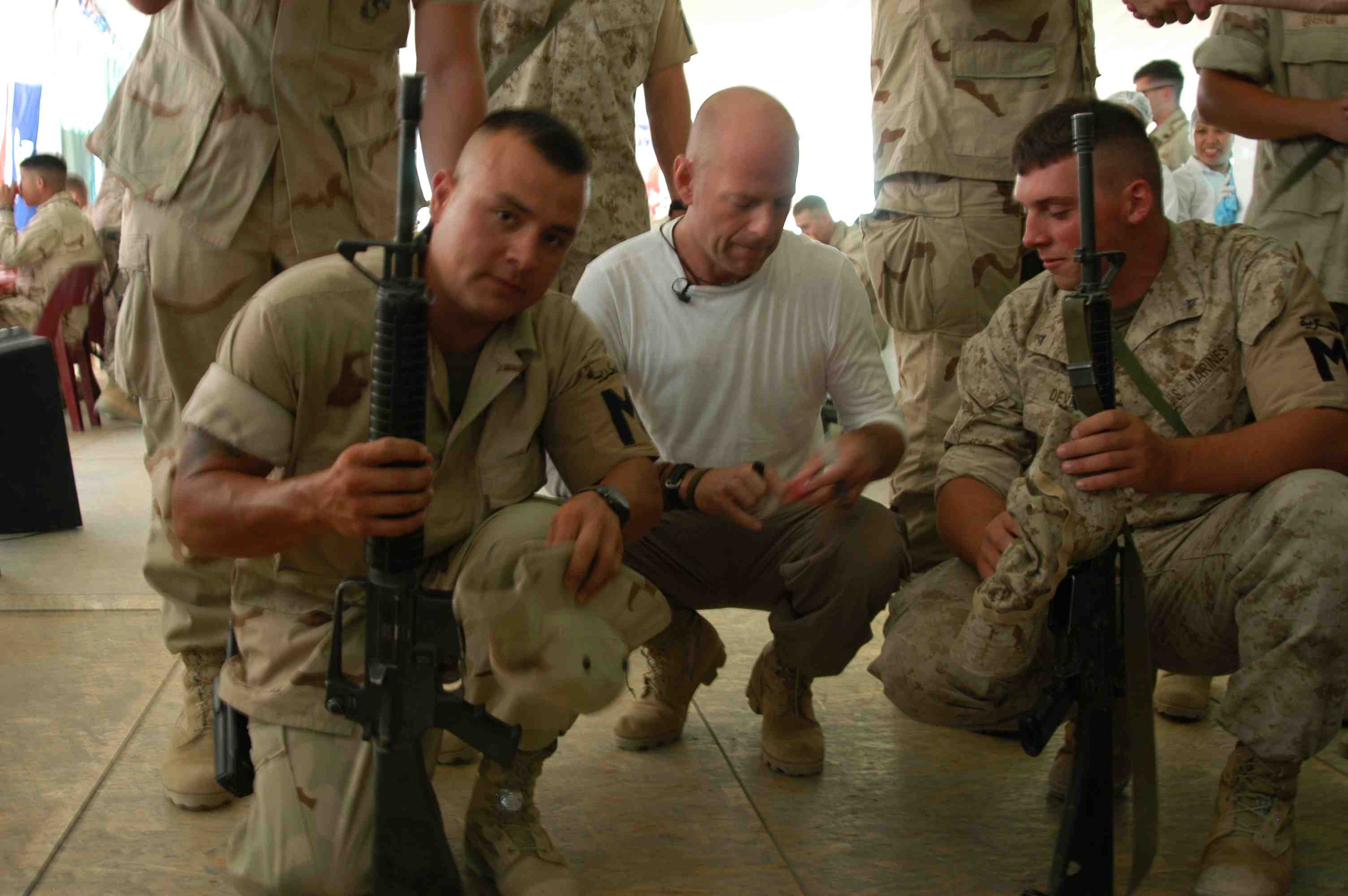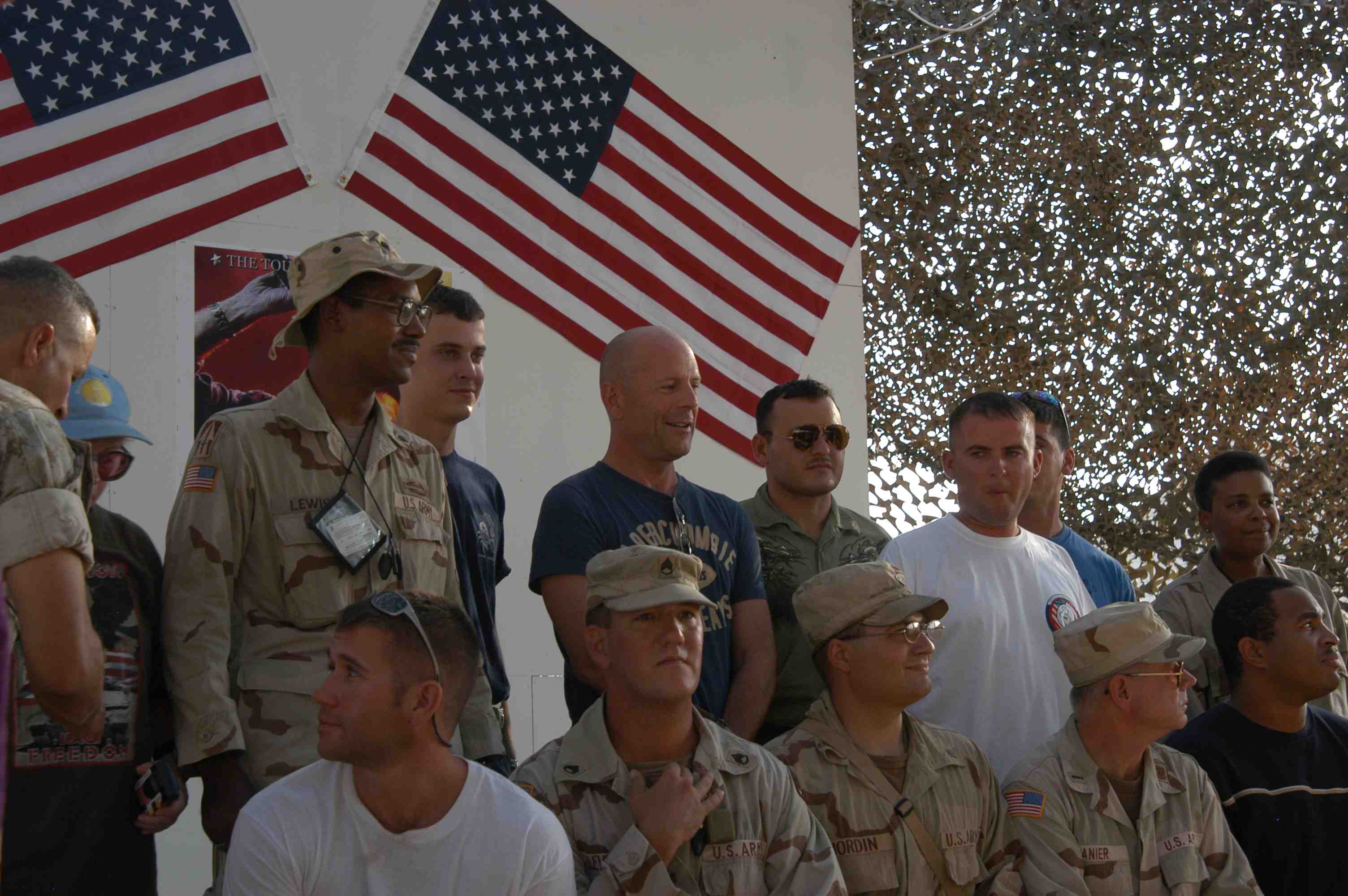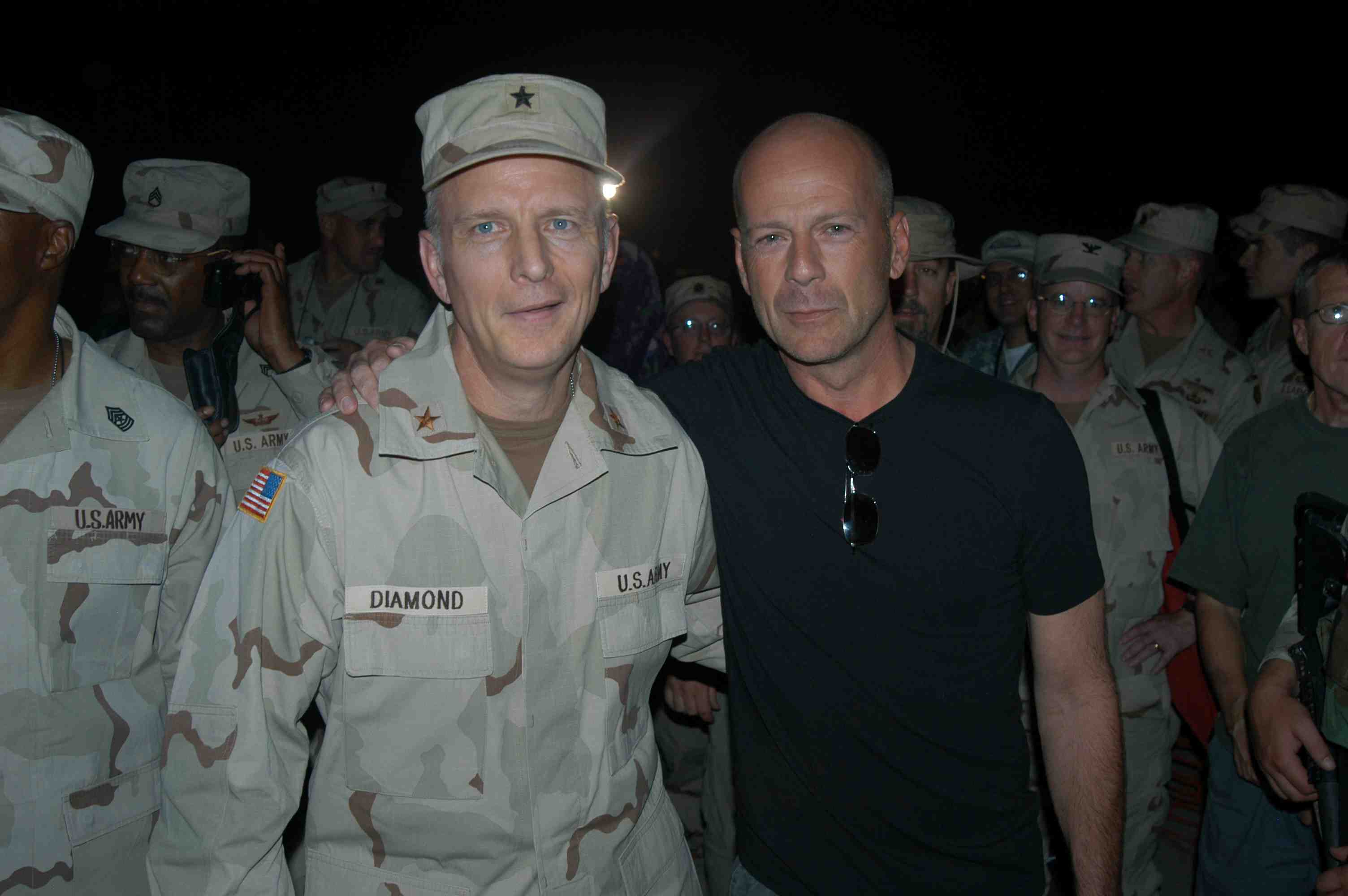 Pictures of Bruce Willis with the troops during a USO tour in Abu Dhabi, Iraq and Kuwait, 2003 (posted previously