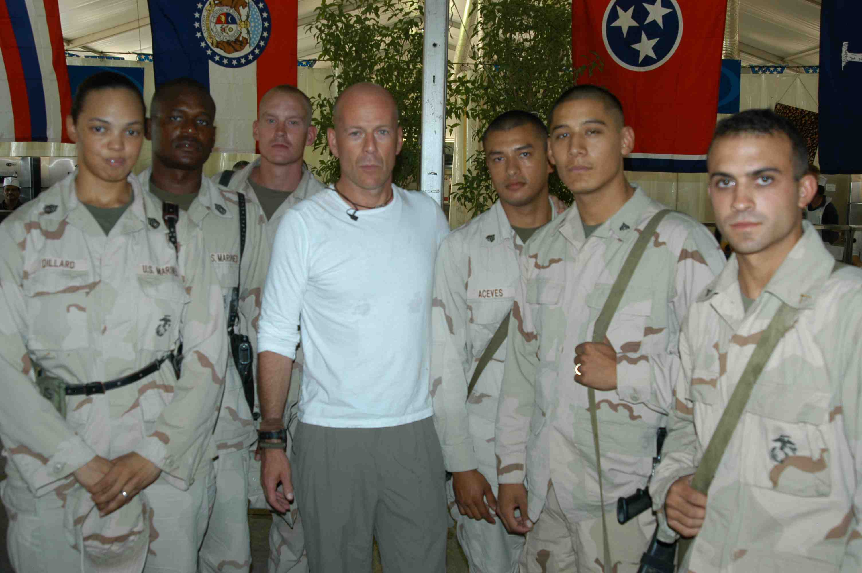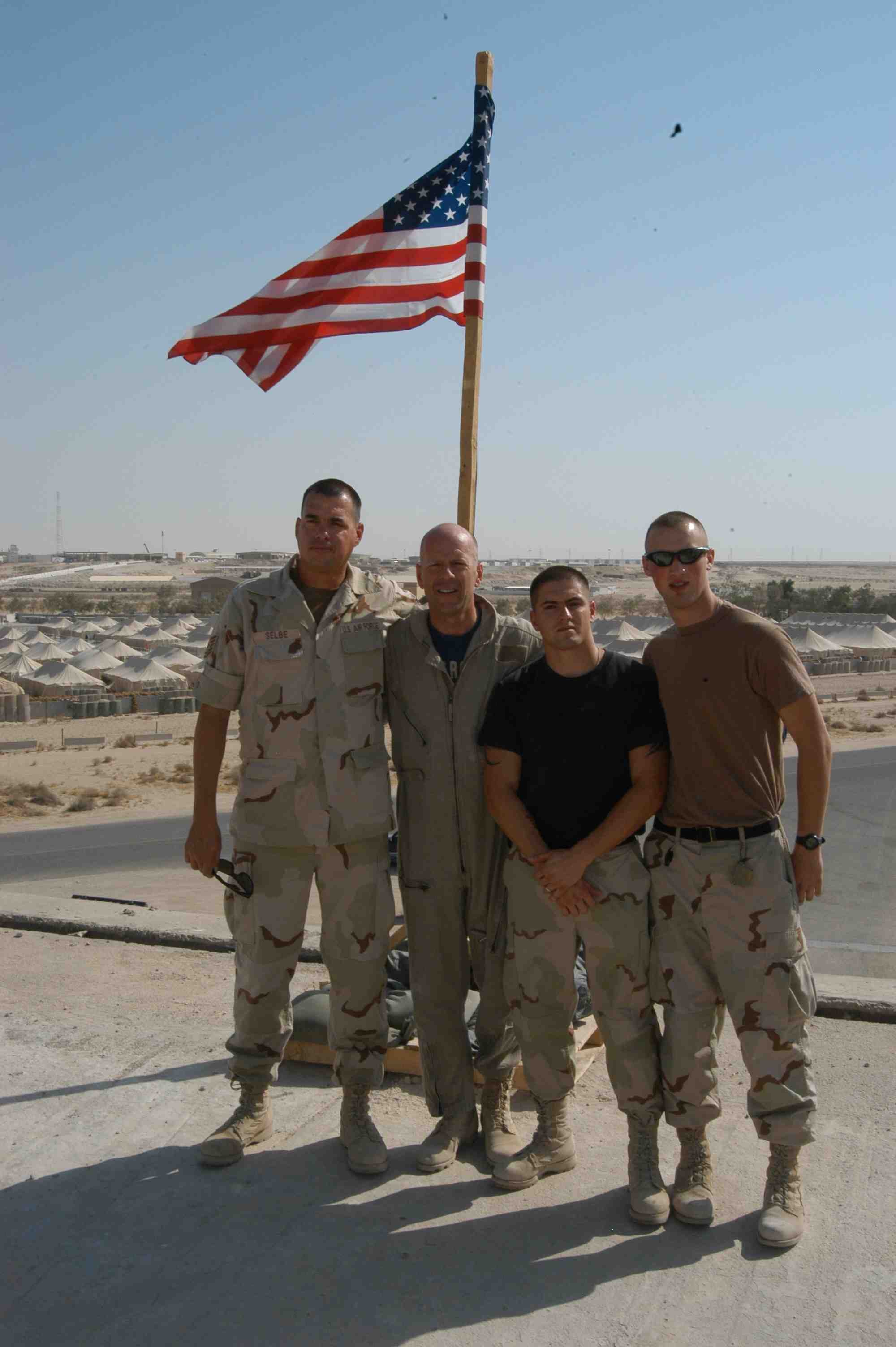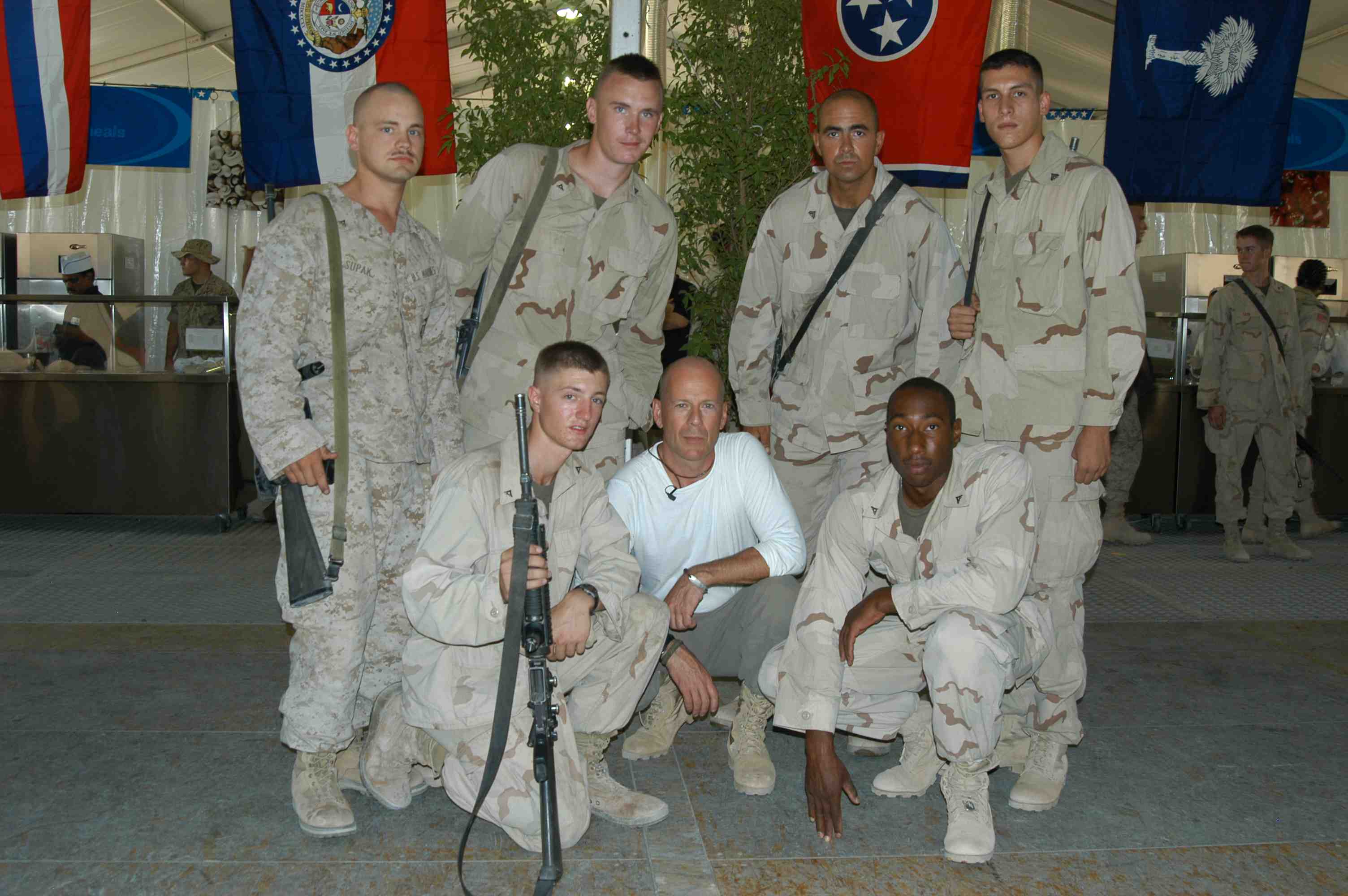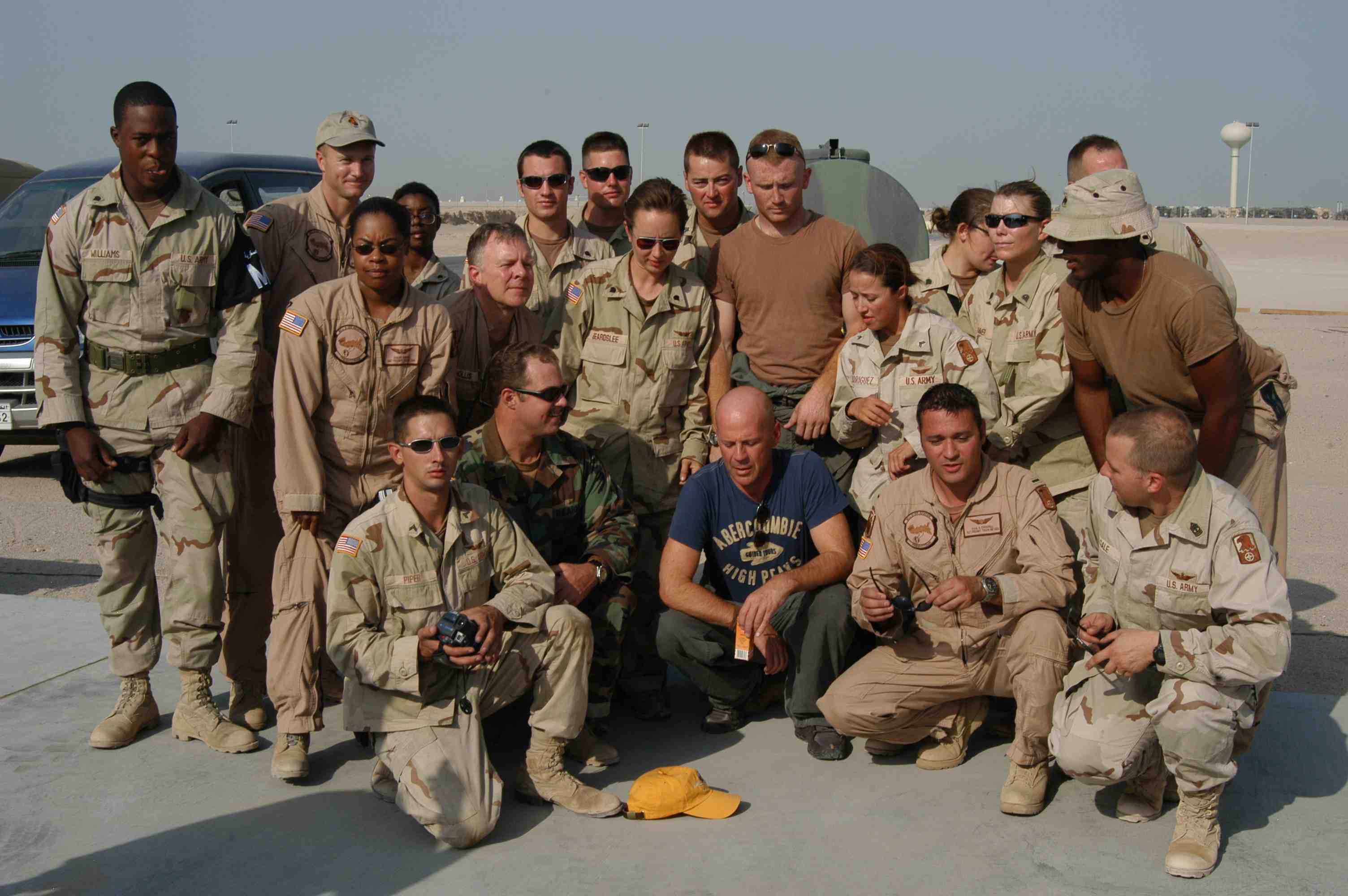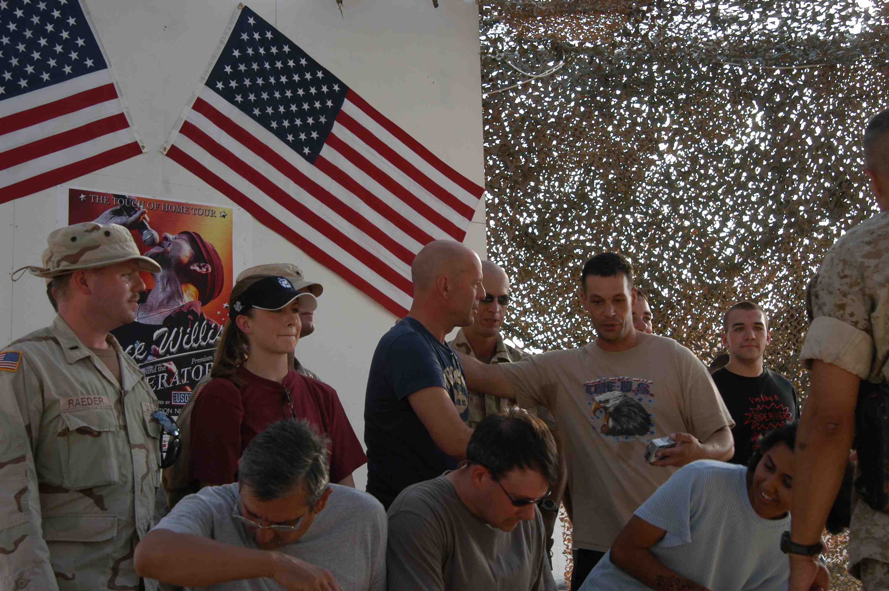 Pictures of Bruce Willis with the troops during a USO tour in Abu Dhabi, Iraq and Kuwait, 2003 (posted previously