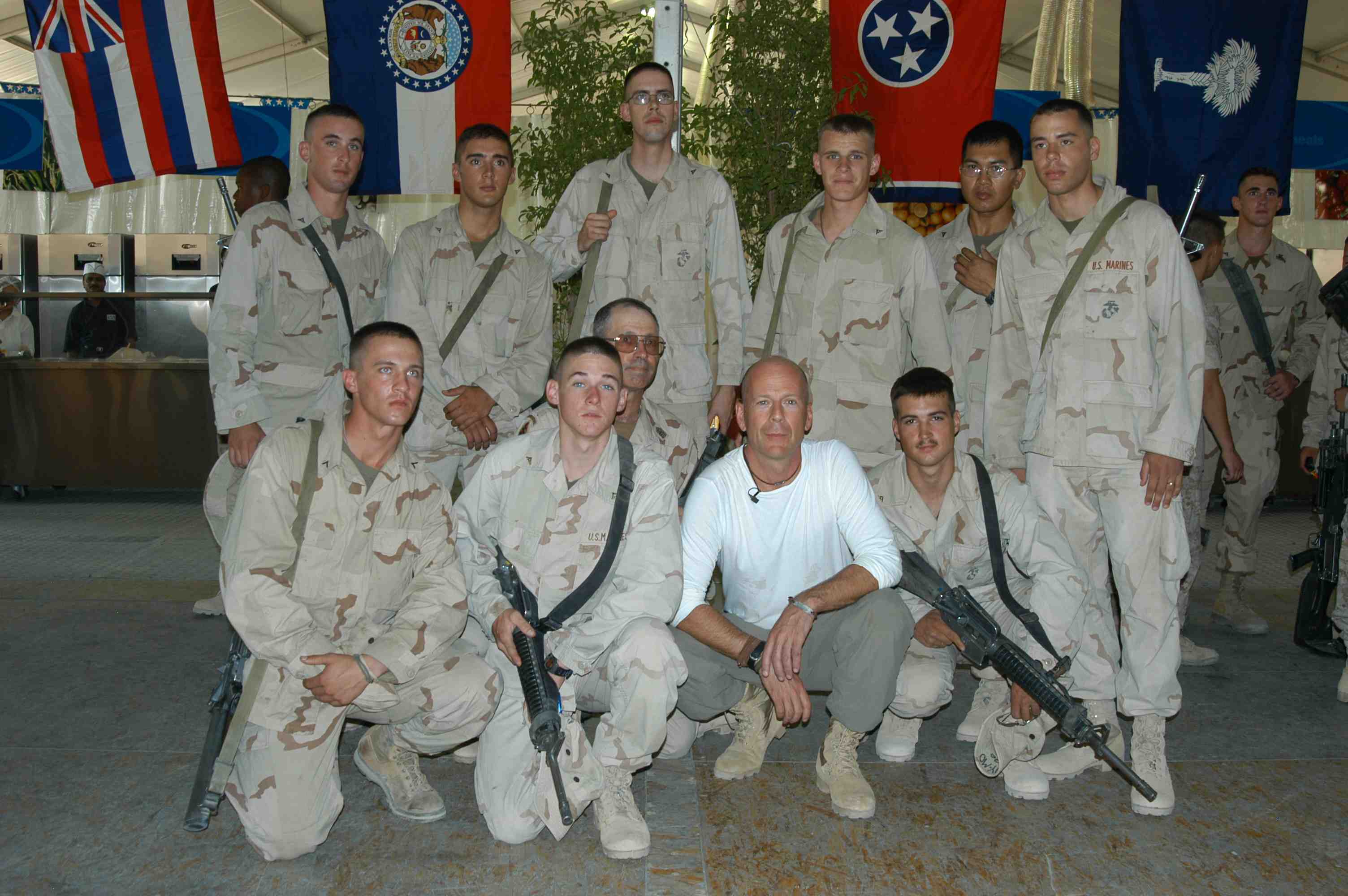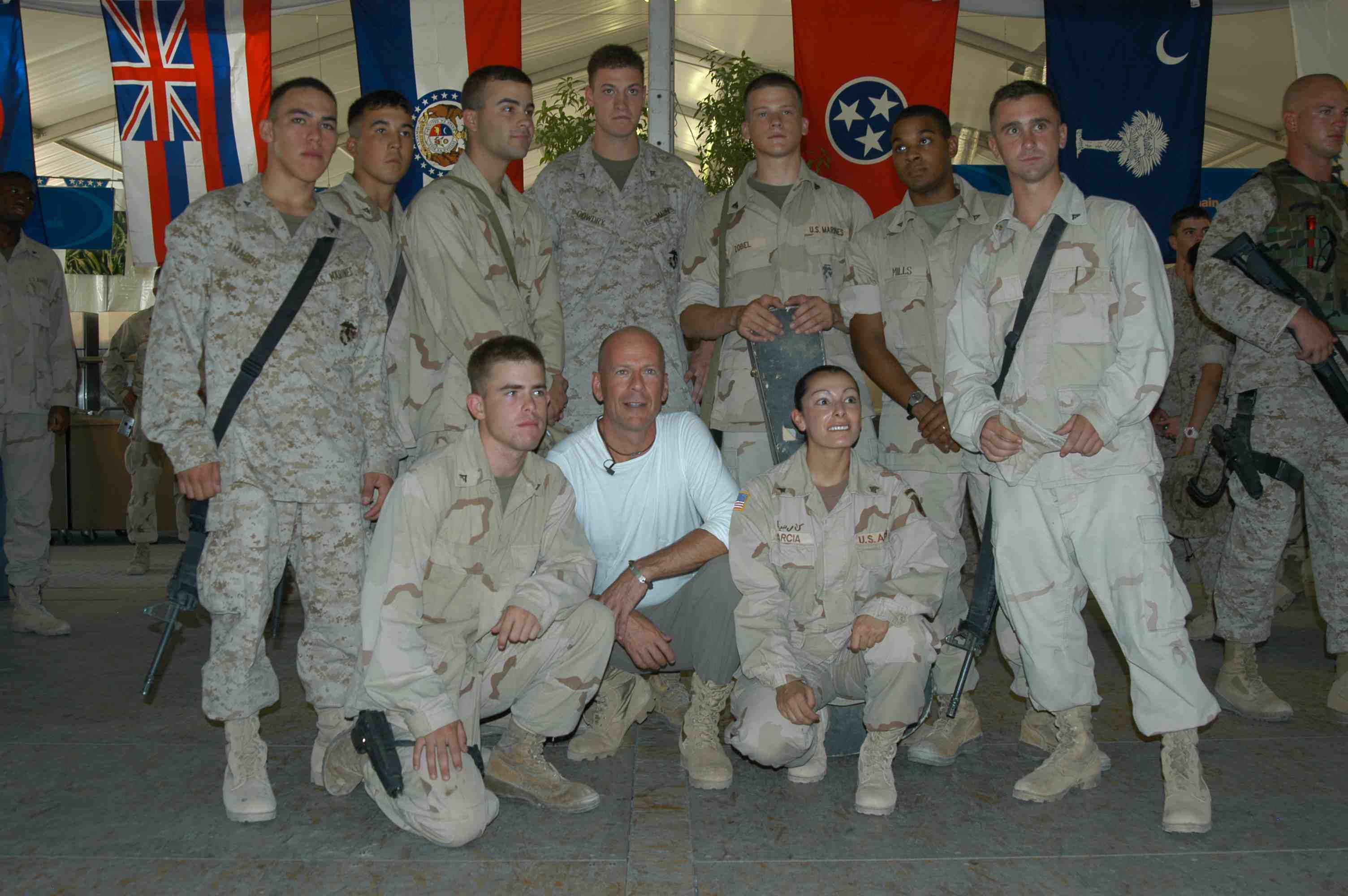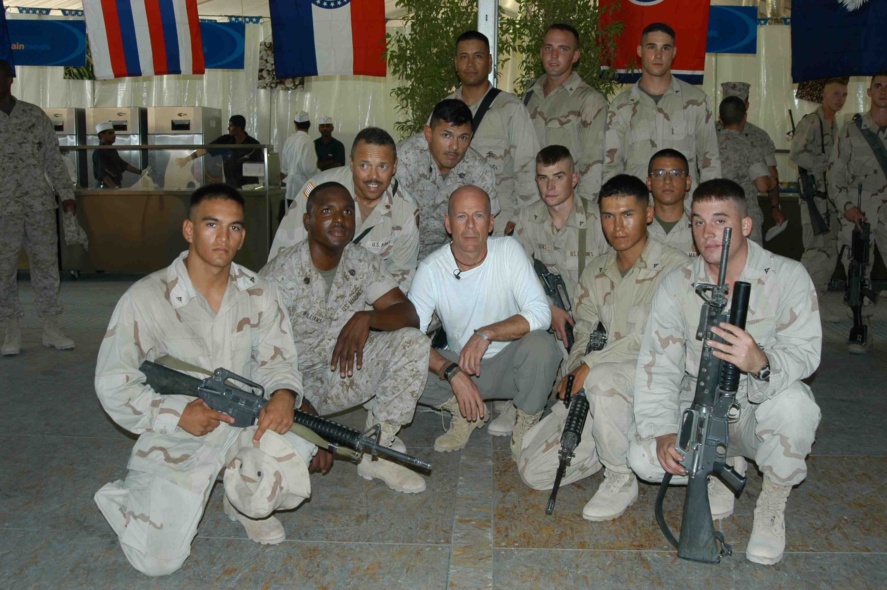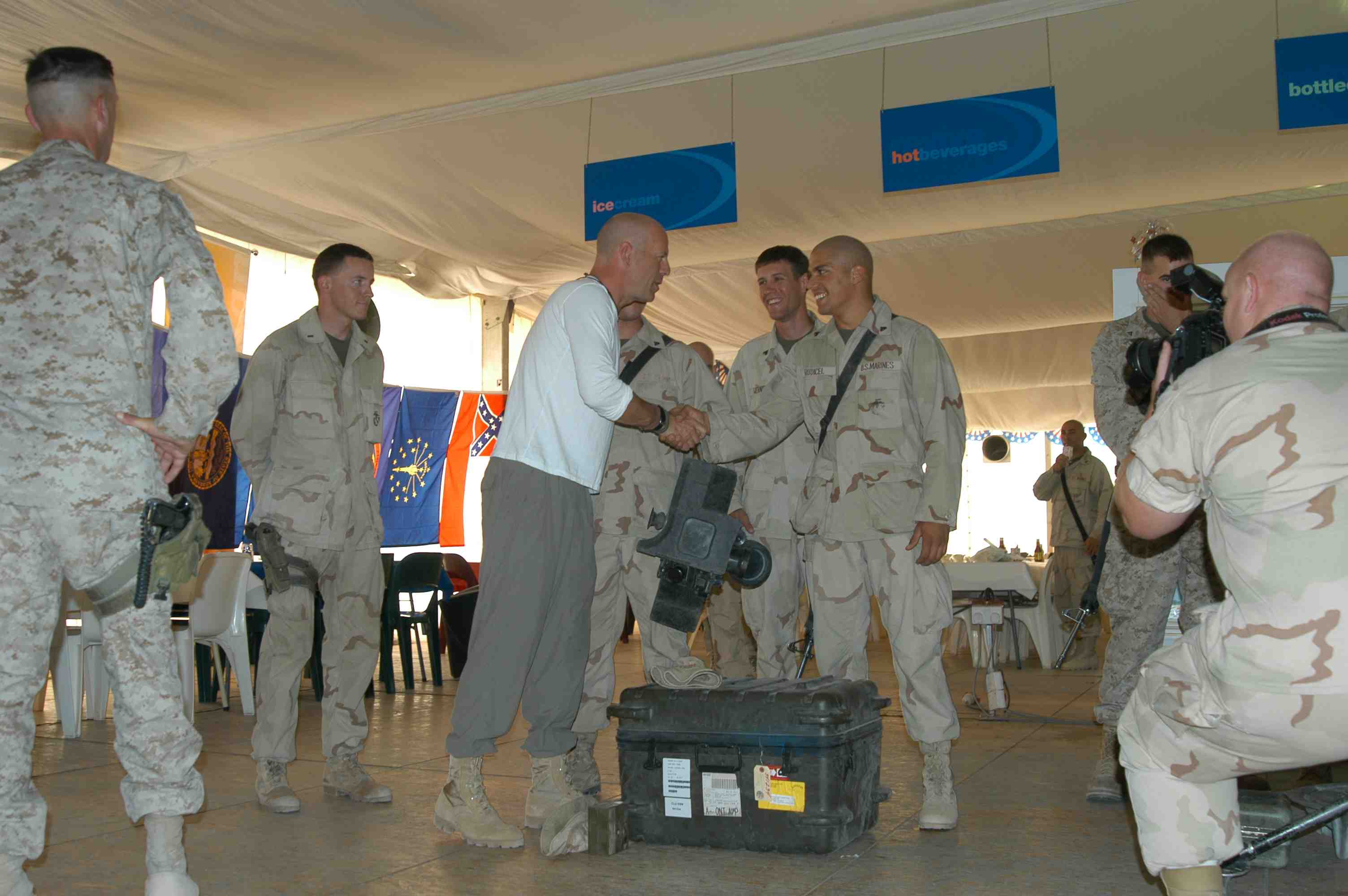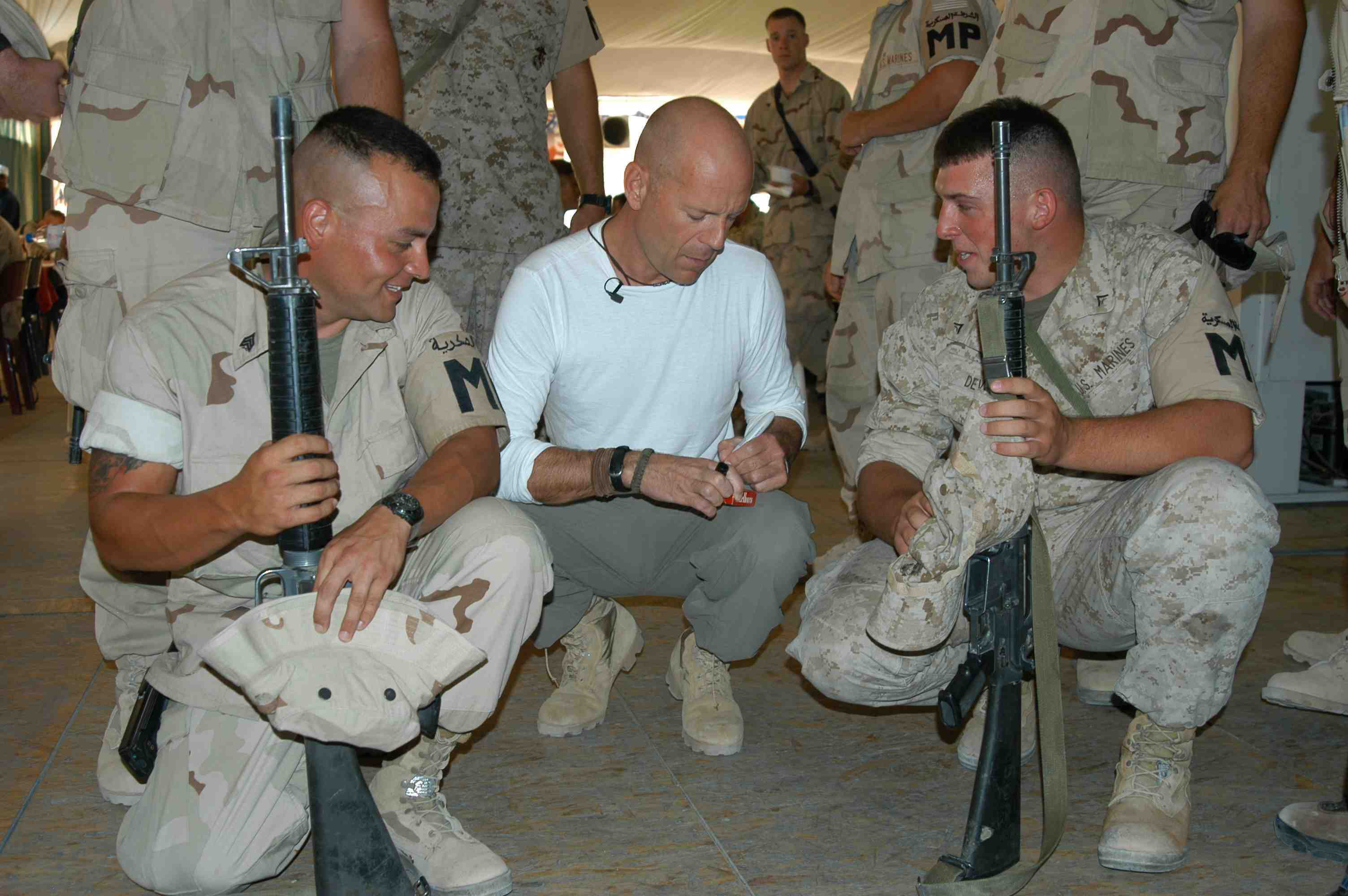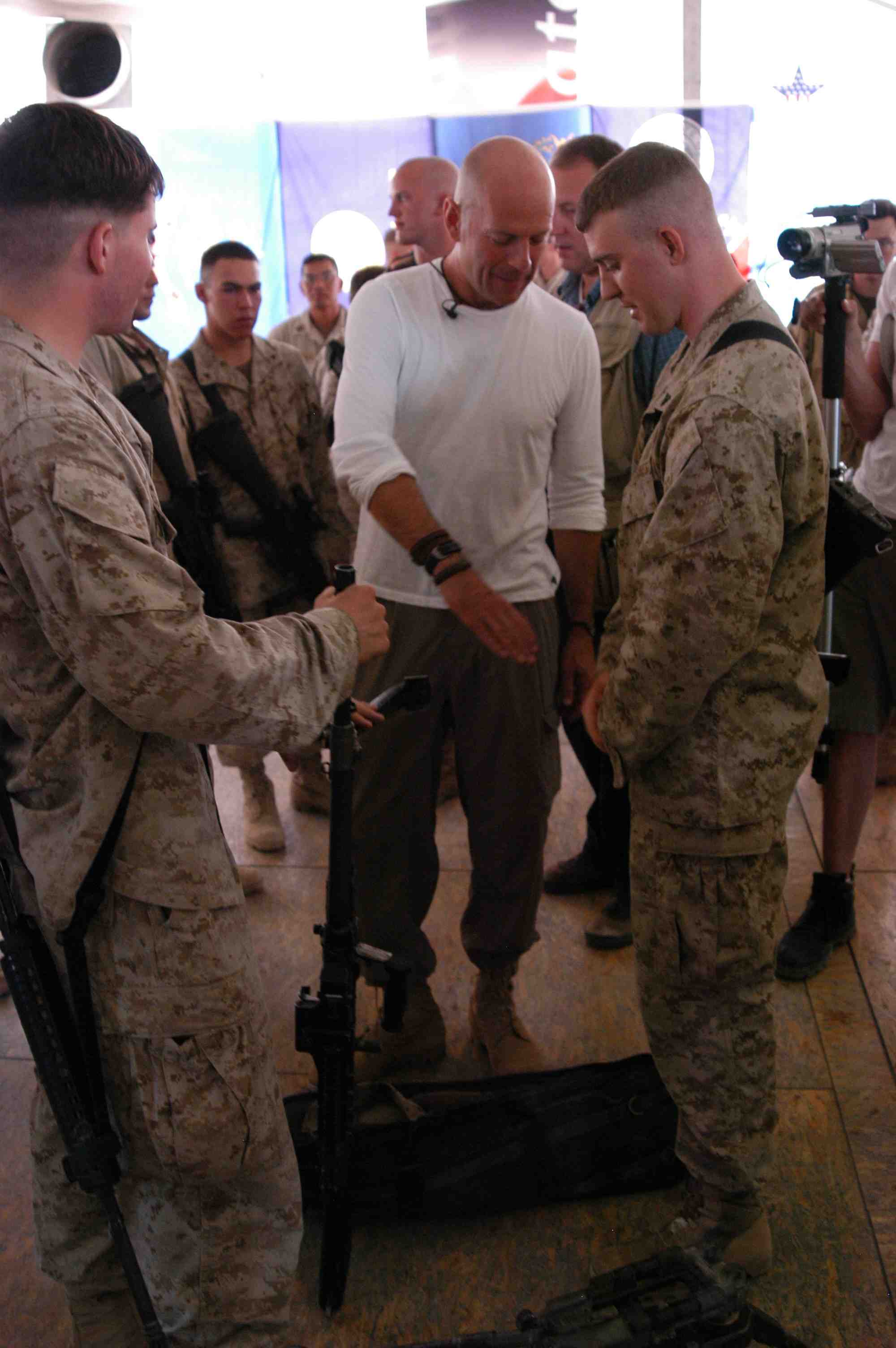 Pictures of Bruce Willis with the troops during a USO tour in Abu Dhabi, Iraq and Kuwait, 2003 (posted previously
