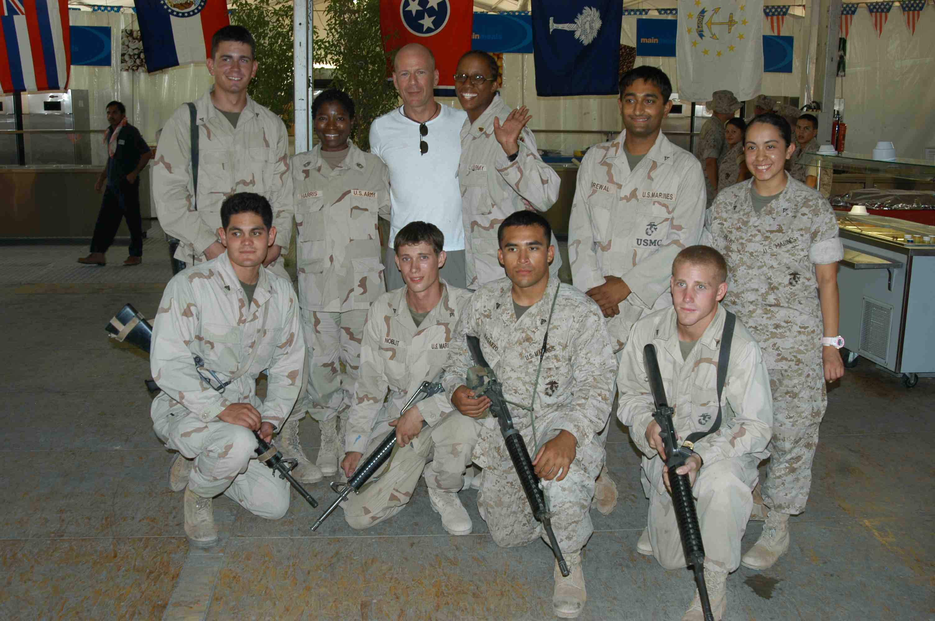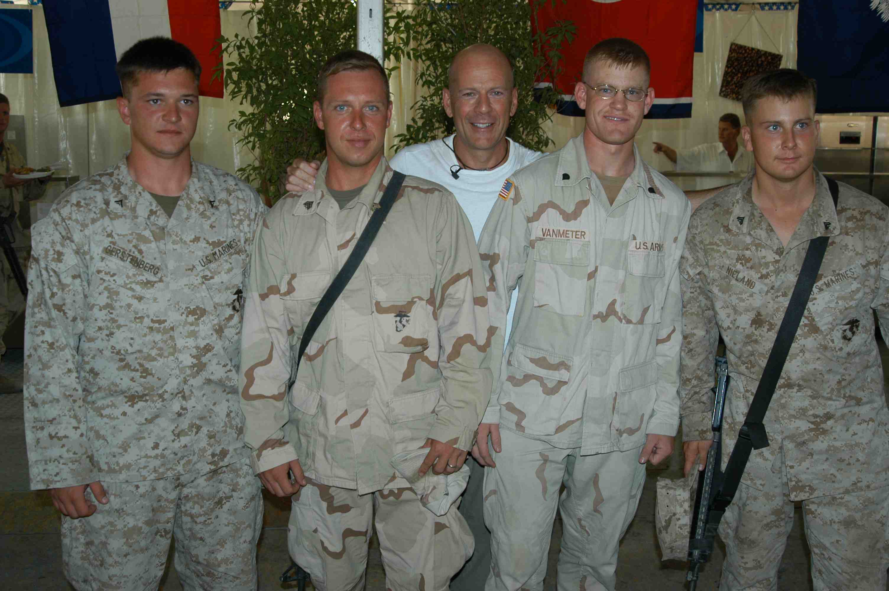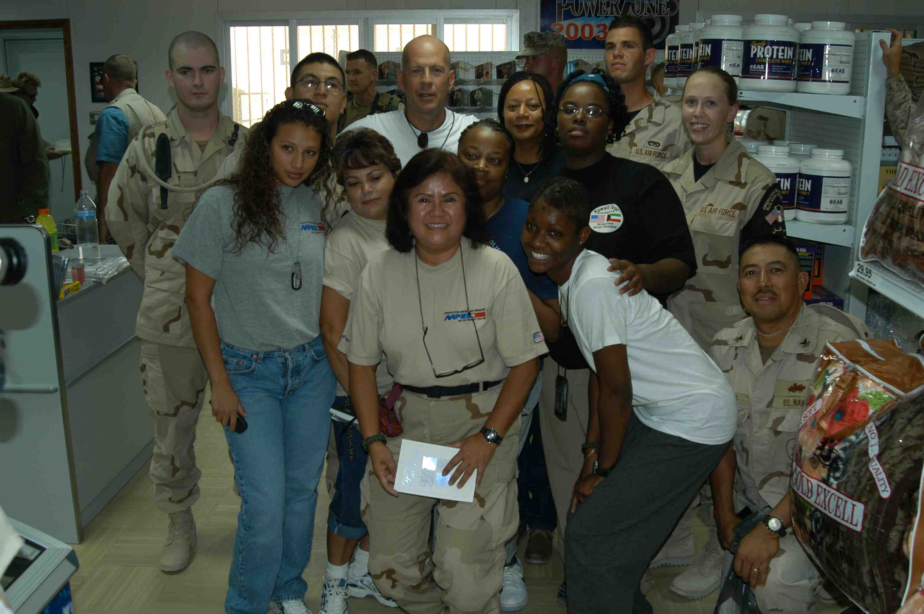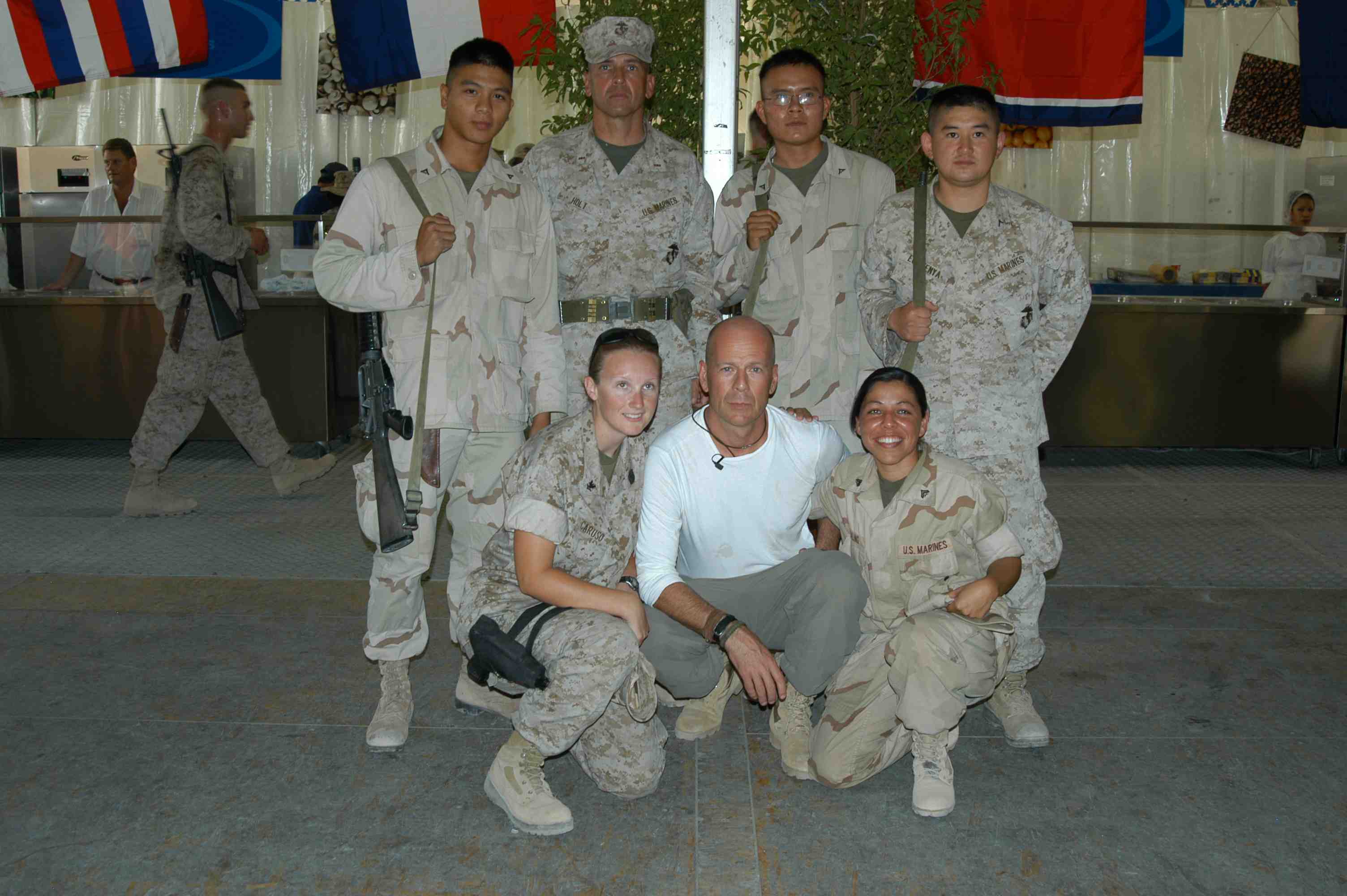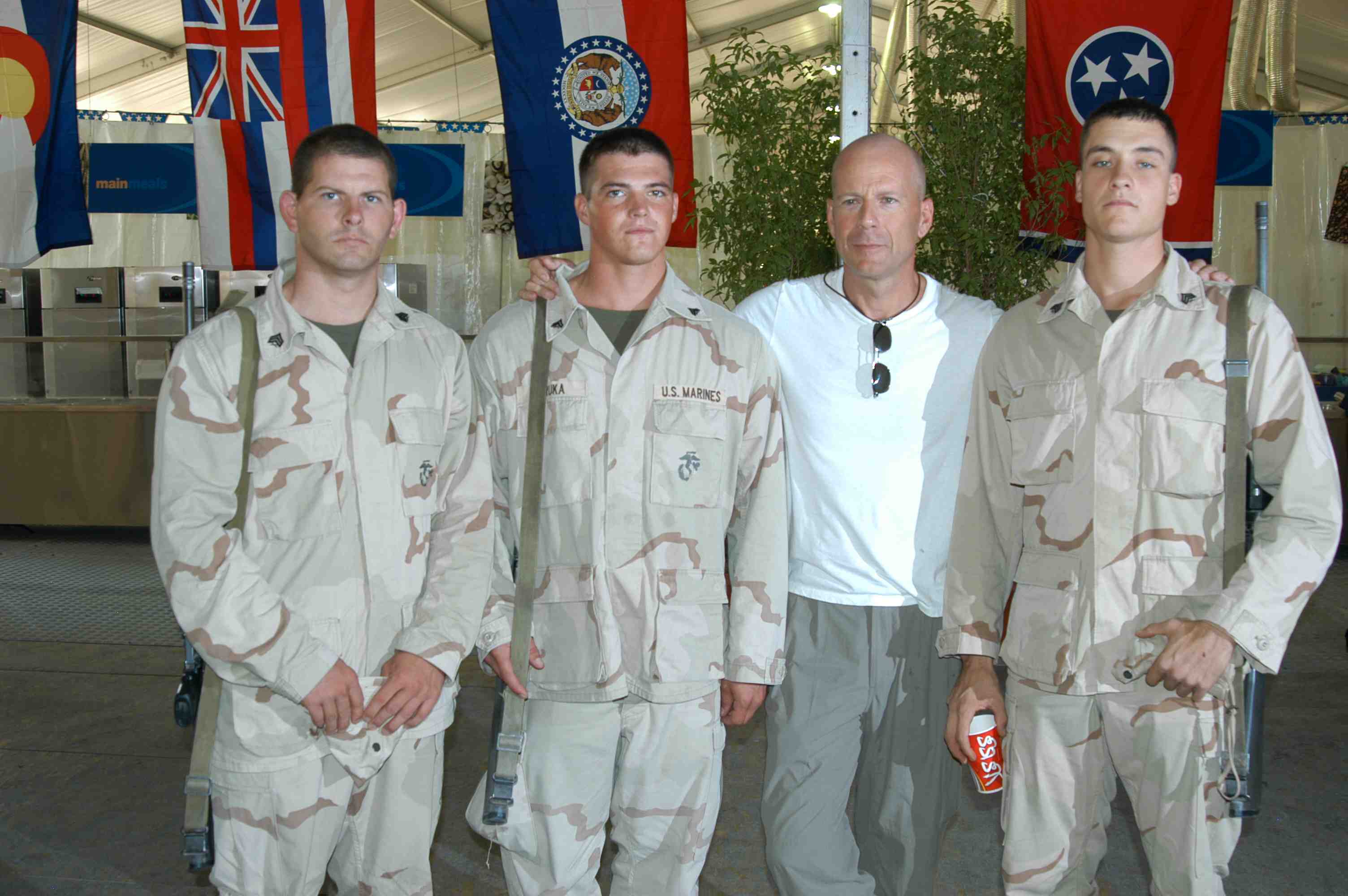 Pictures of Bruce Willis with the troops during a USO tour in Abu Dhabi, Iraq and Kuwait, 2003 (posted previously