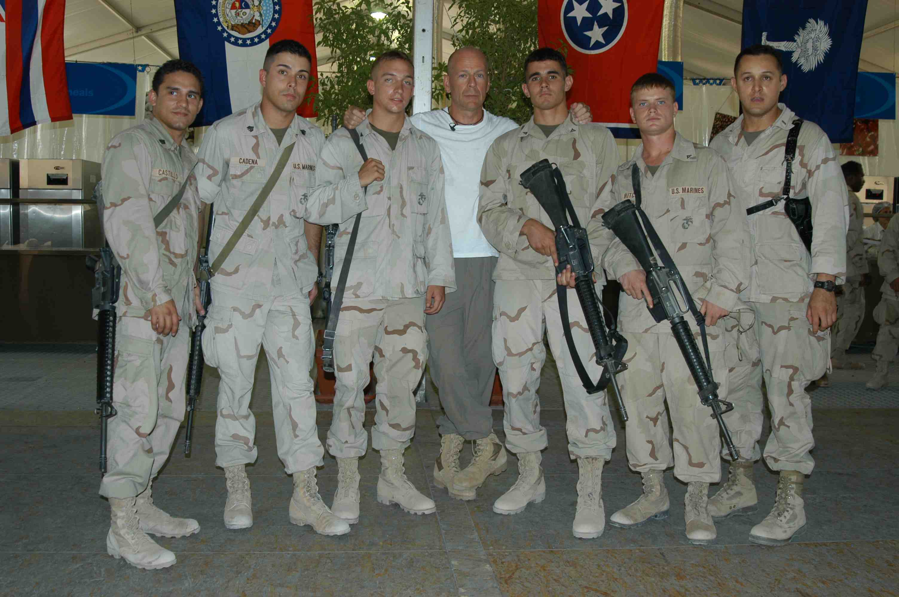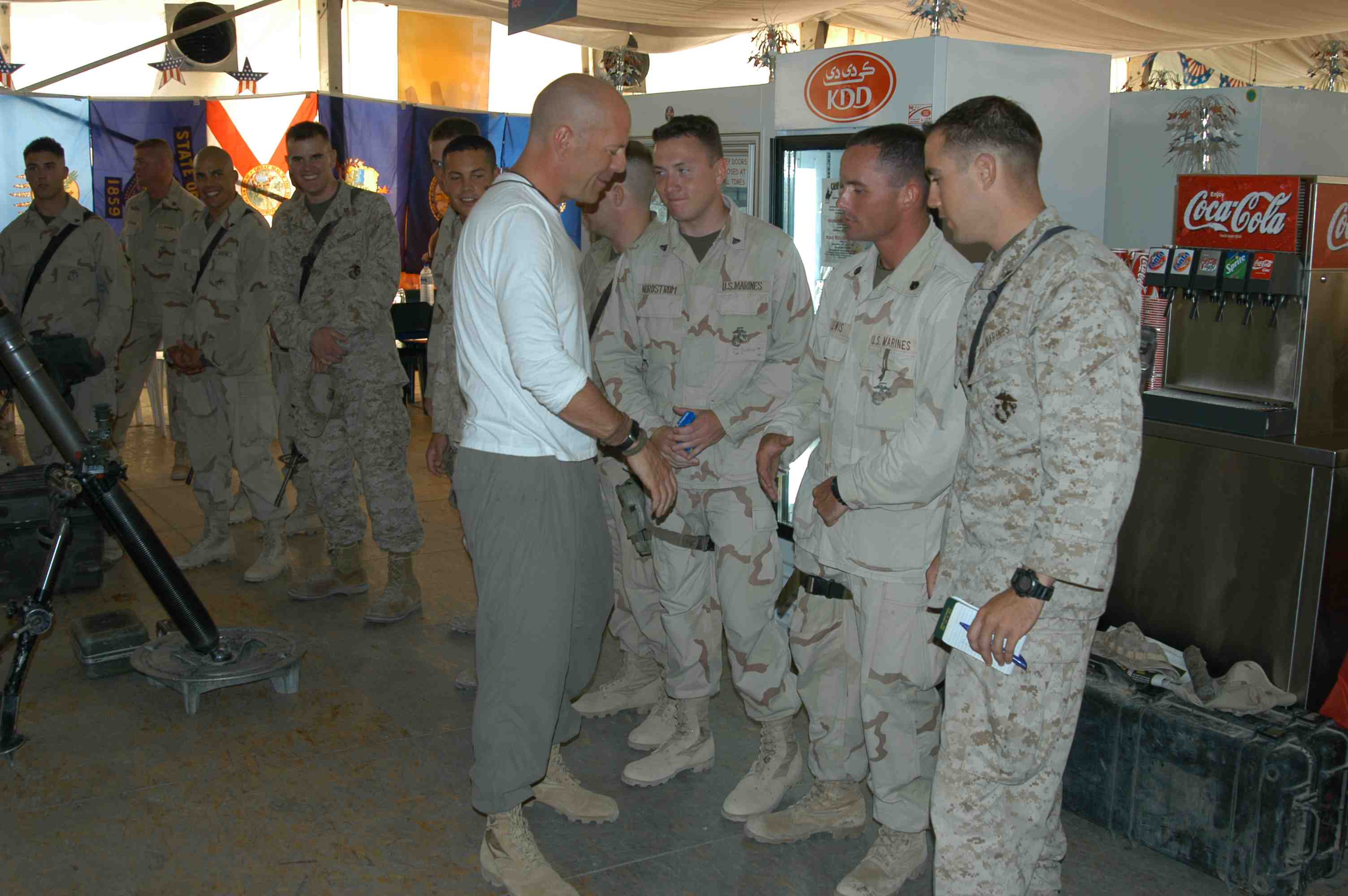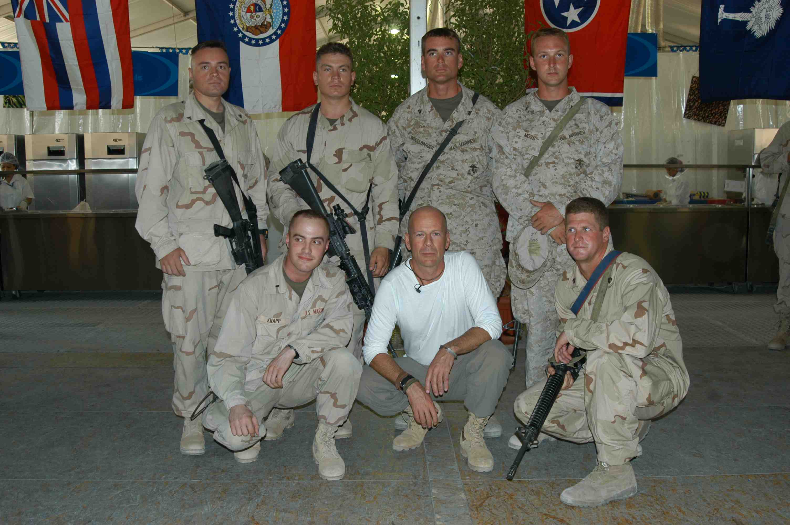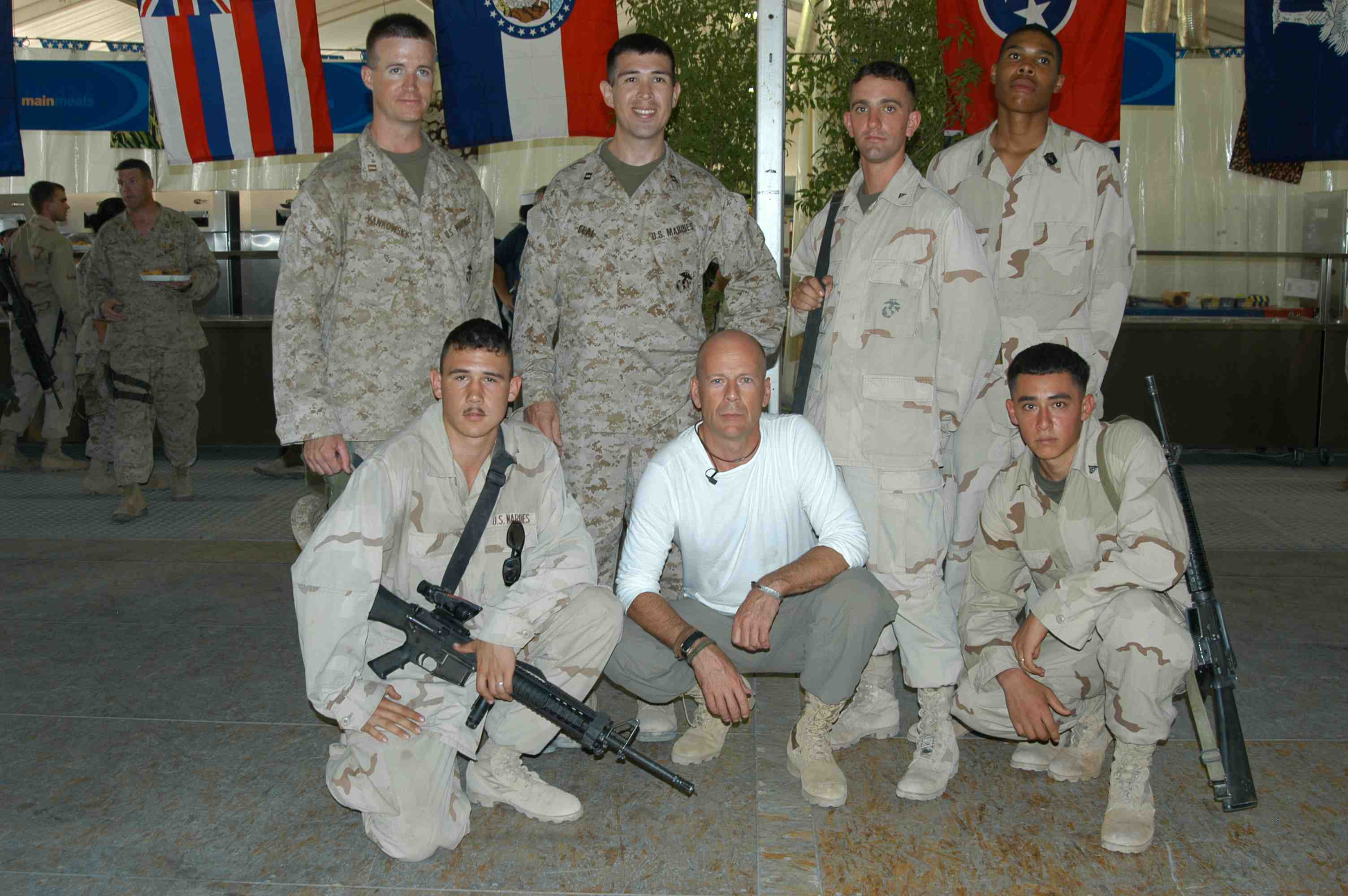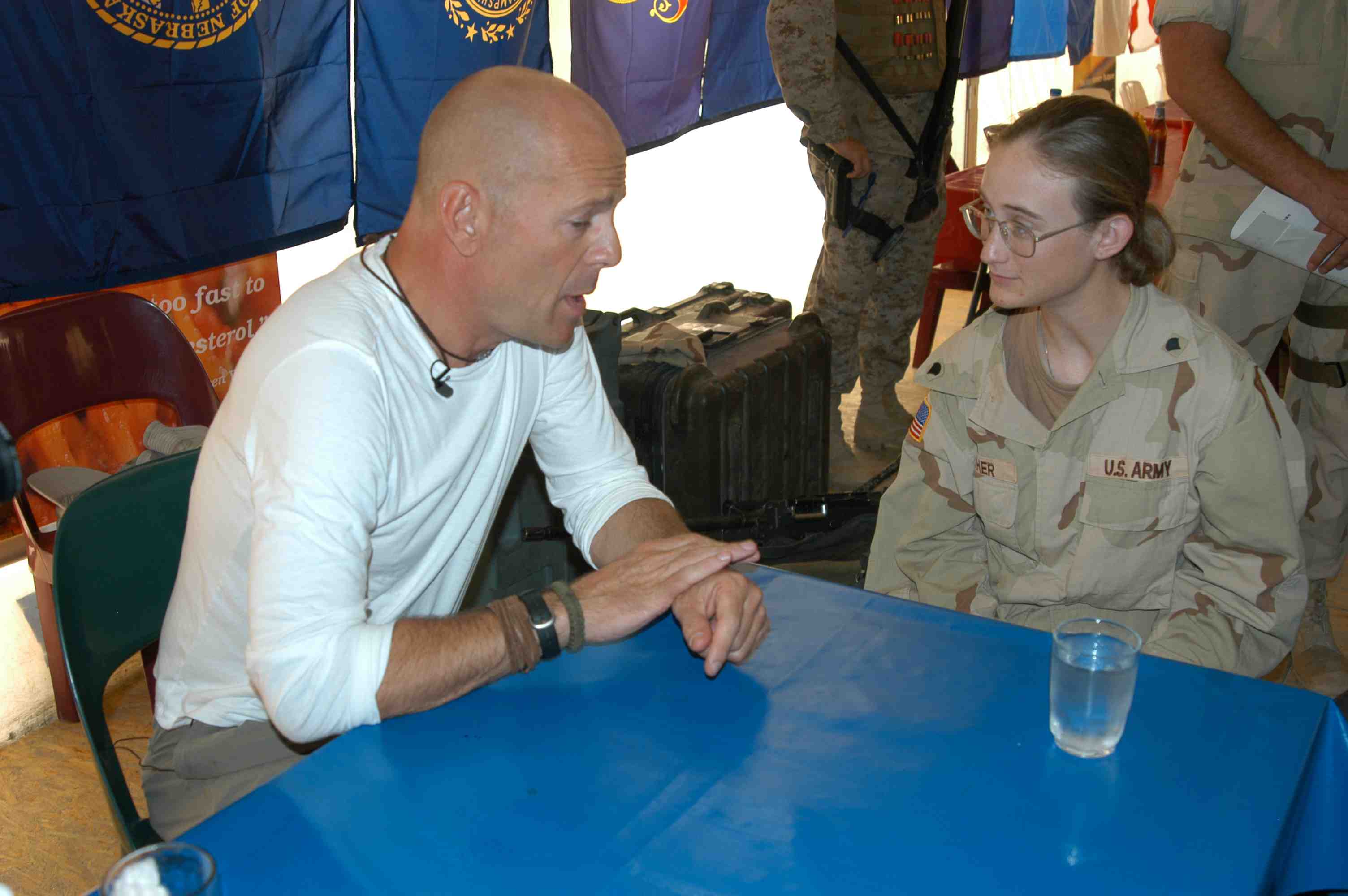 Pictures of Bruce Willis with the troops during a USO tour in Abu Dhabi, Iraq and Kuwait, 2003 (posted previously