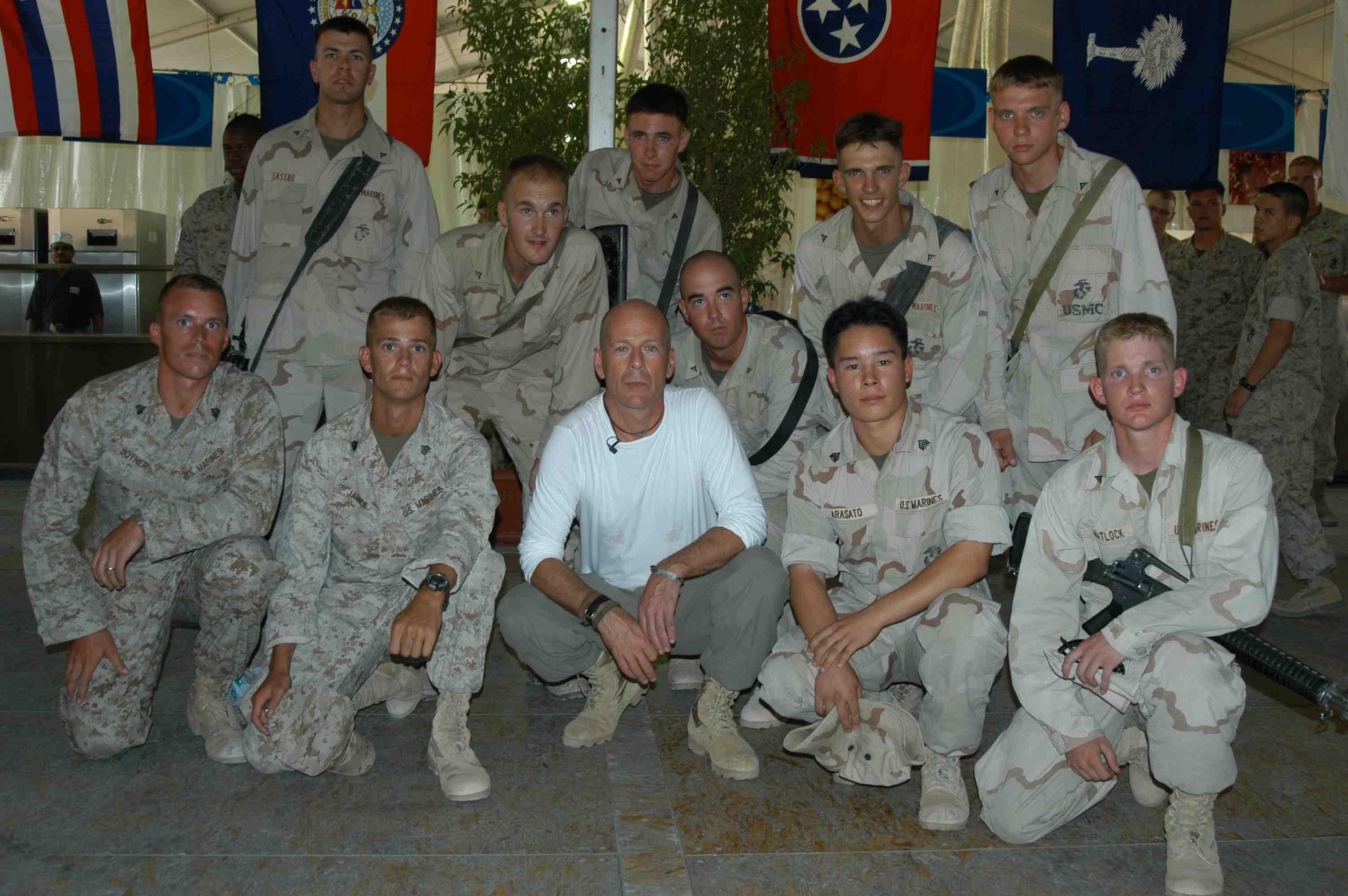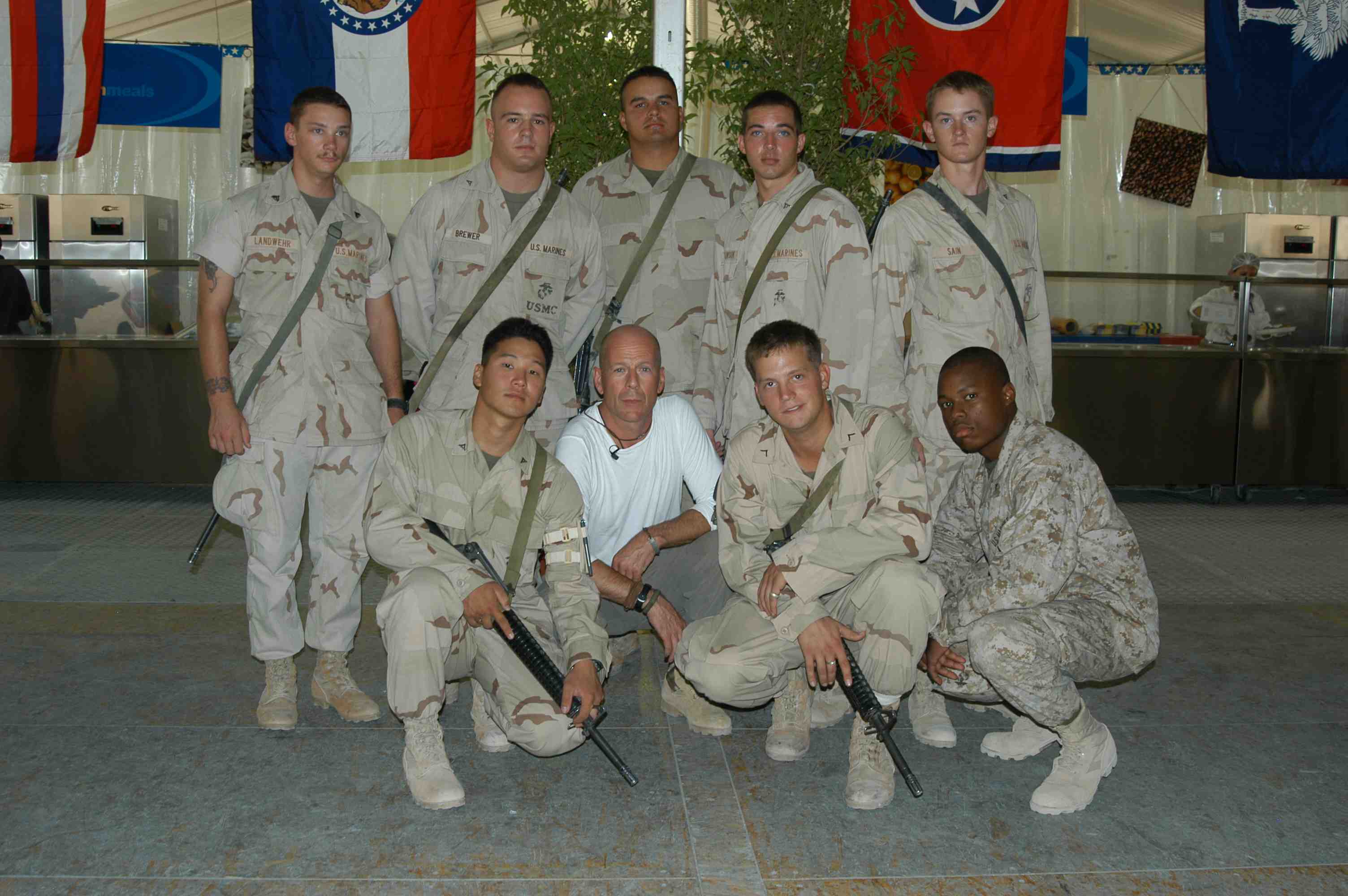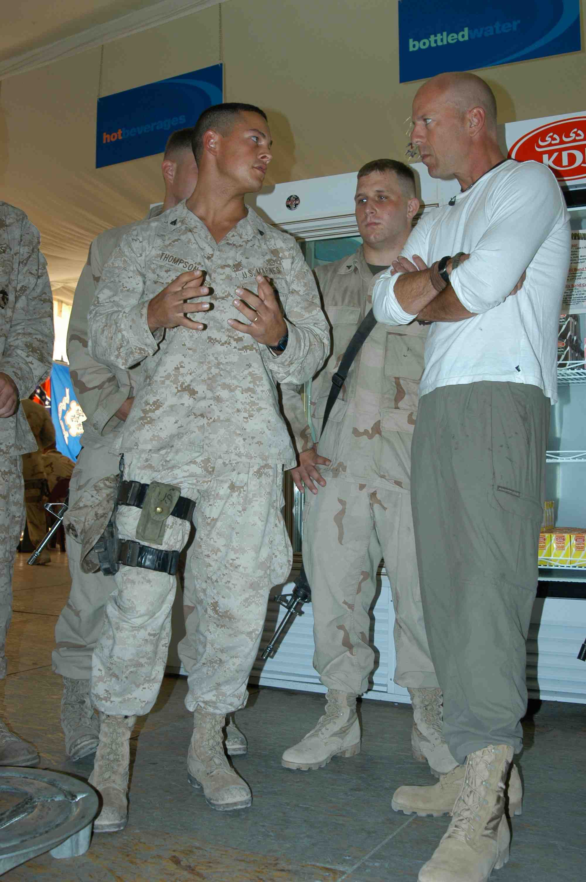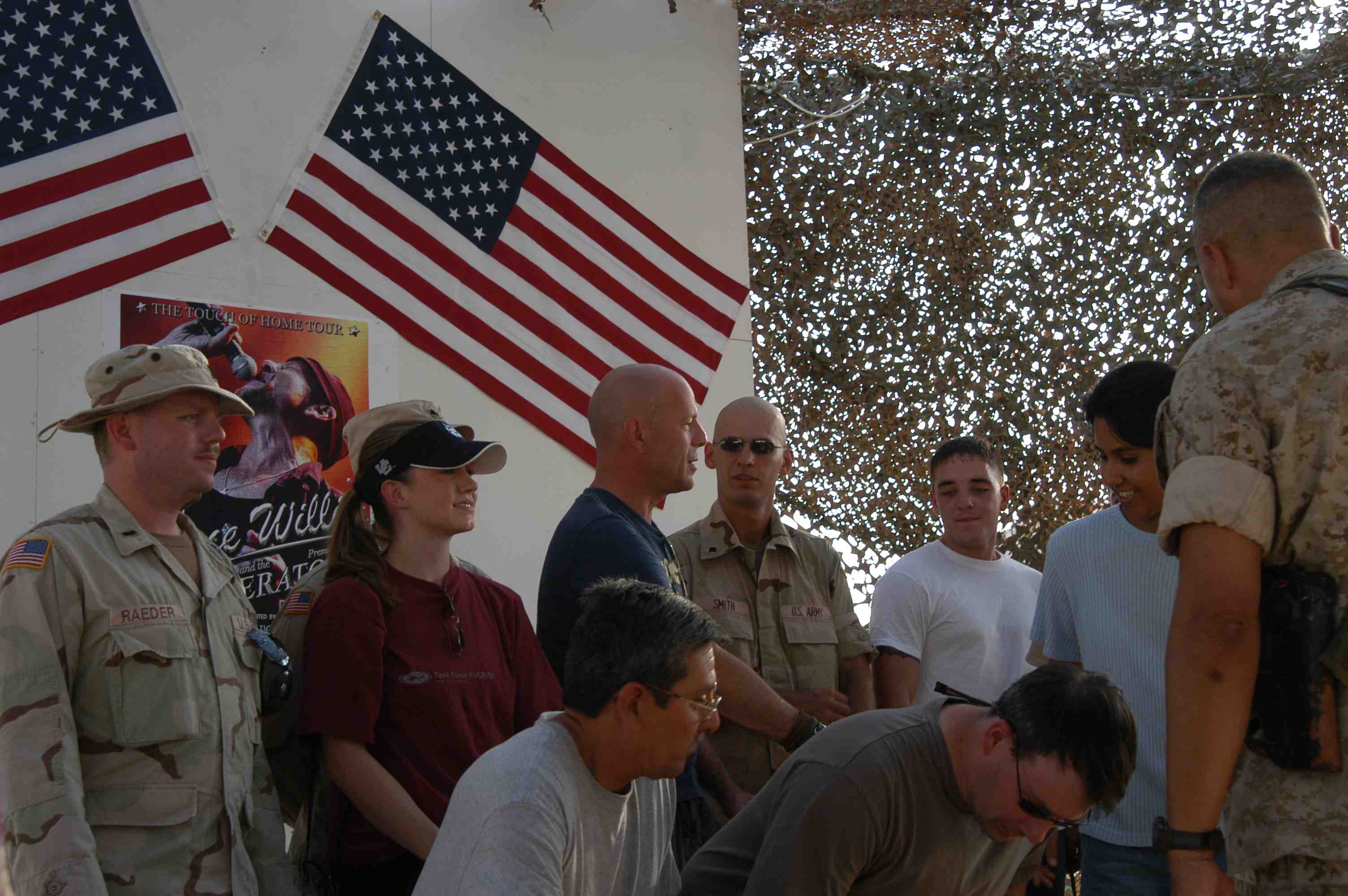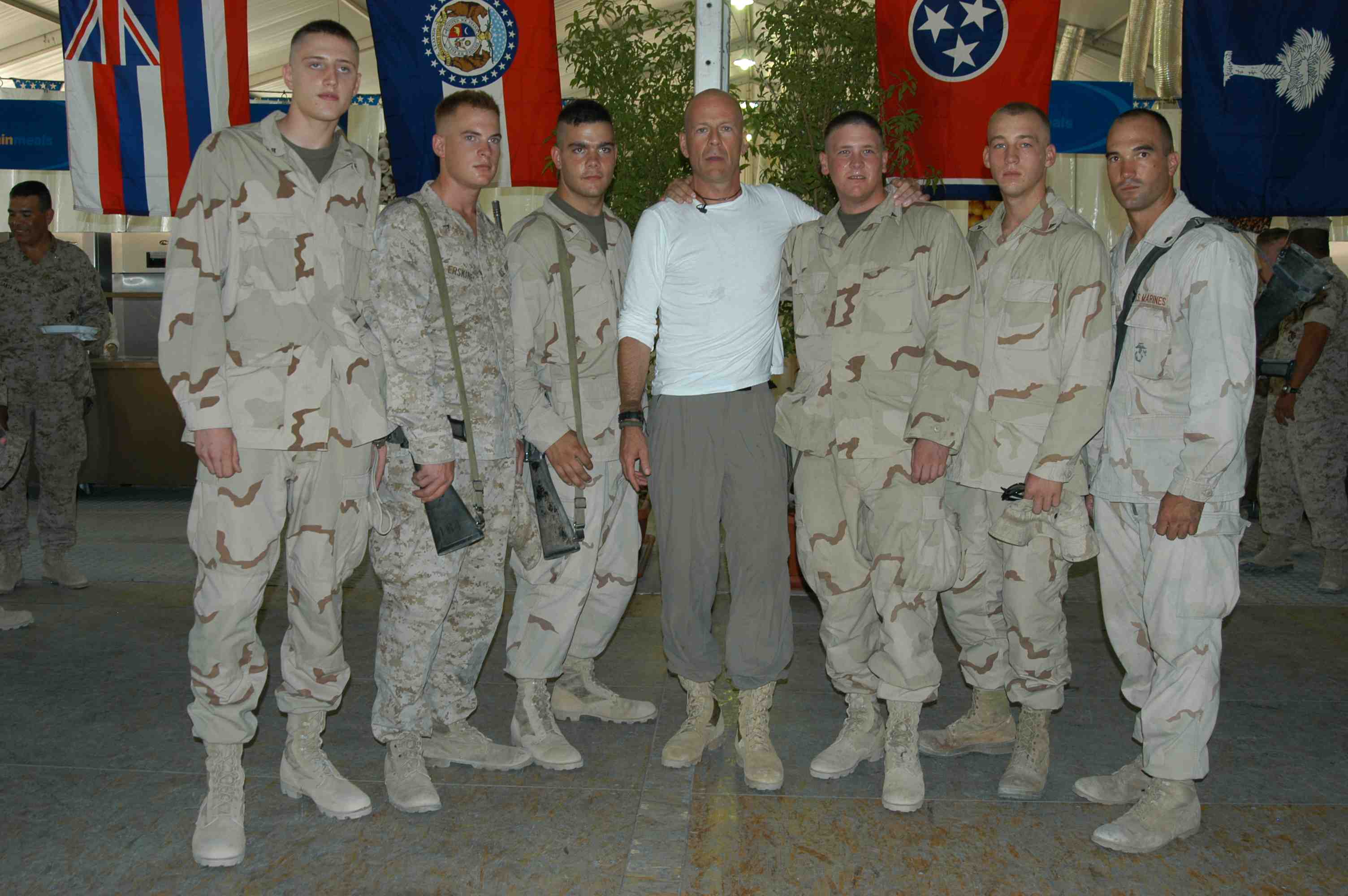 Pictures of Bruce Willis with the troops during a USO tour in Abu Dhabi, Iraq and Kuwait, 2003 (posted previously