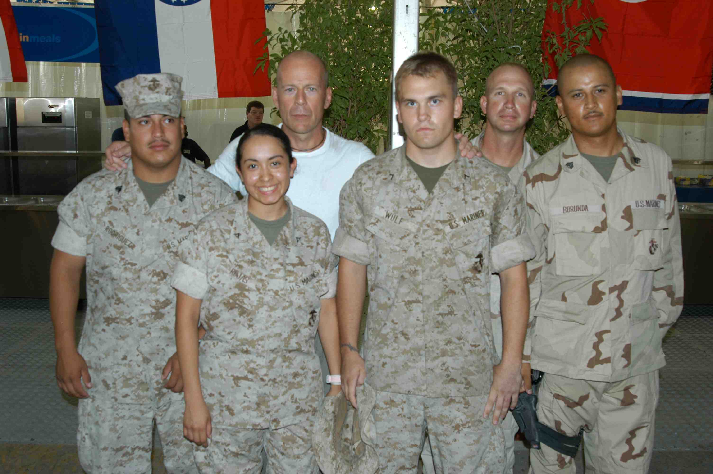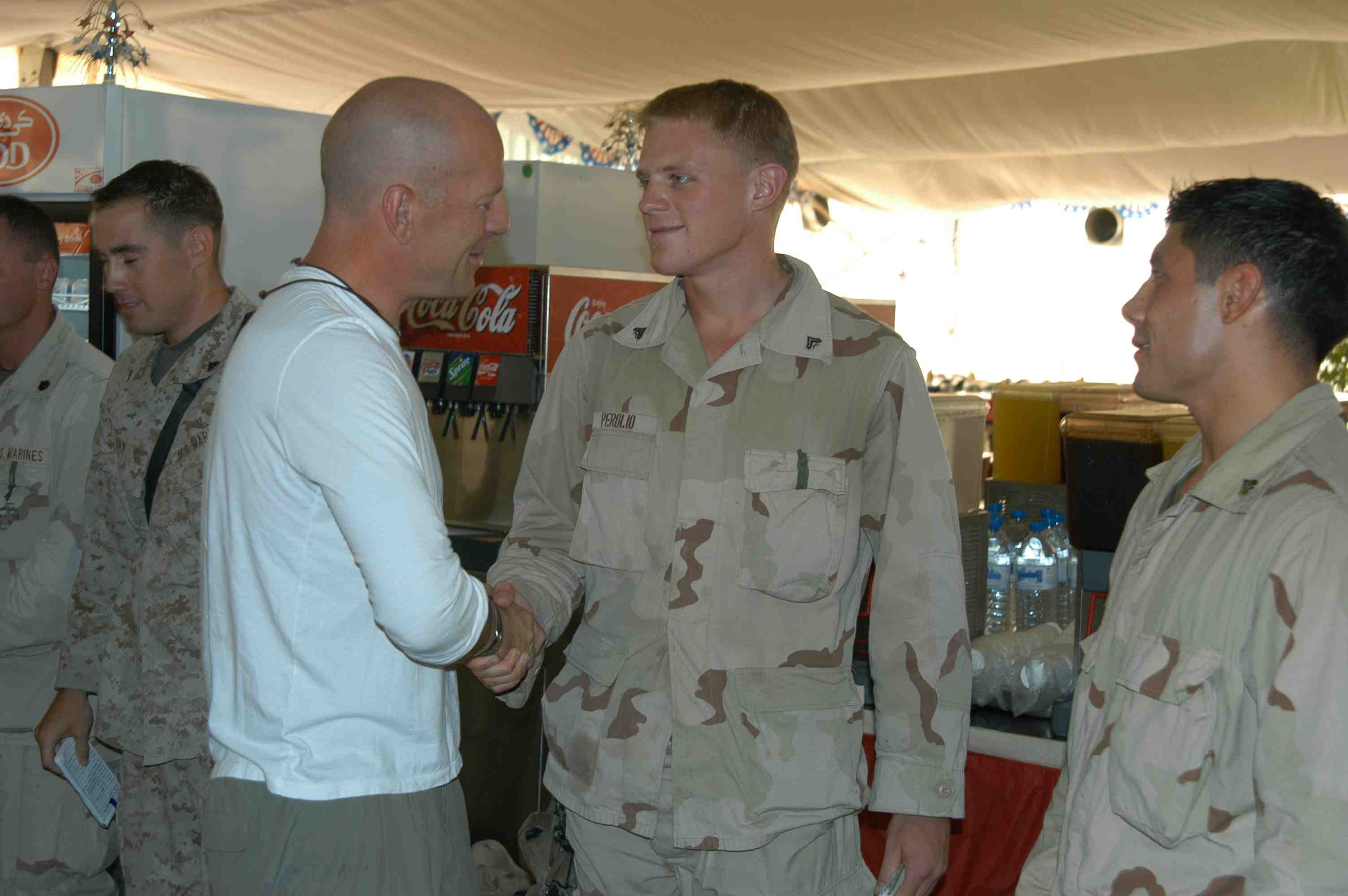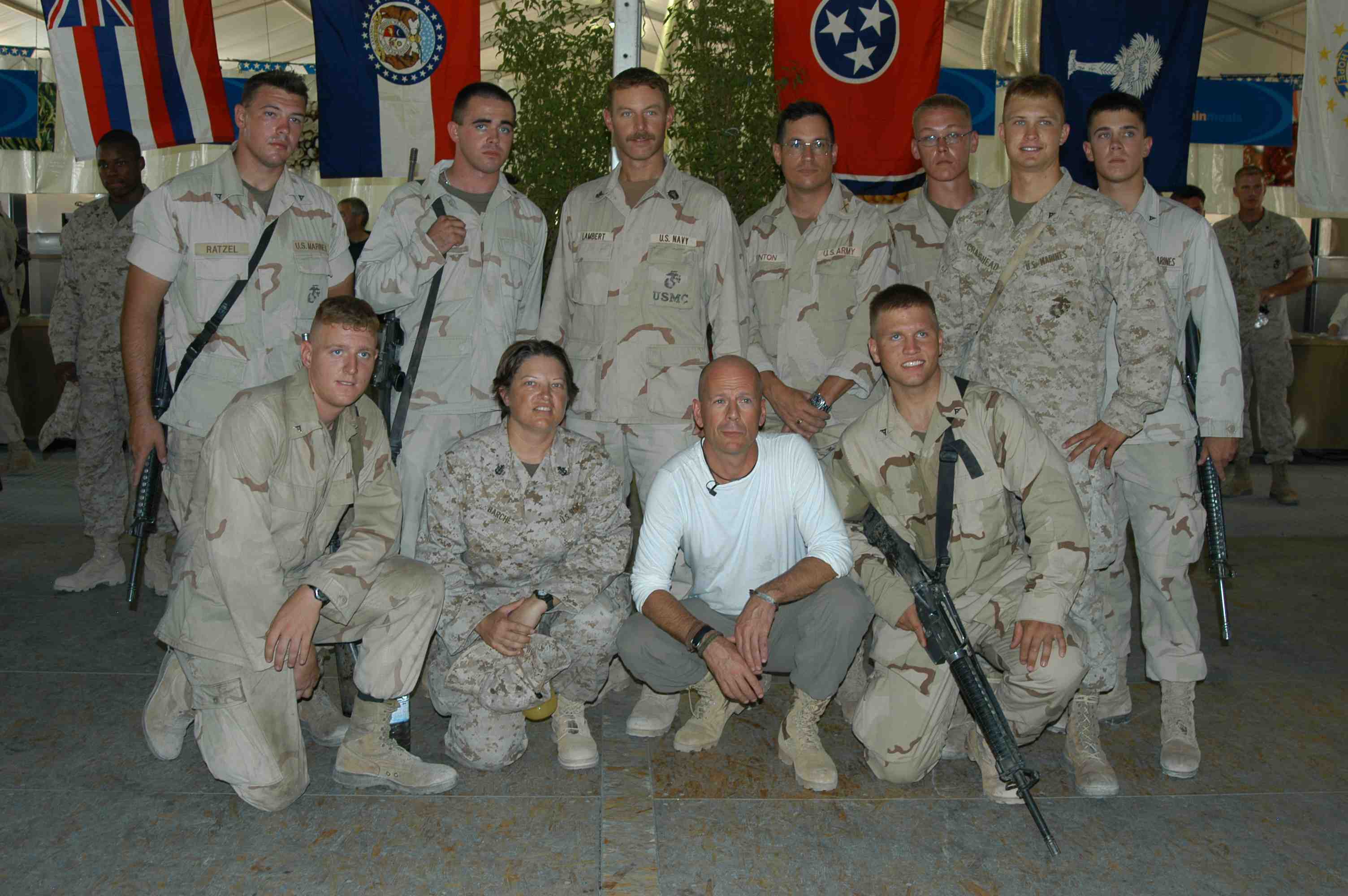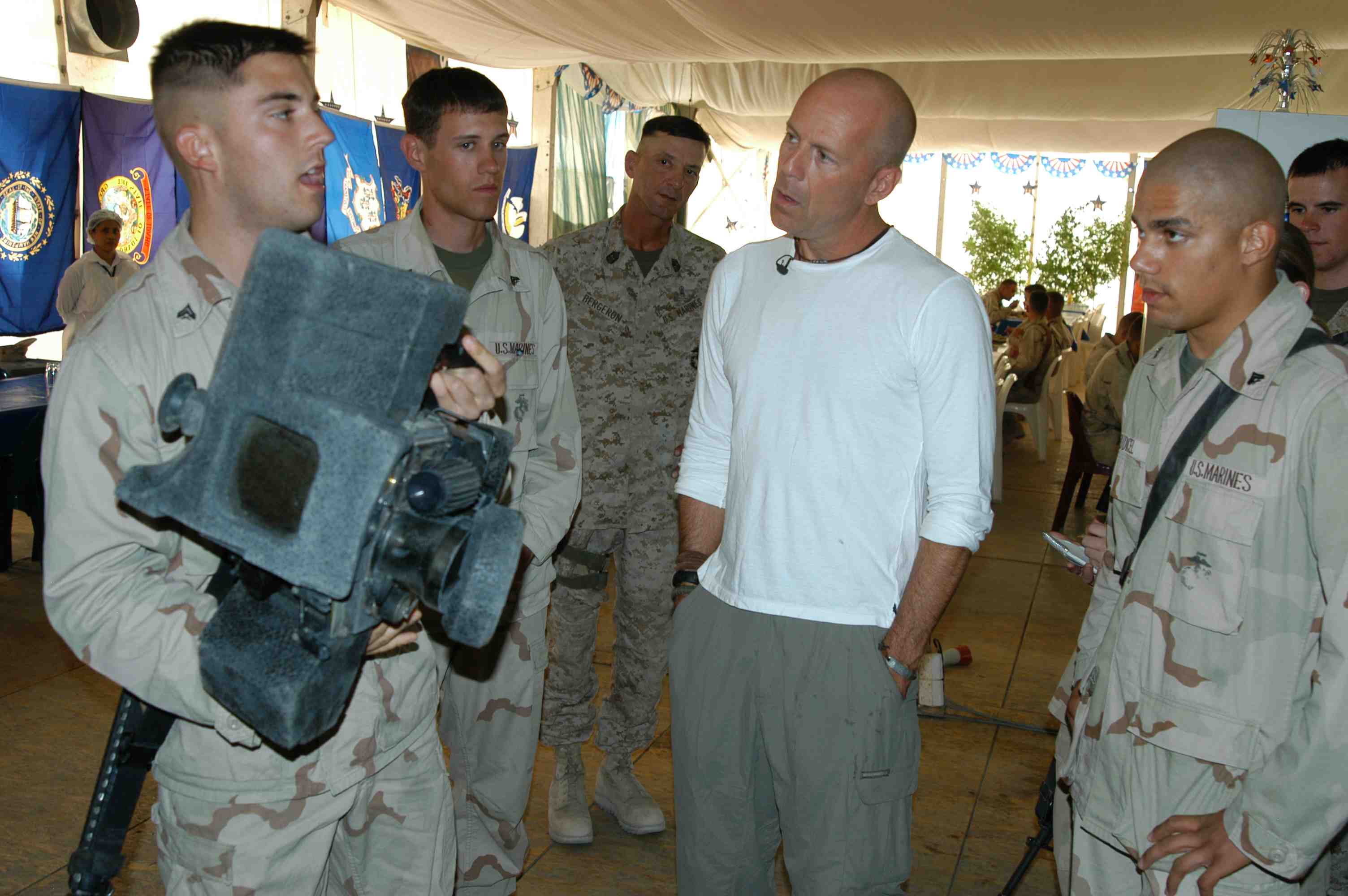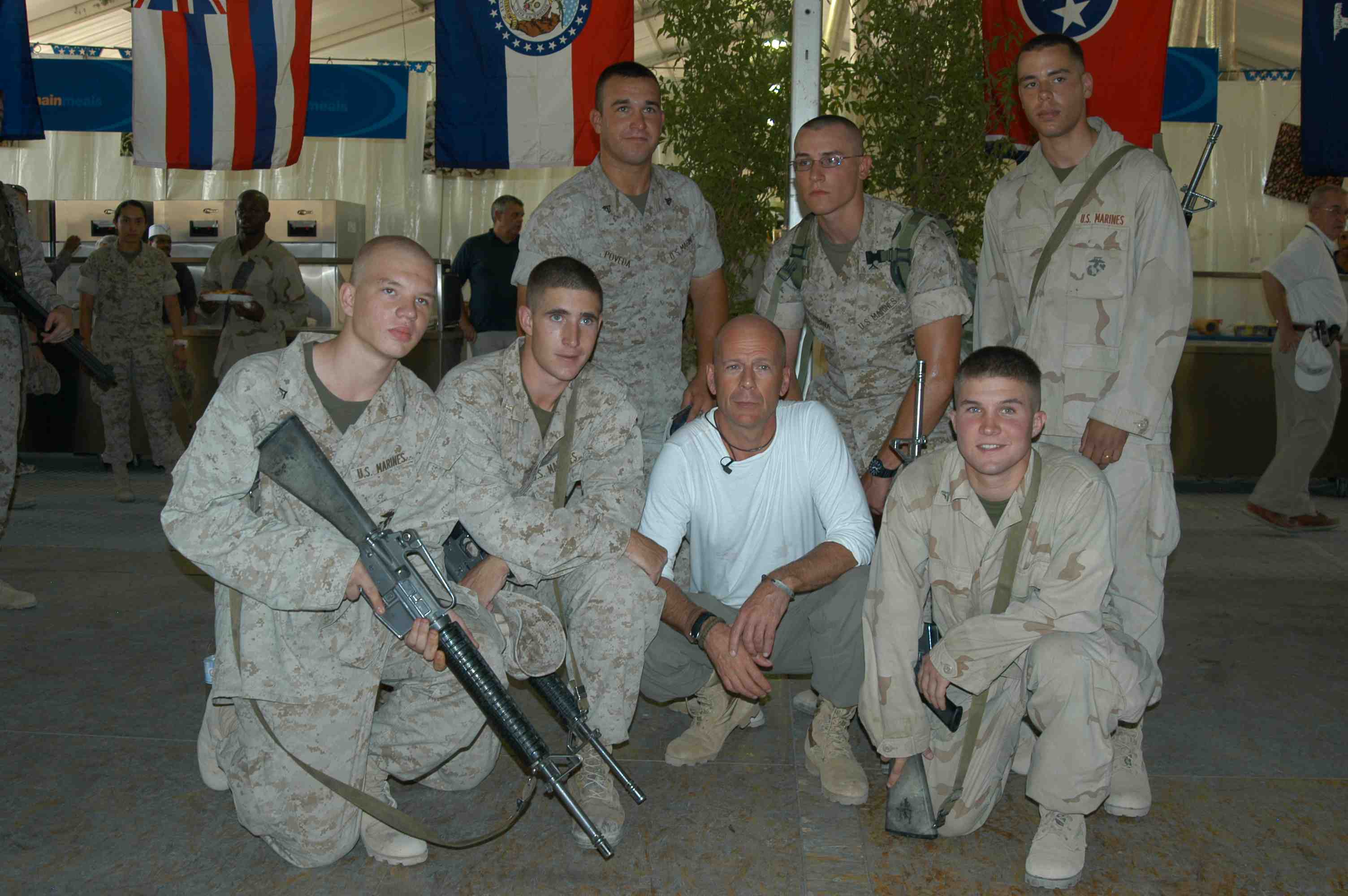 Pictures of Bruce Willis with the troops during a USO tour in Abu Dhabi, Iraq and Kuwait, 2003 (posted previously