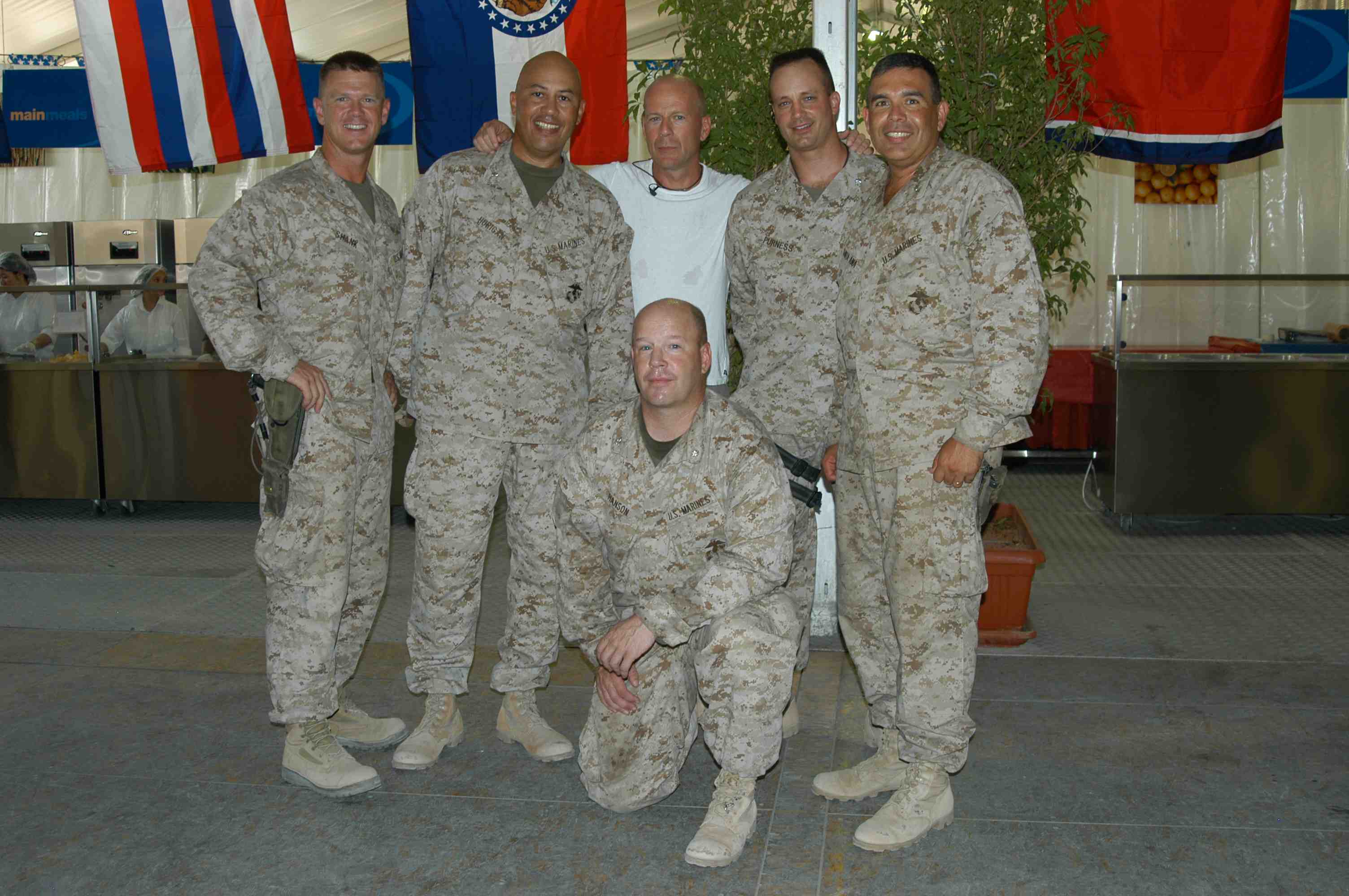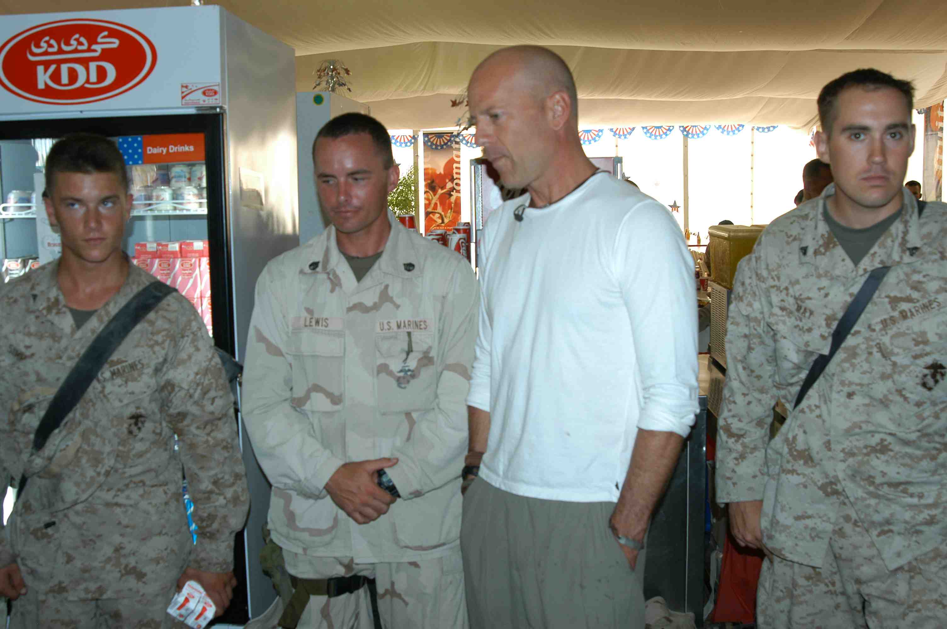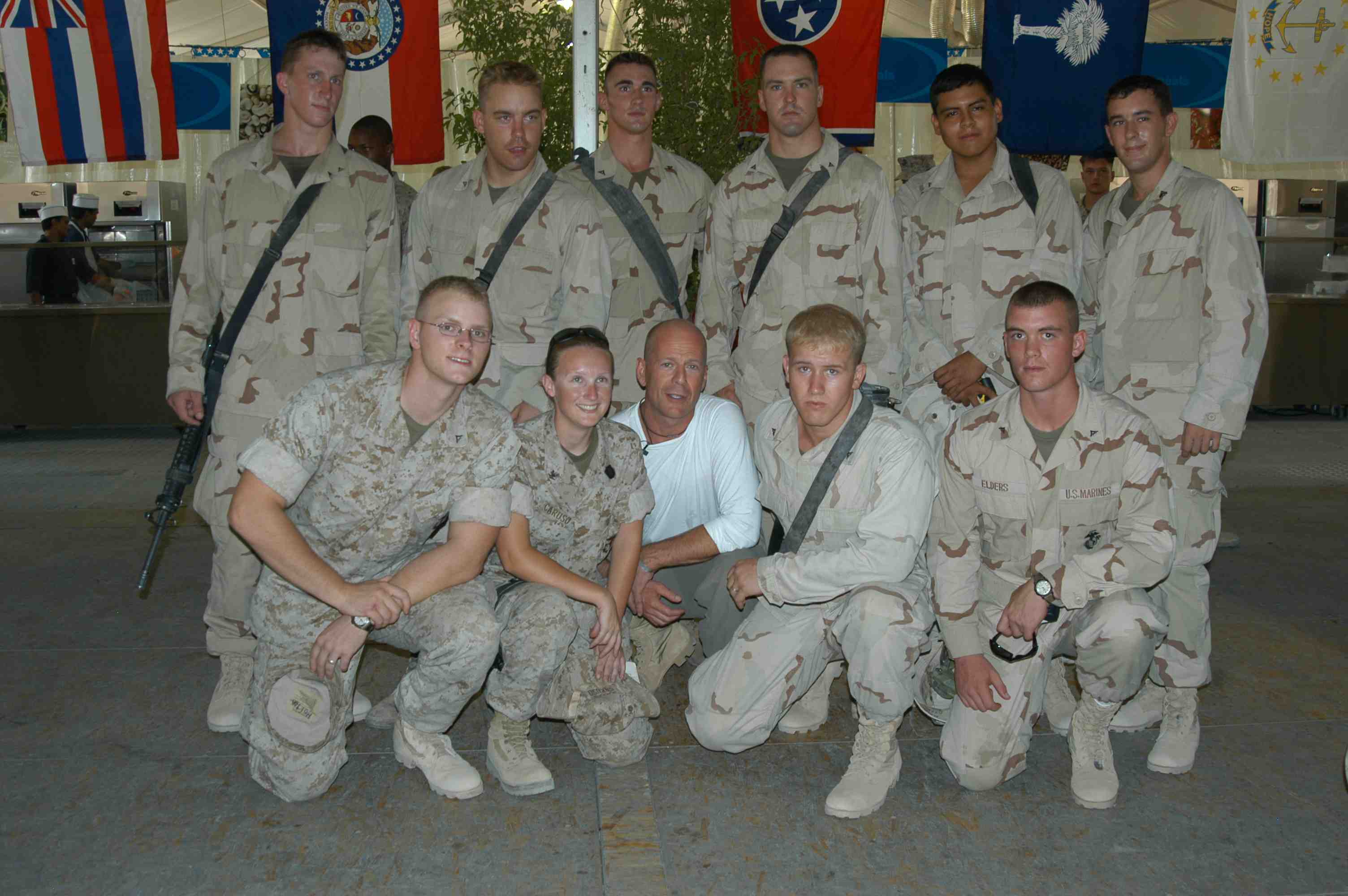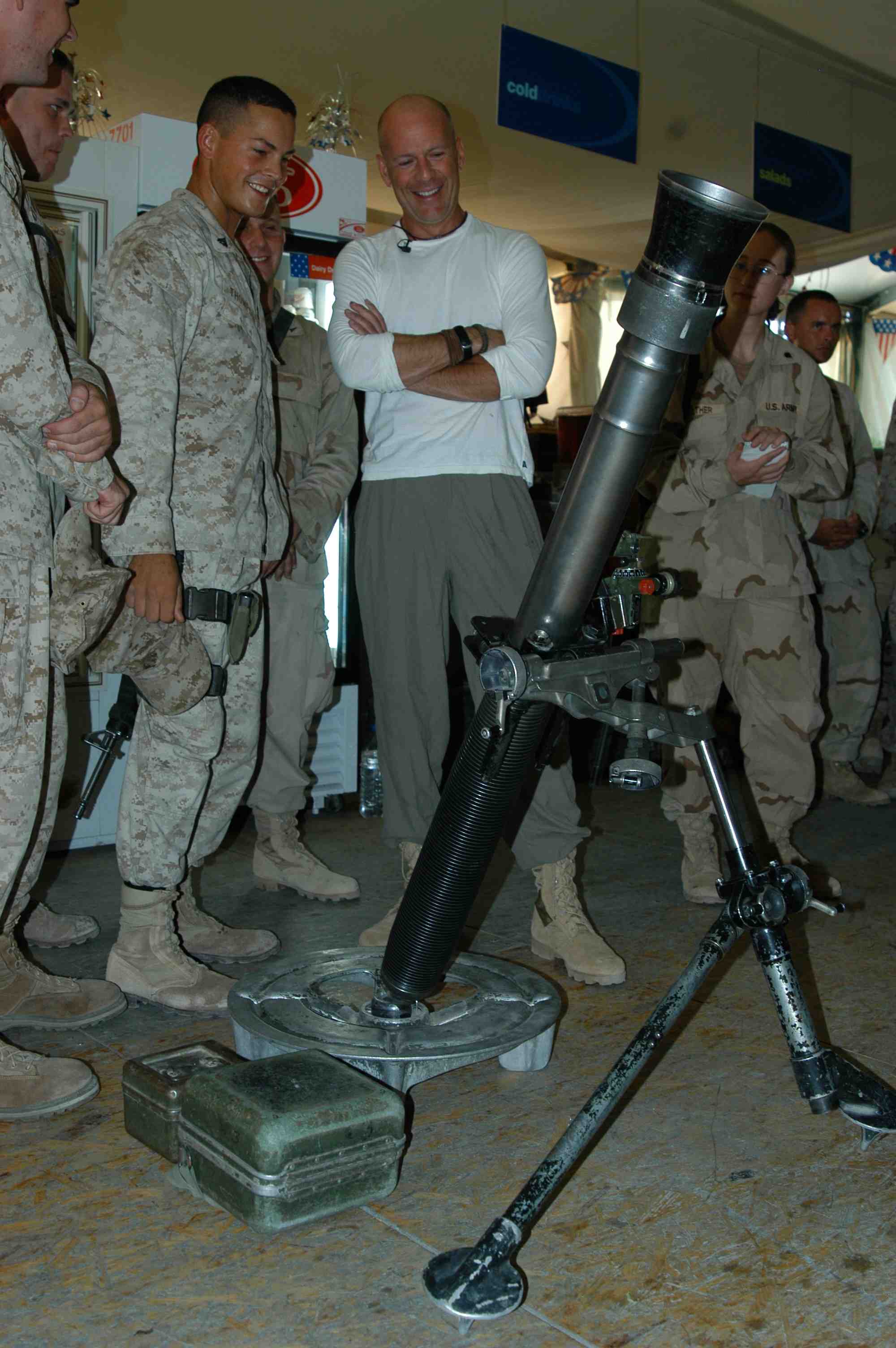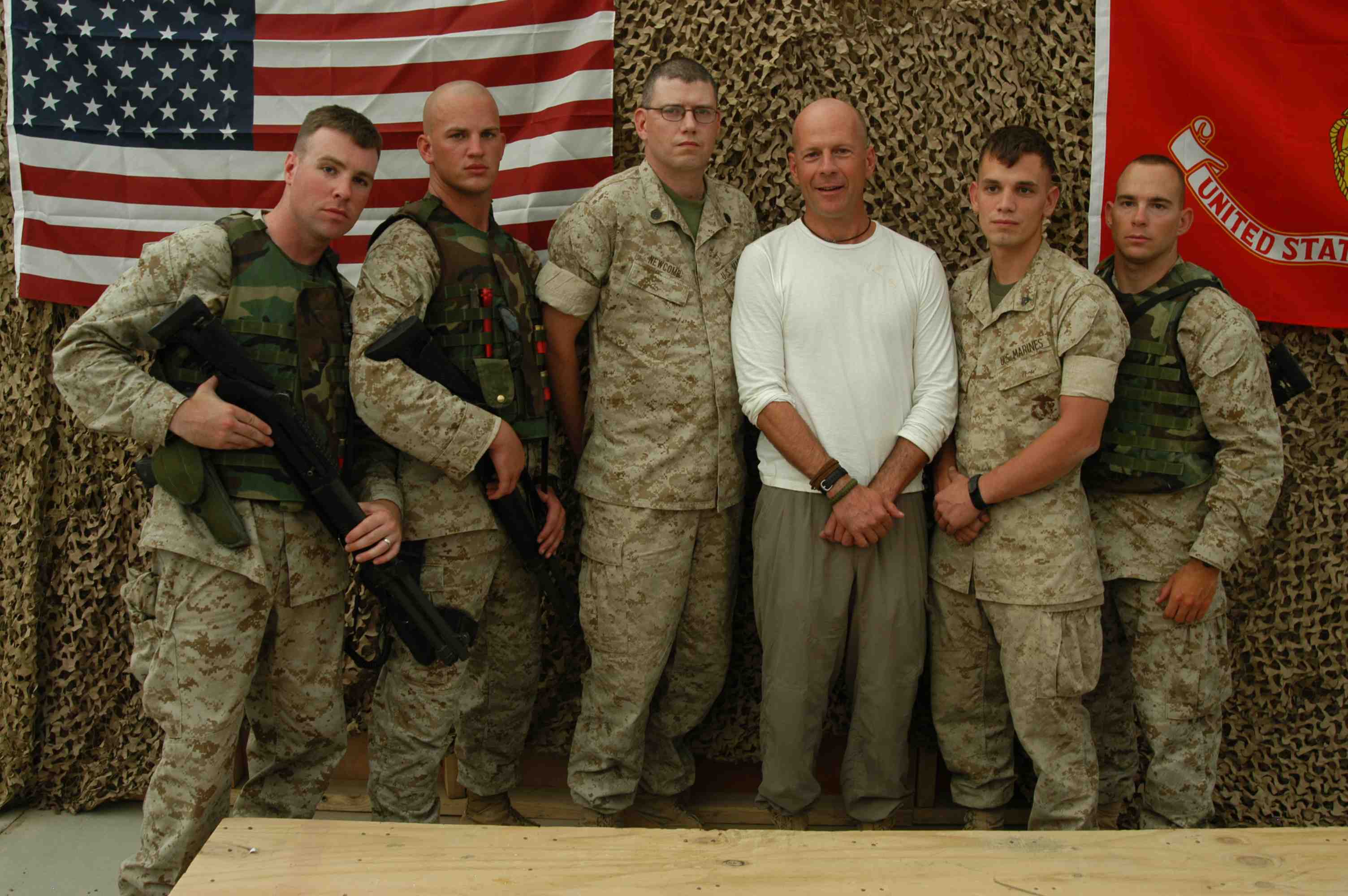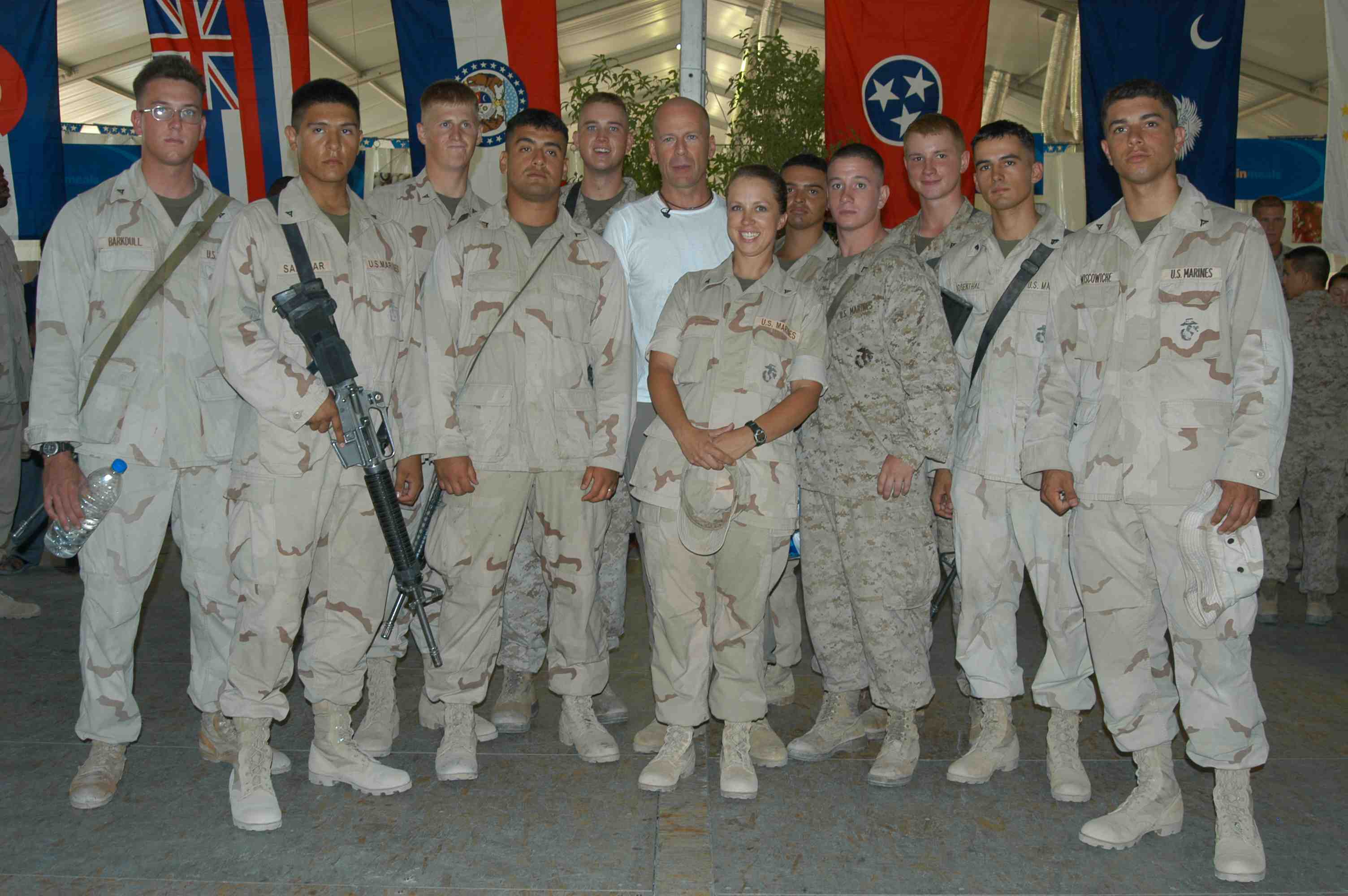 Pictures of Bruce Willis with the troops during a USO tour in Abu Dhabi, Iraq and Kuwait, 2003 (posted previously
