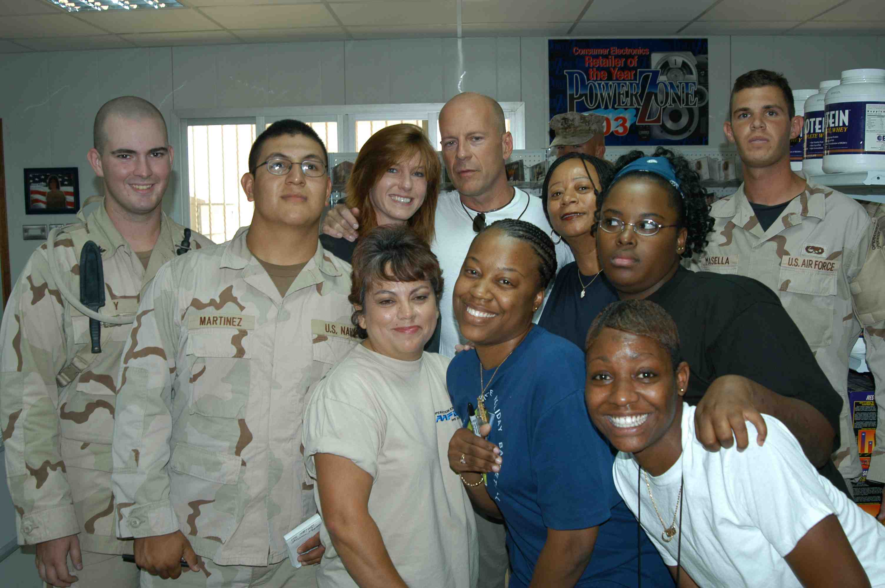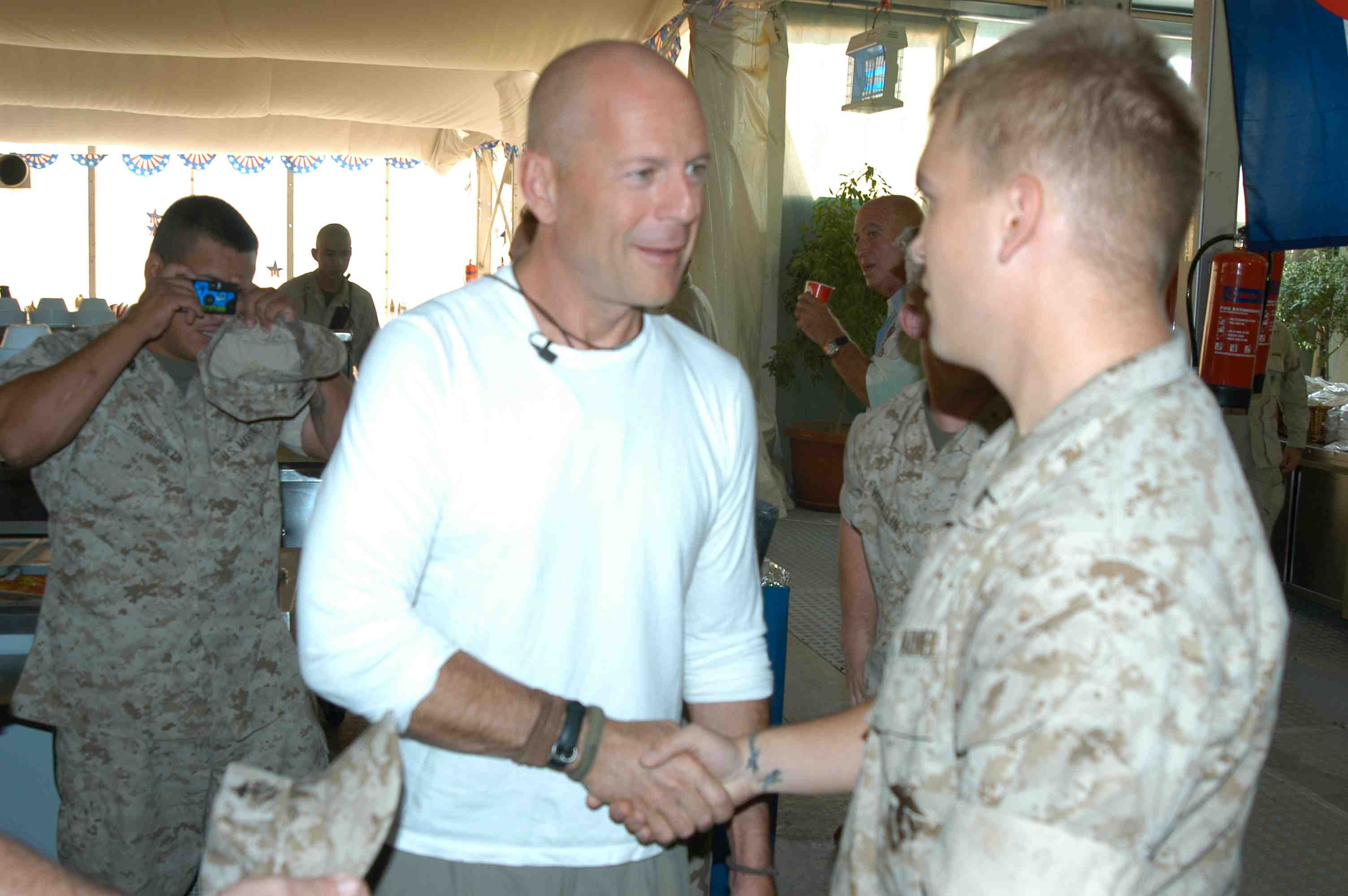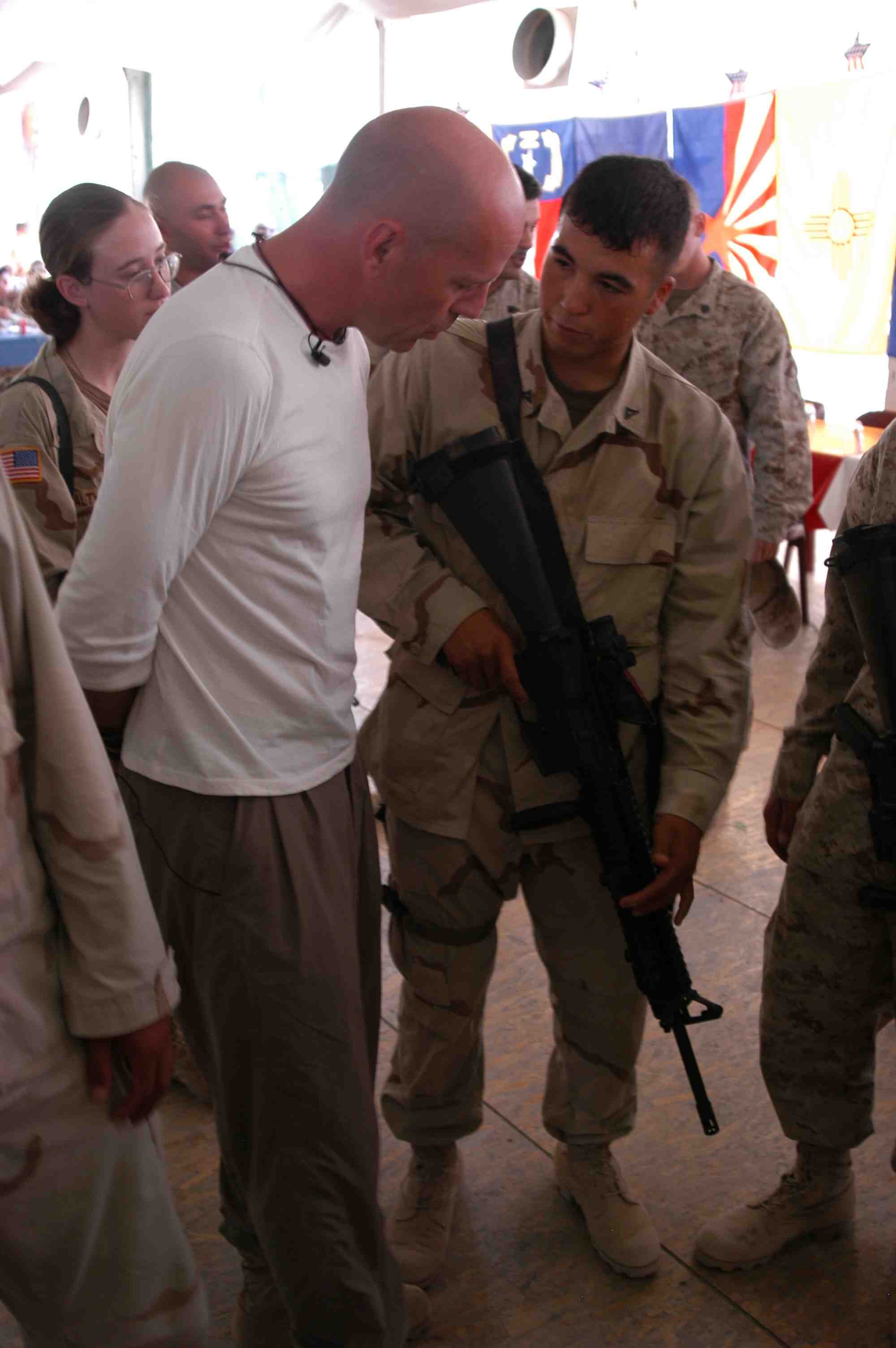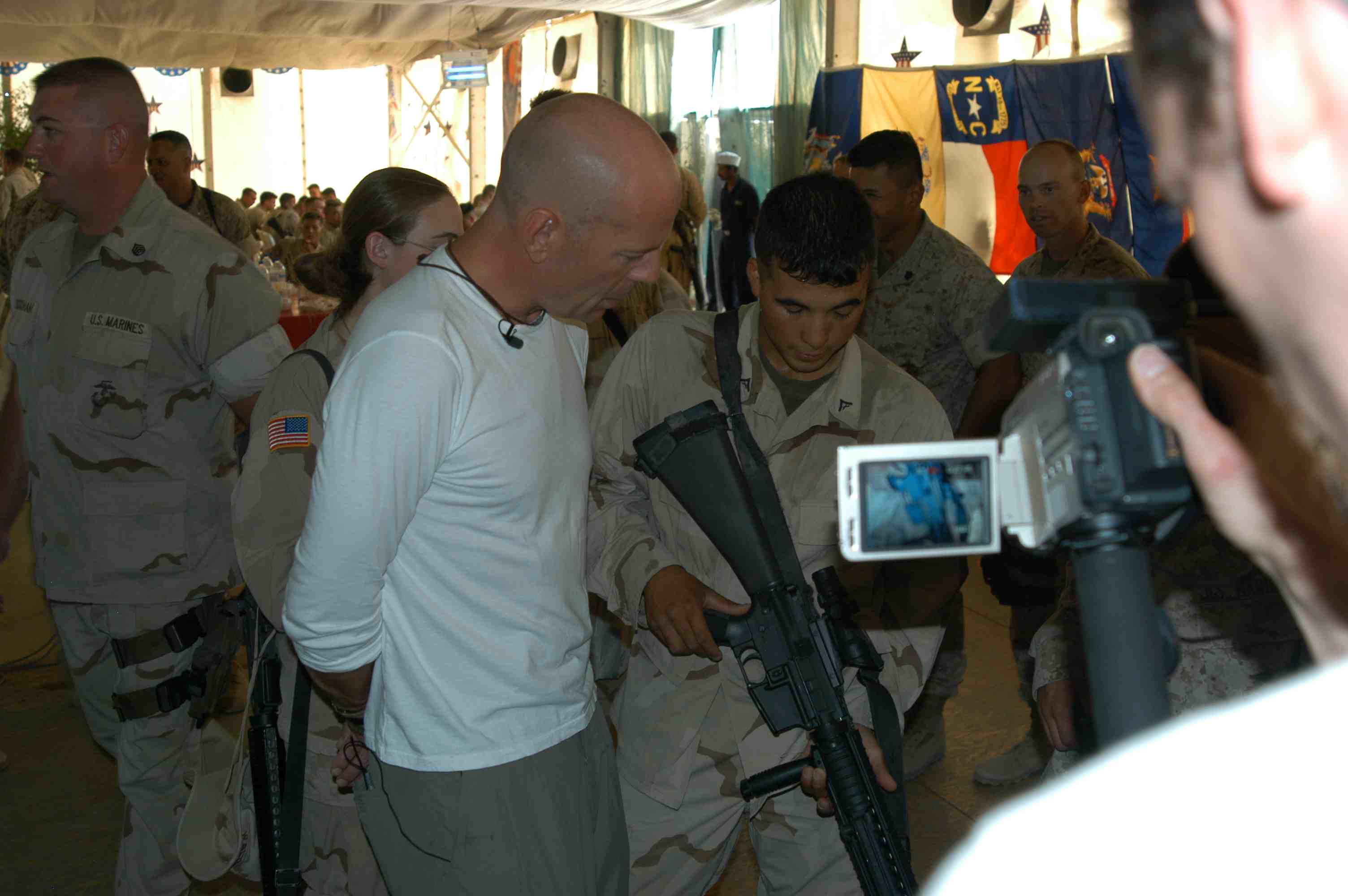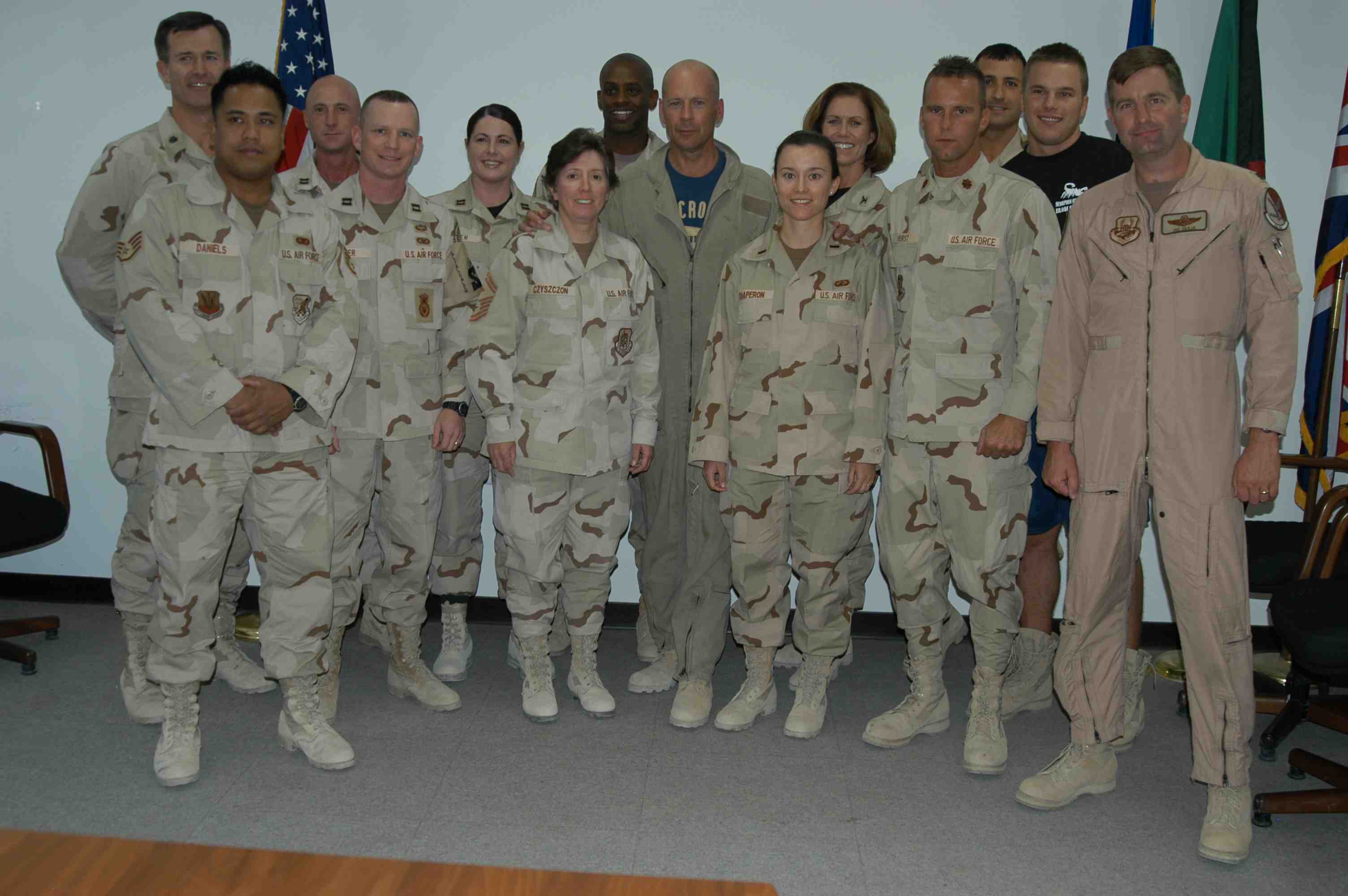 Pictures of Bruce Willis with the troops during a USO tour in Abu Dhabi, Iraq and Kuwait, 2003 (posted previously