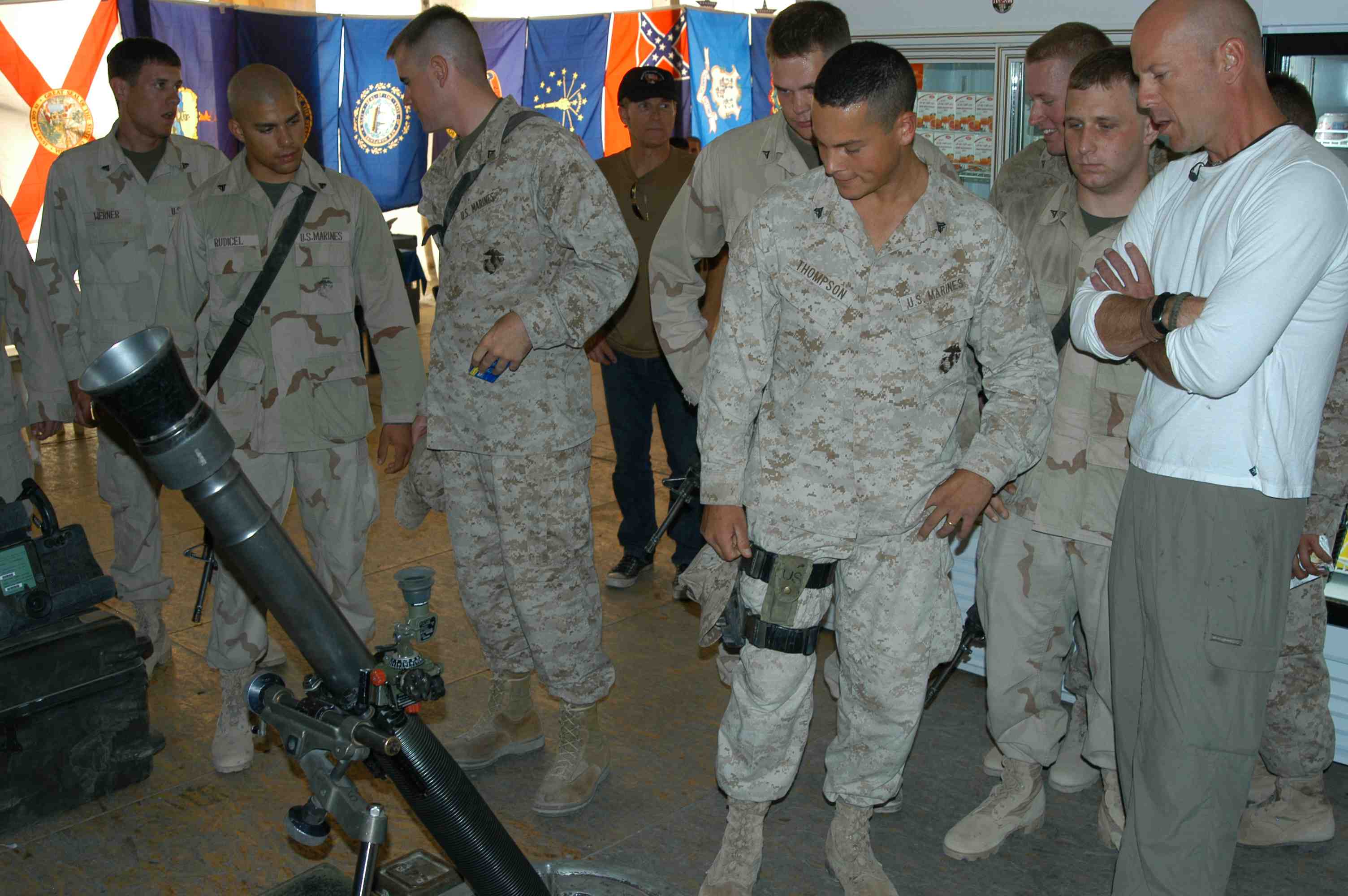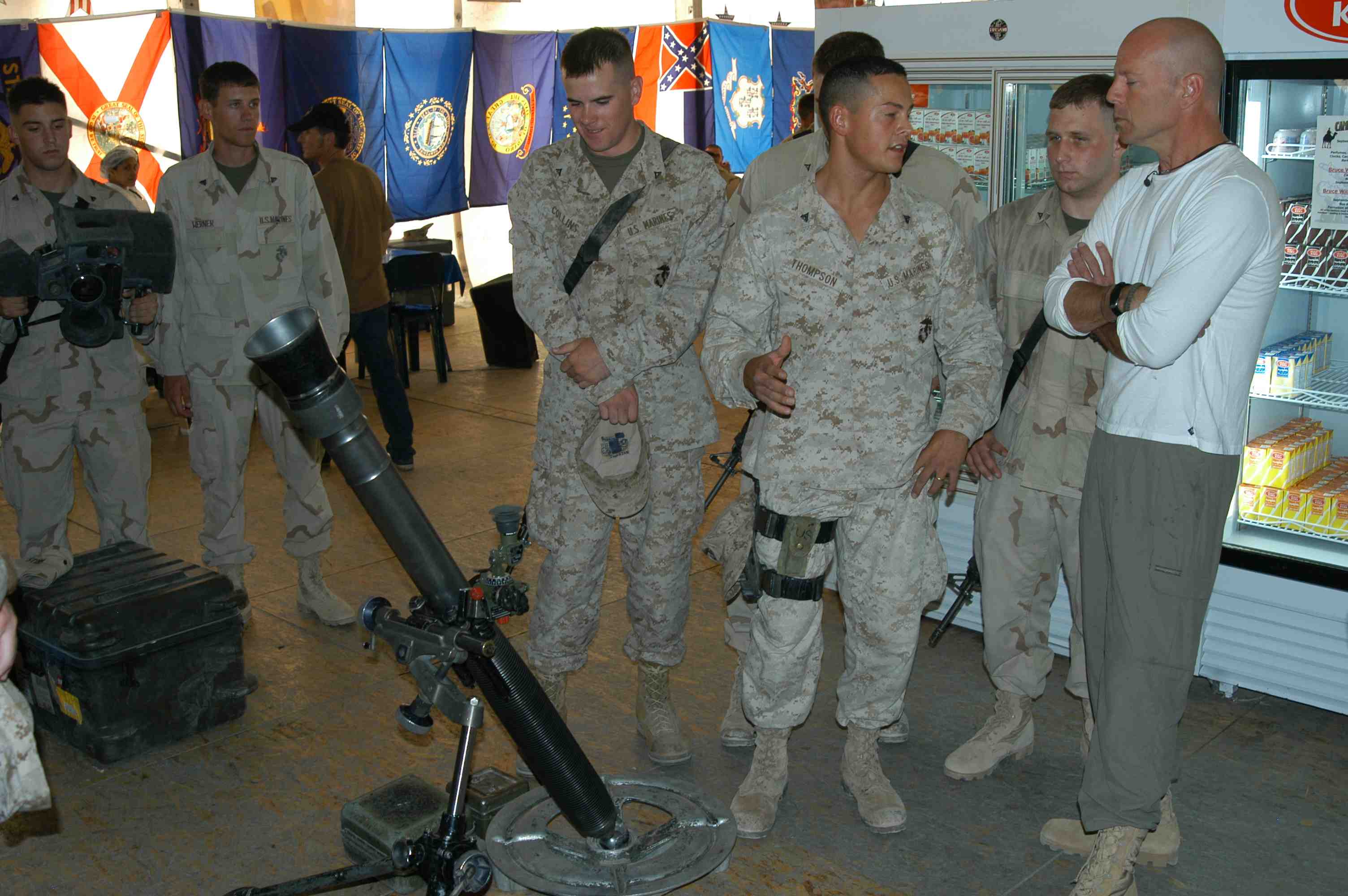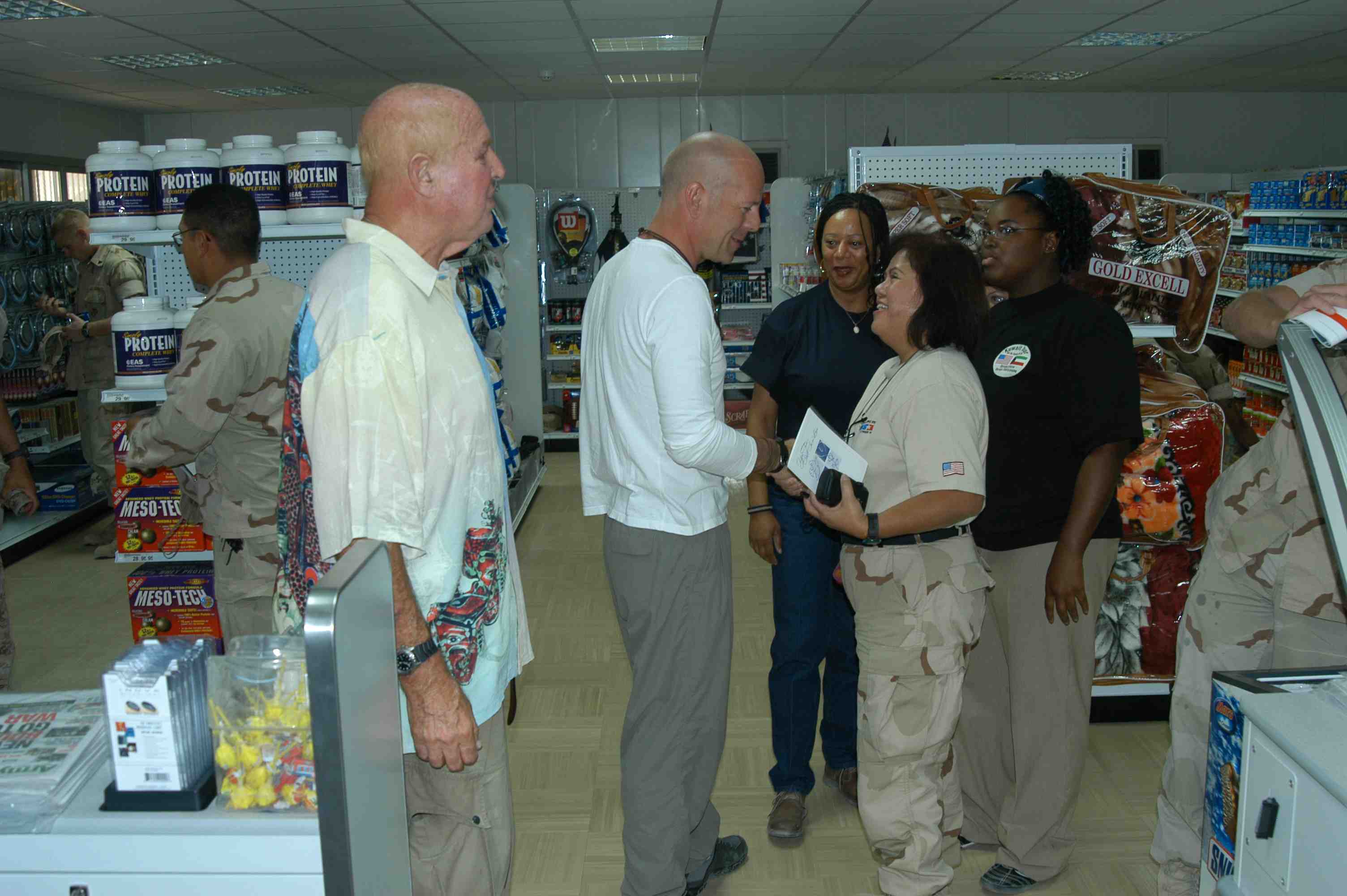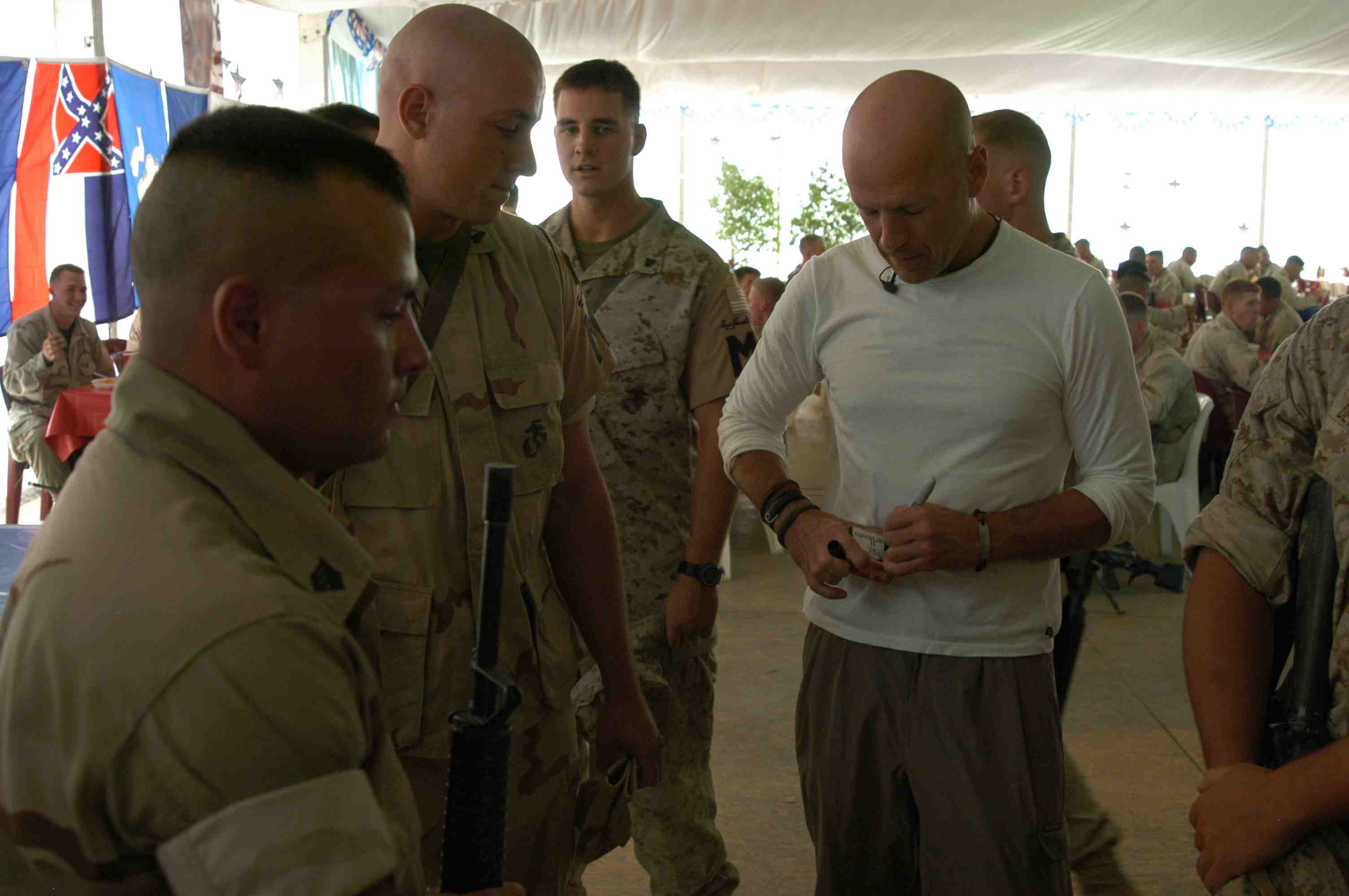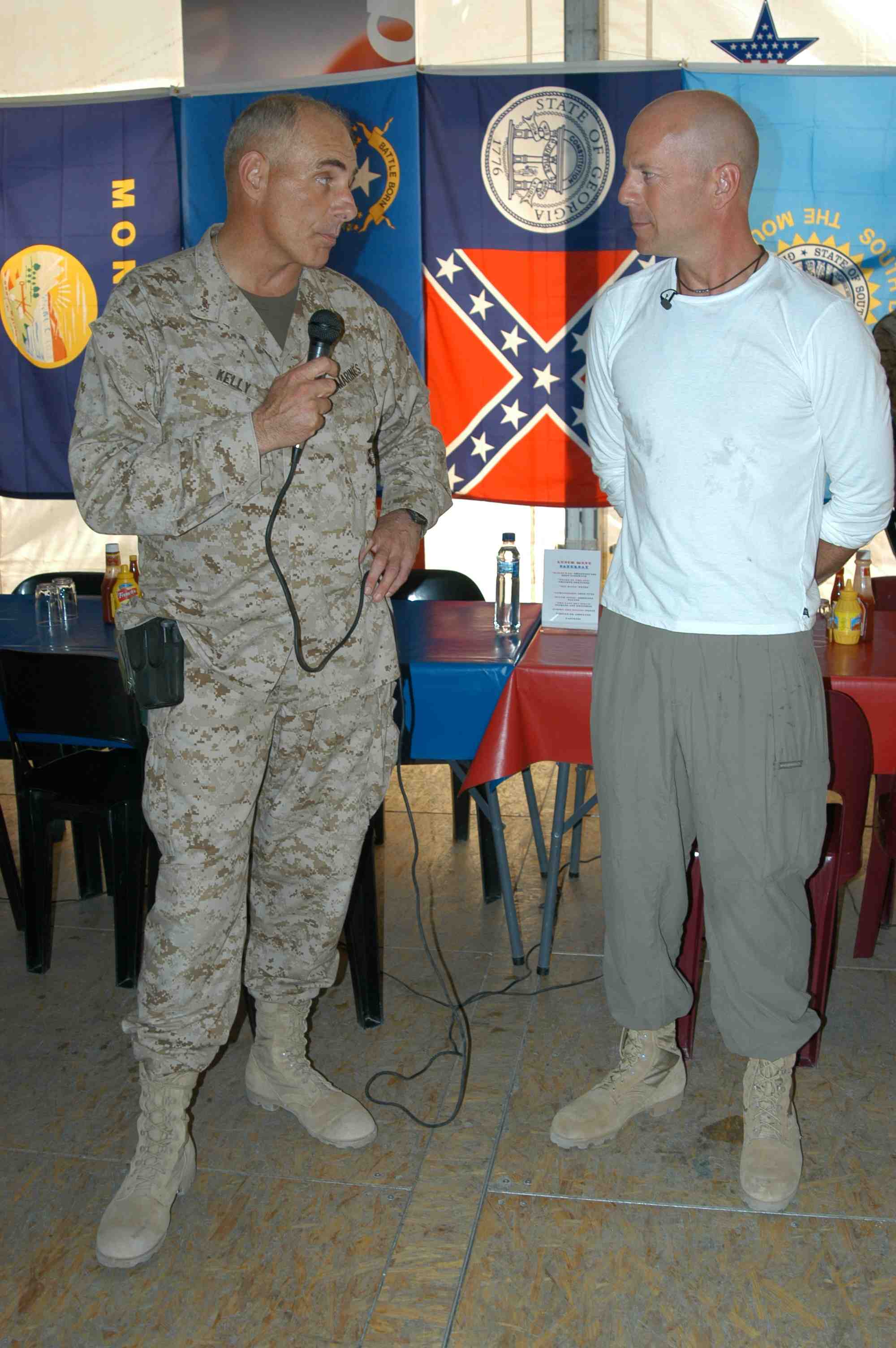 Pictures of Bruce Willis with the troops during a USO tour in Abu Dhabi, Iraq and Kuwait, 2003 (posted previously