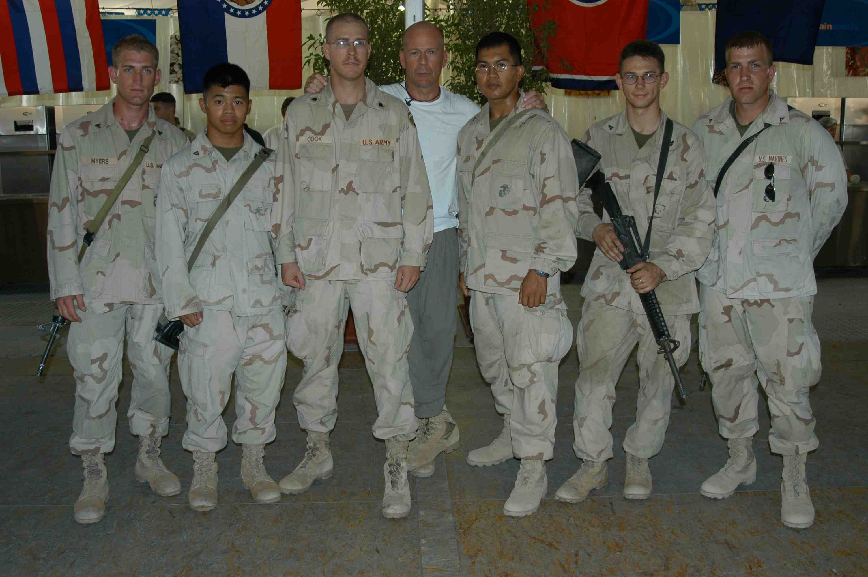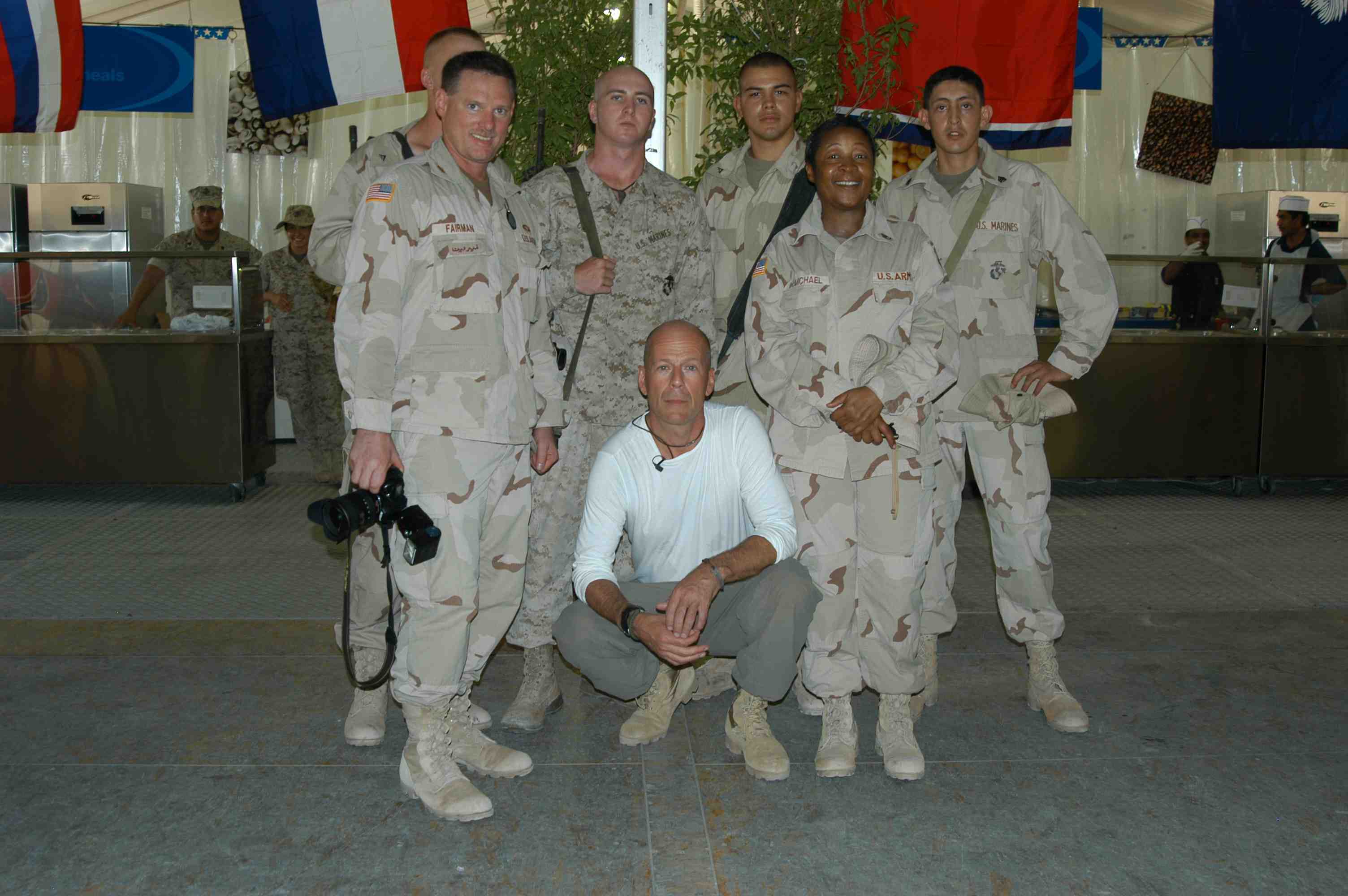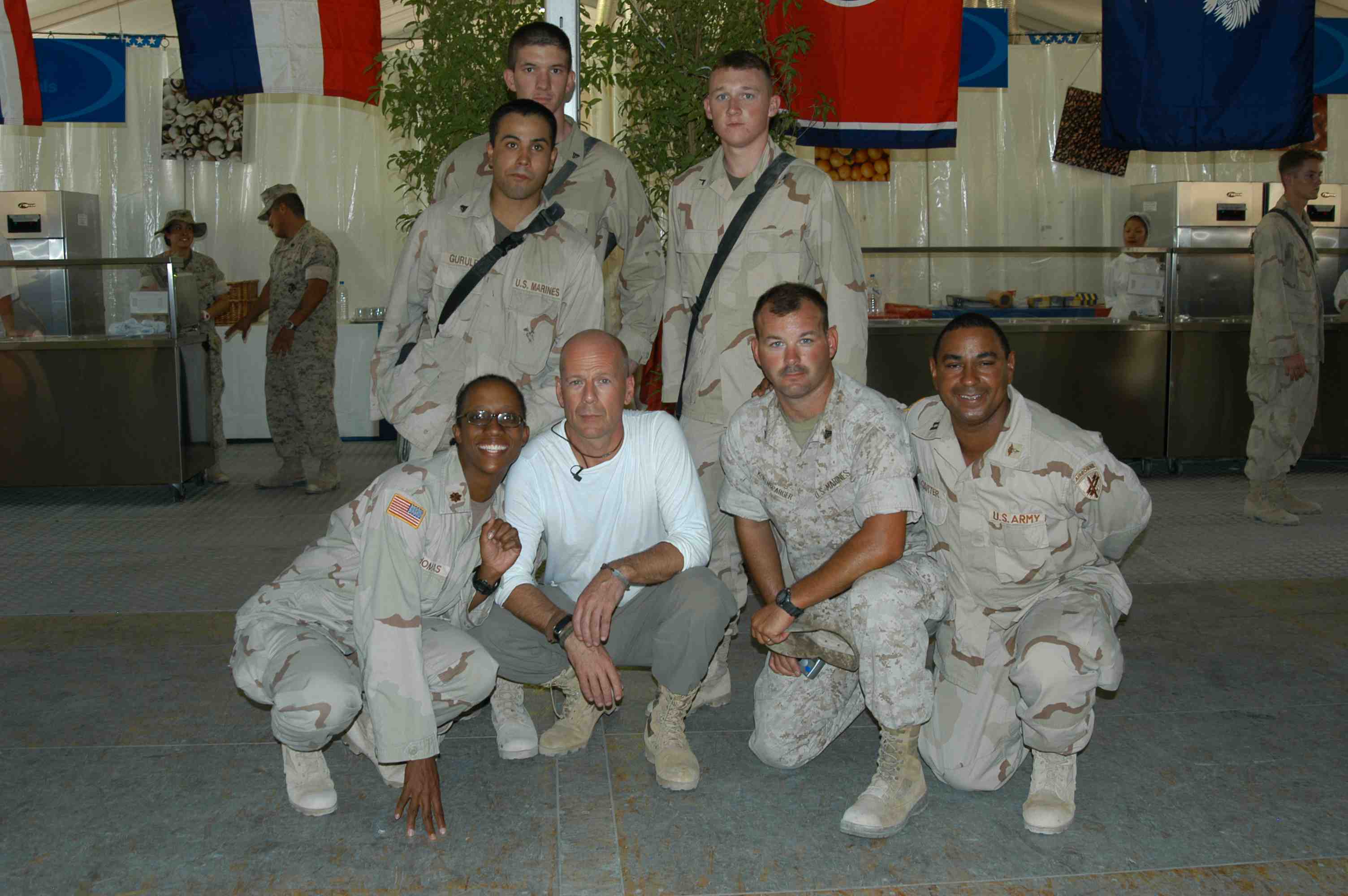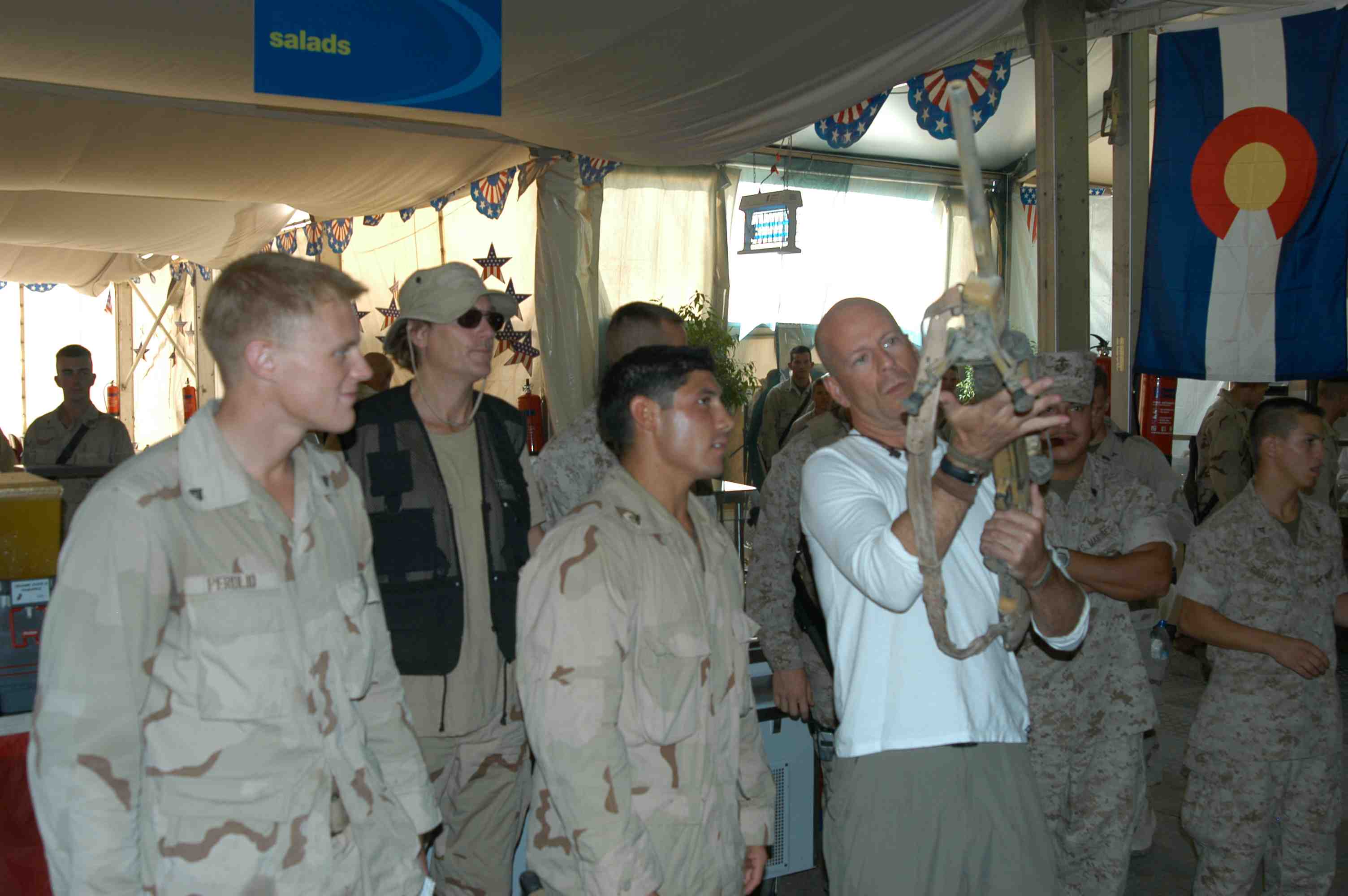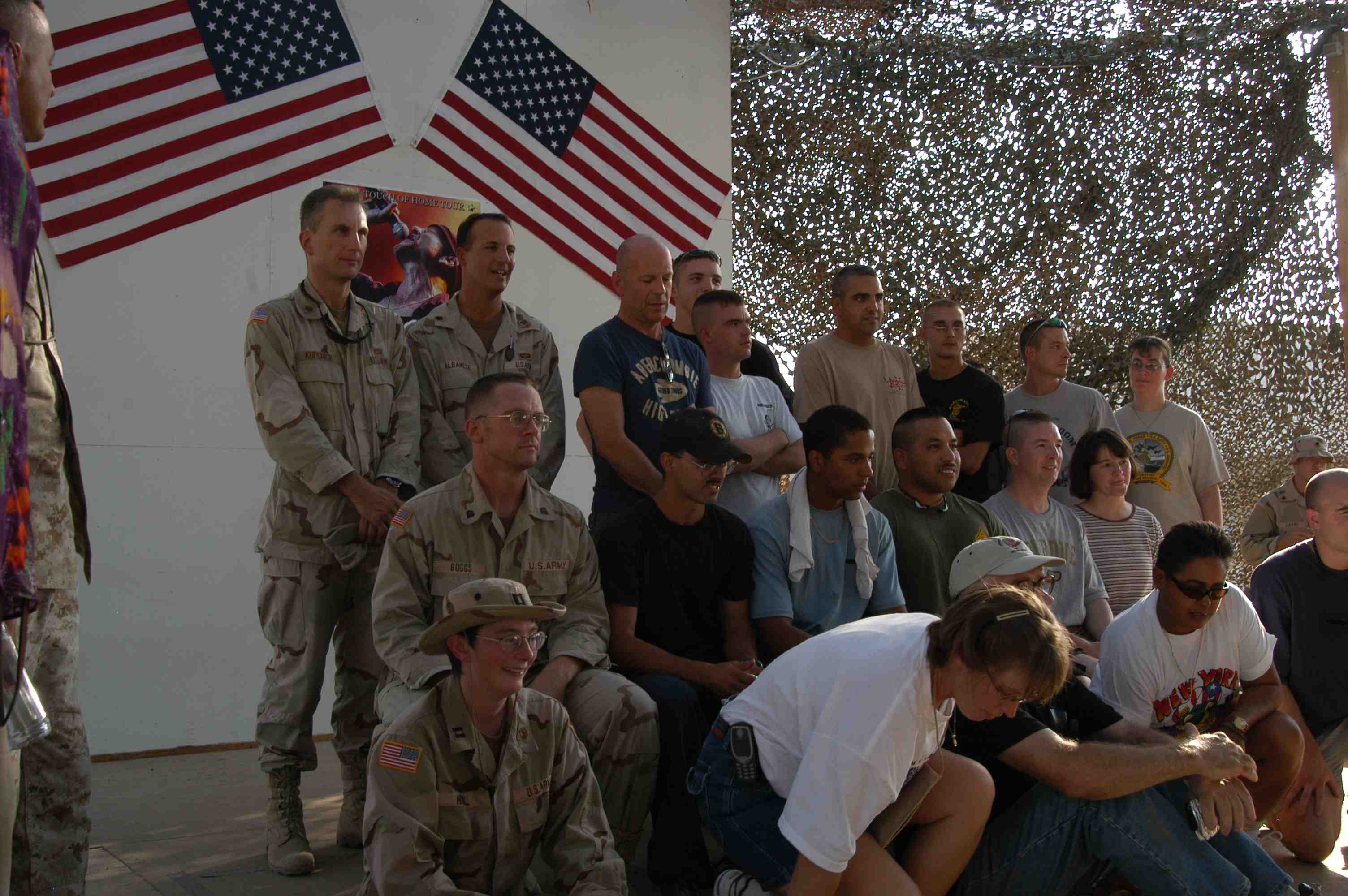 Pictures of Bruce Willis with the troops during a USO tour in Abu Dhabi, Iraq and Kuwait, 2003 (posted previously