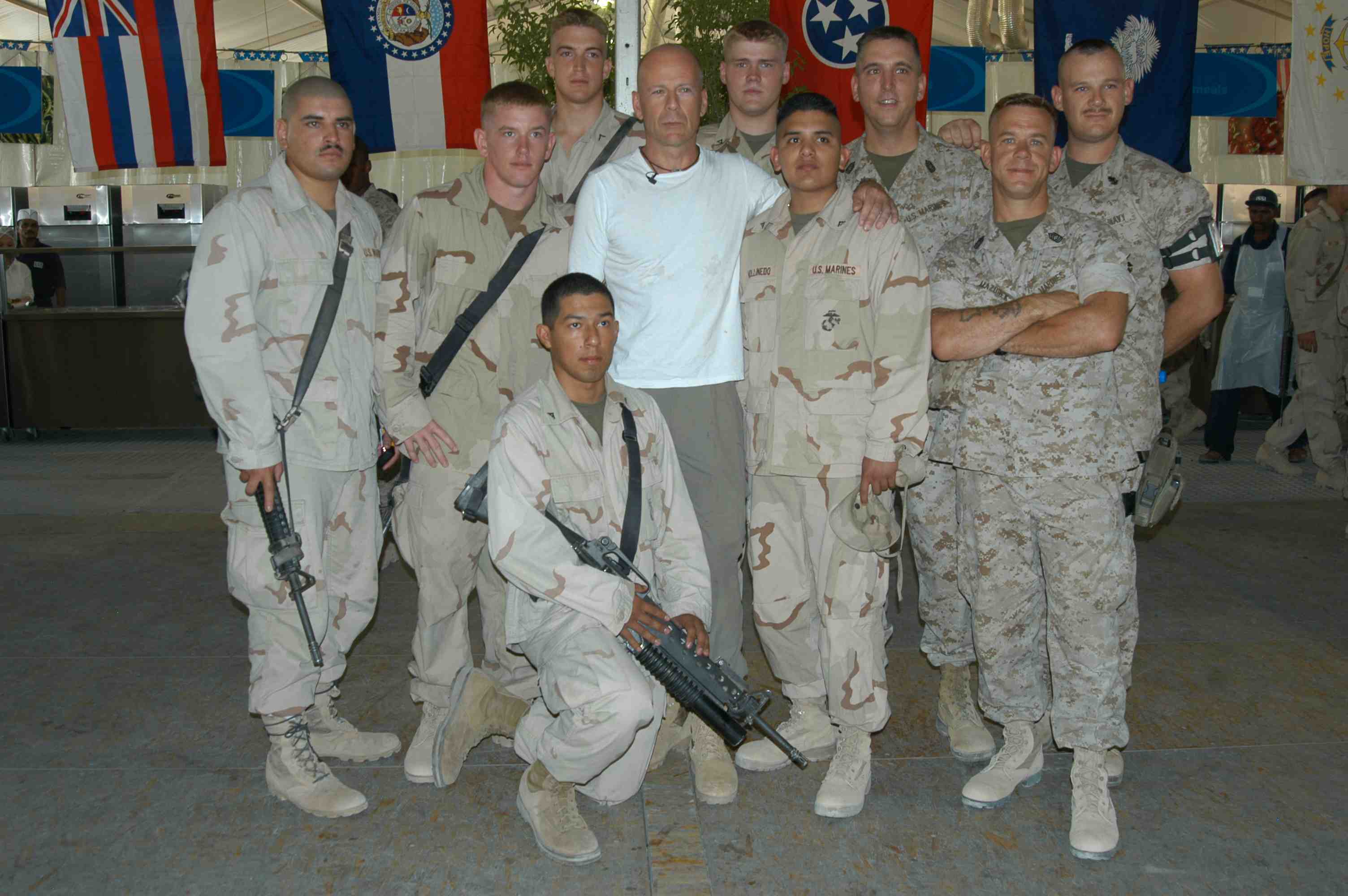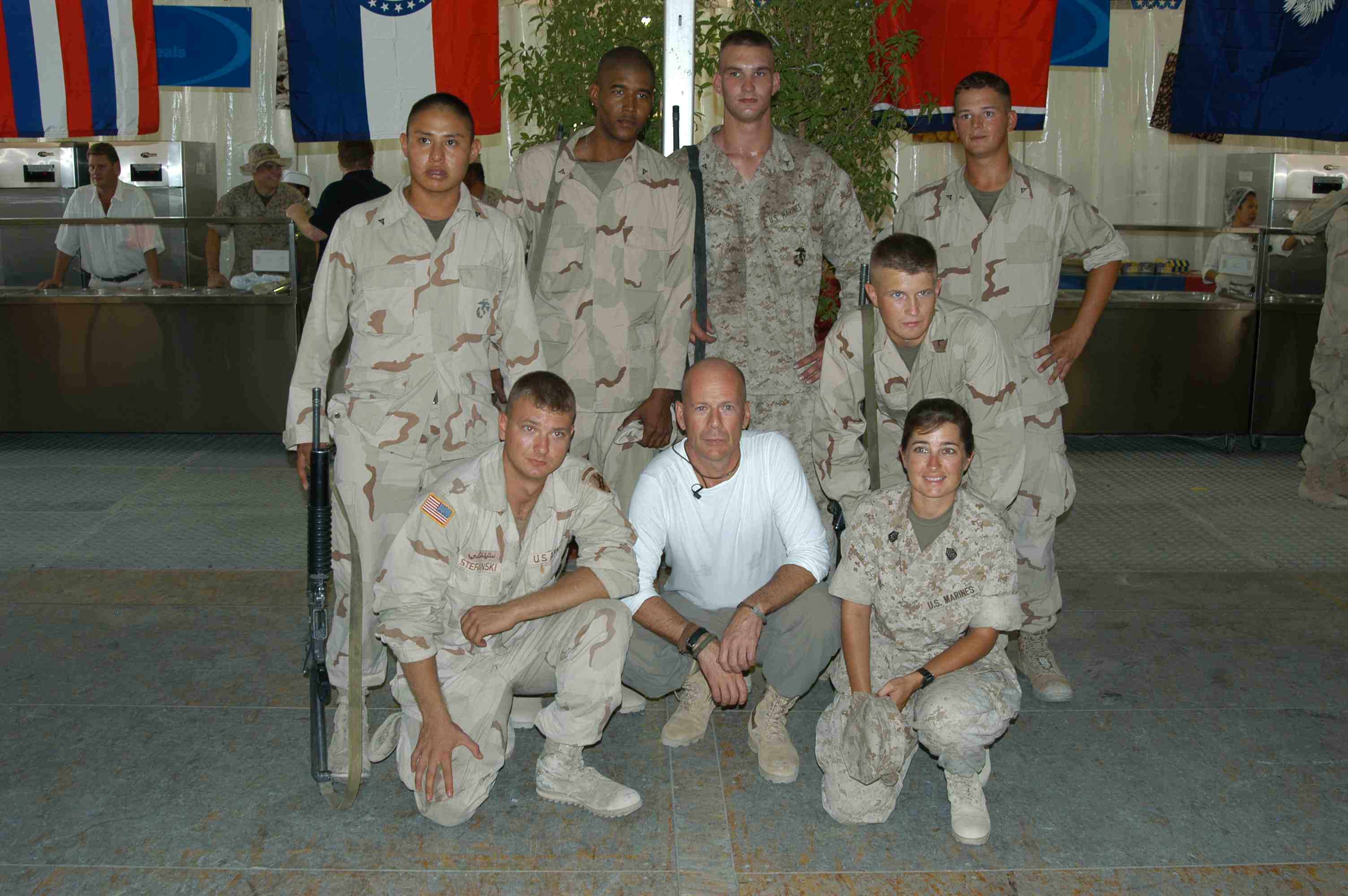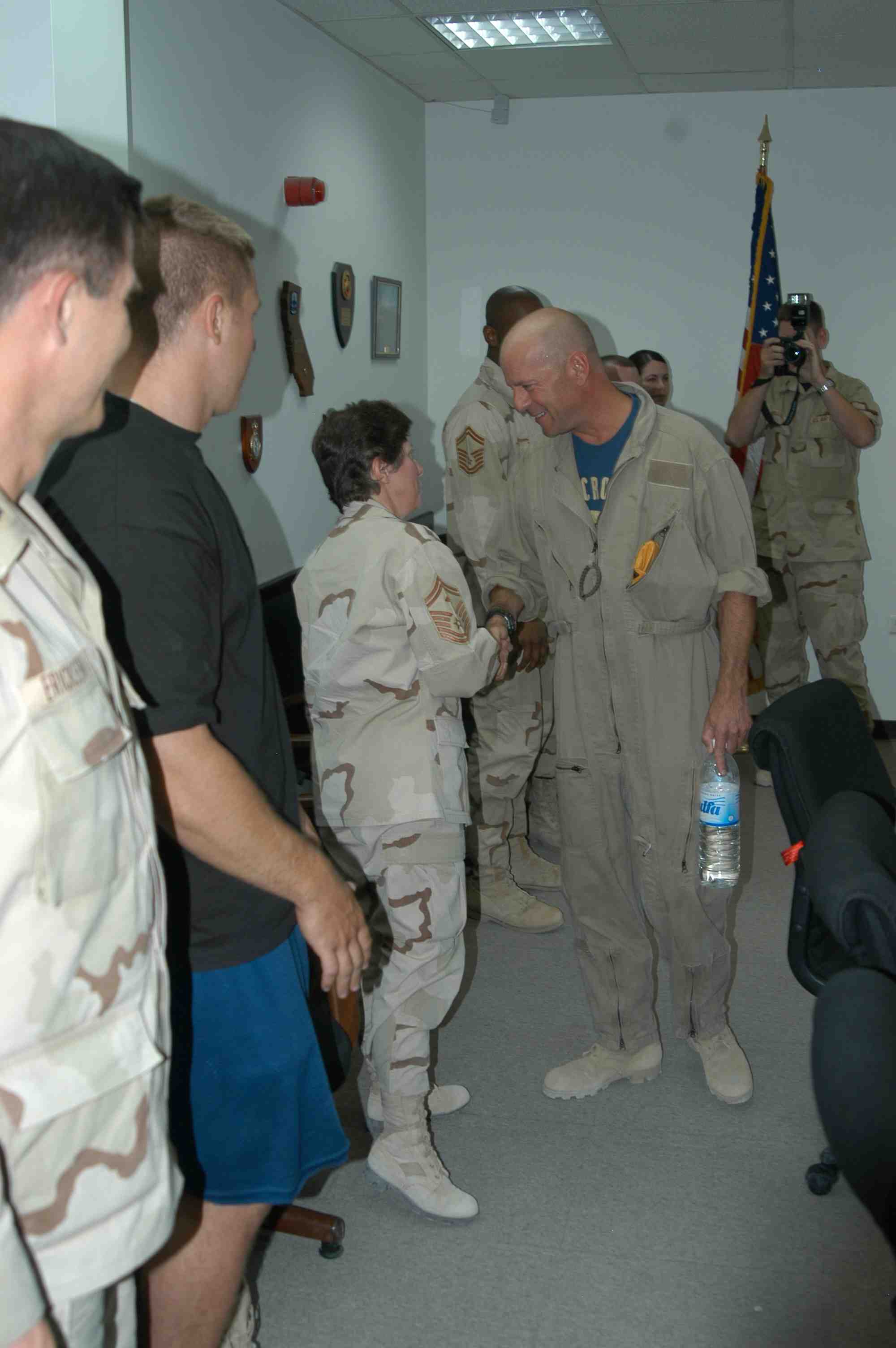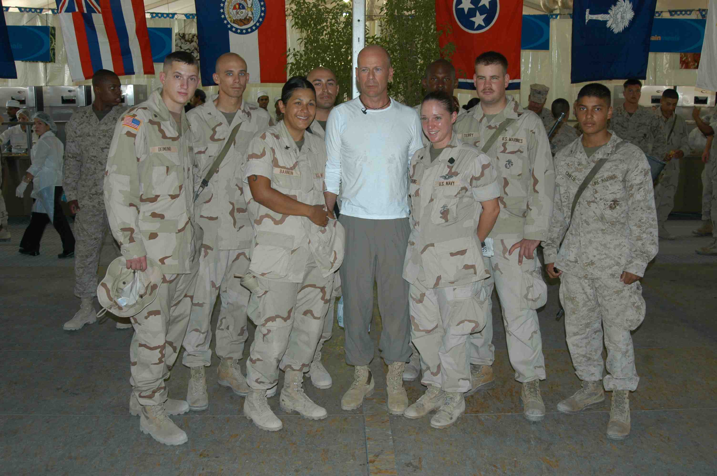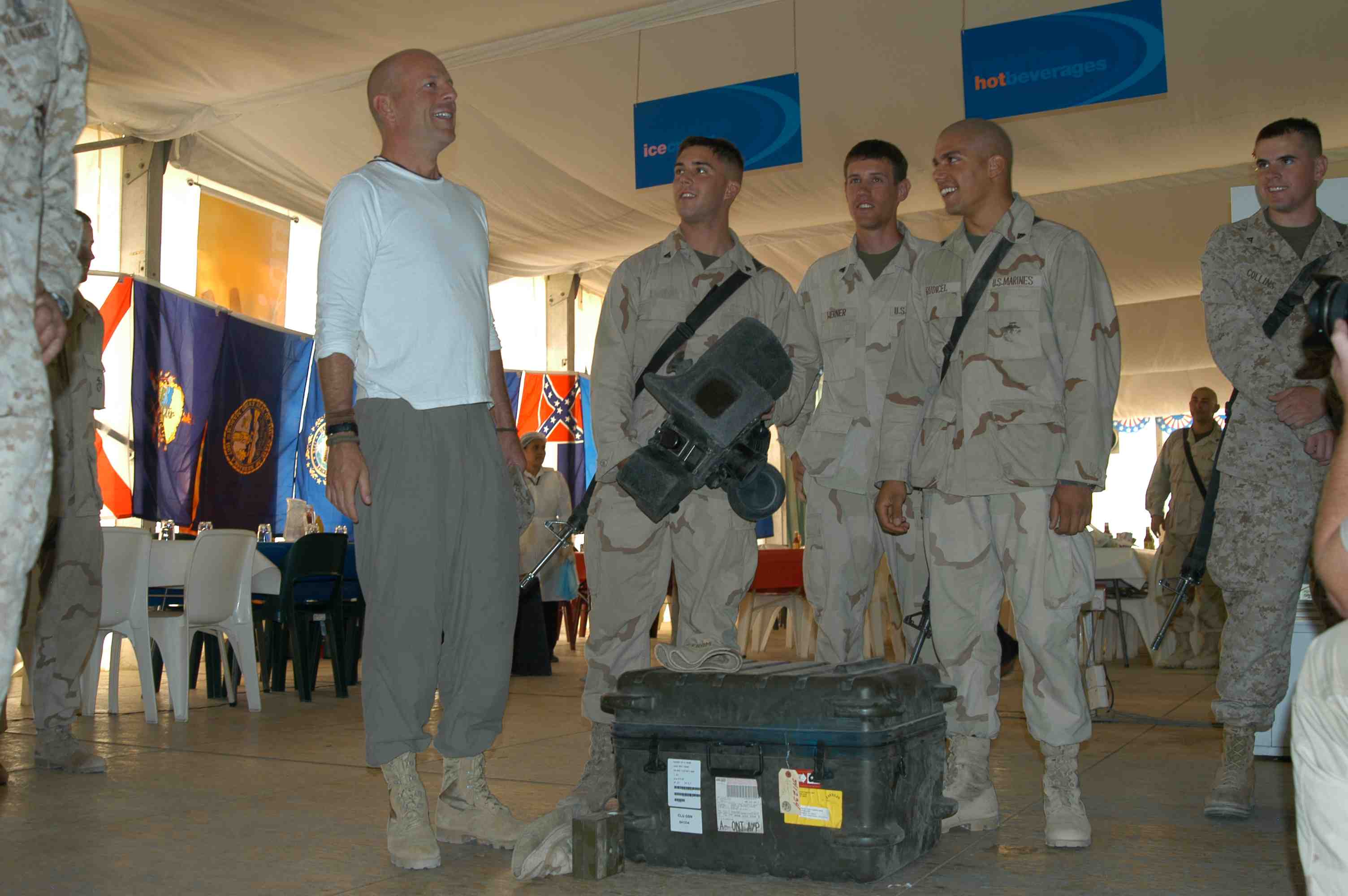 Pictures of Bruce Willis with the troops during a USO tour in Abu Dhabi, Iraq and Kuwait, 2003 (posted previously