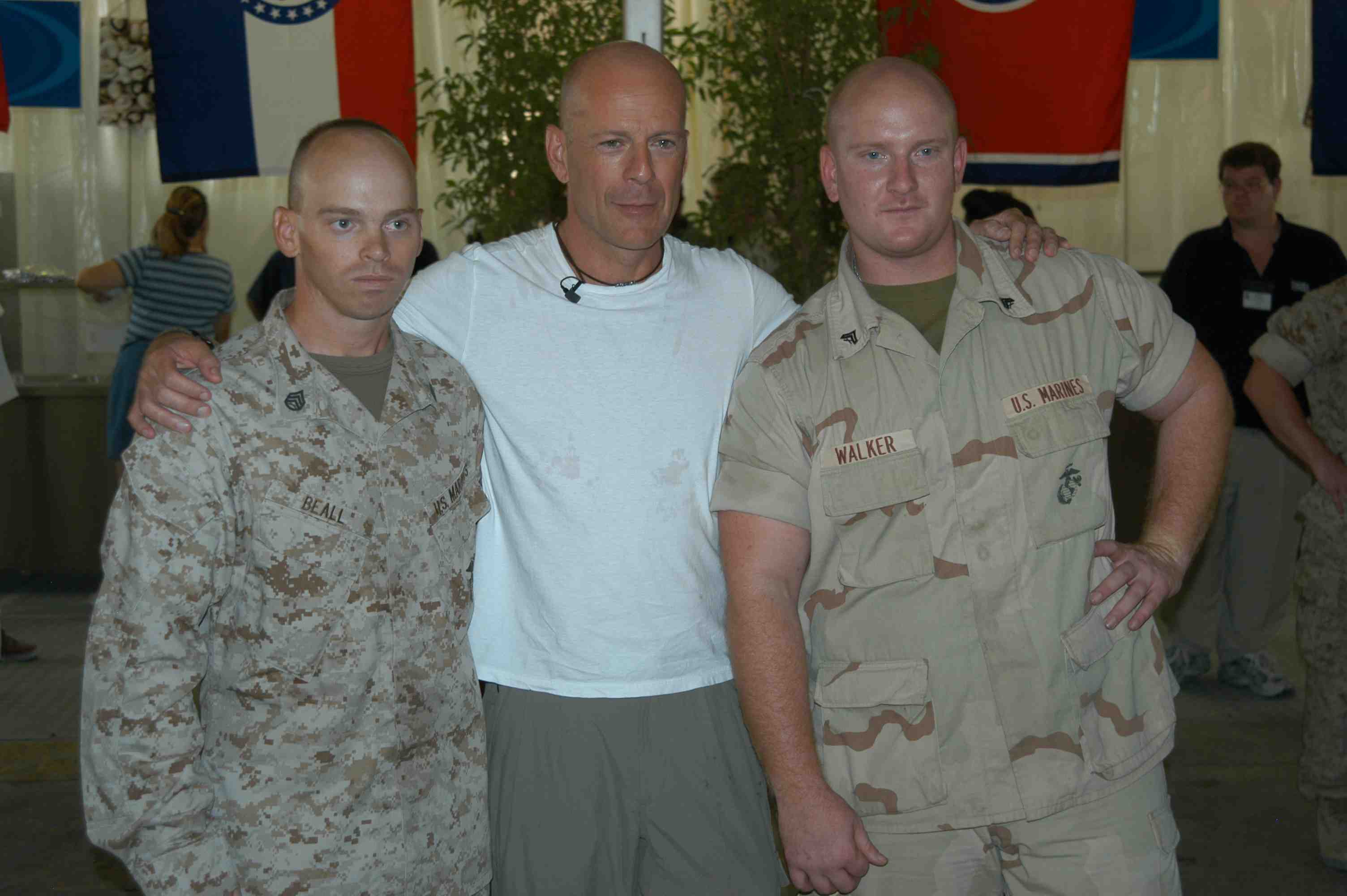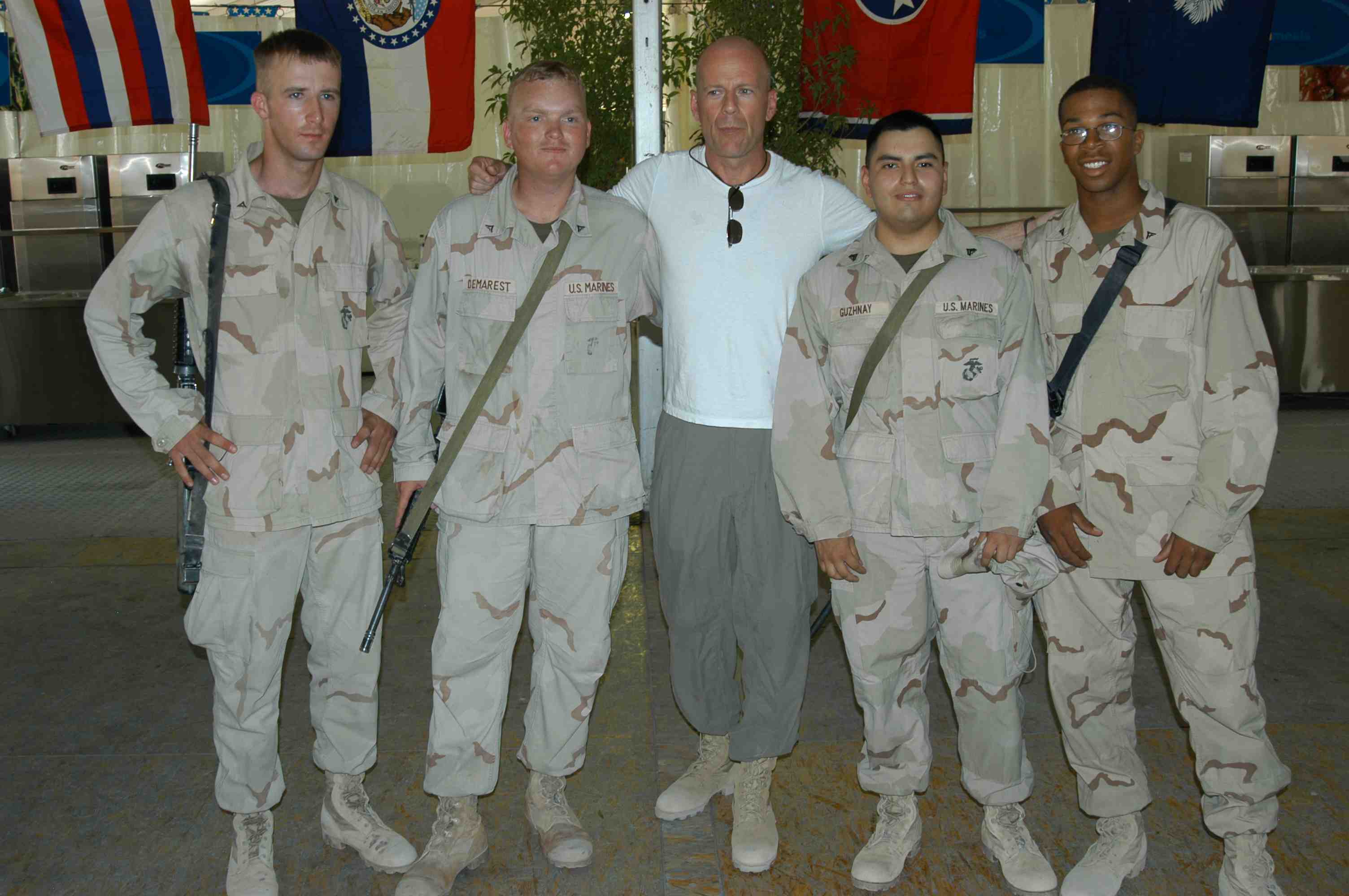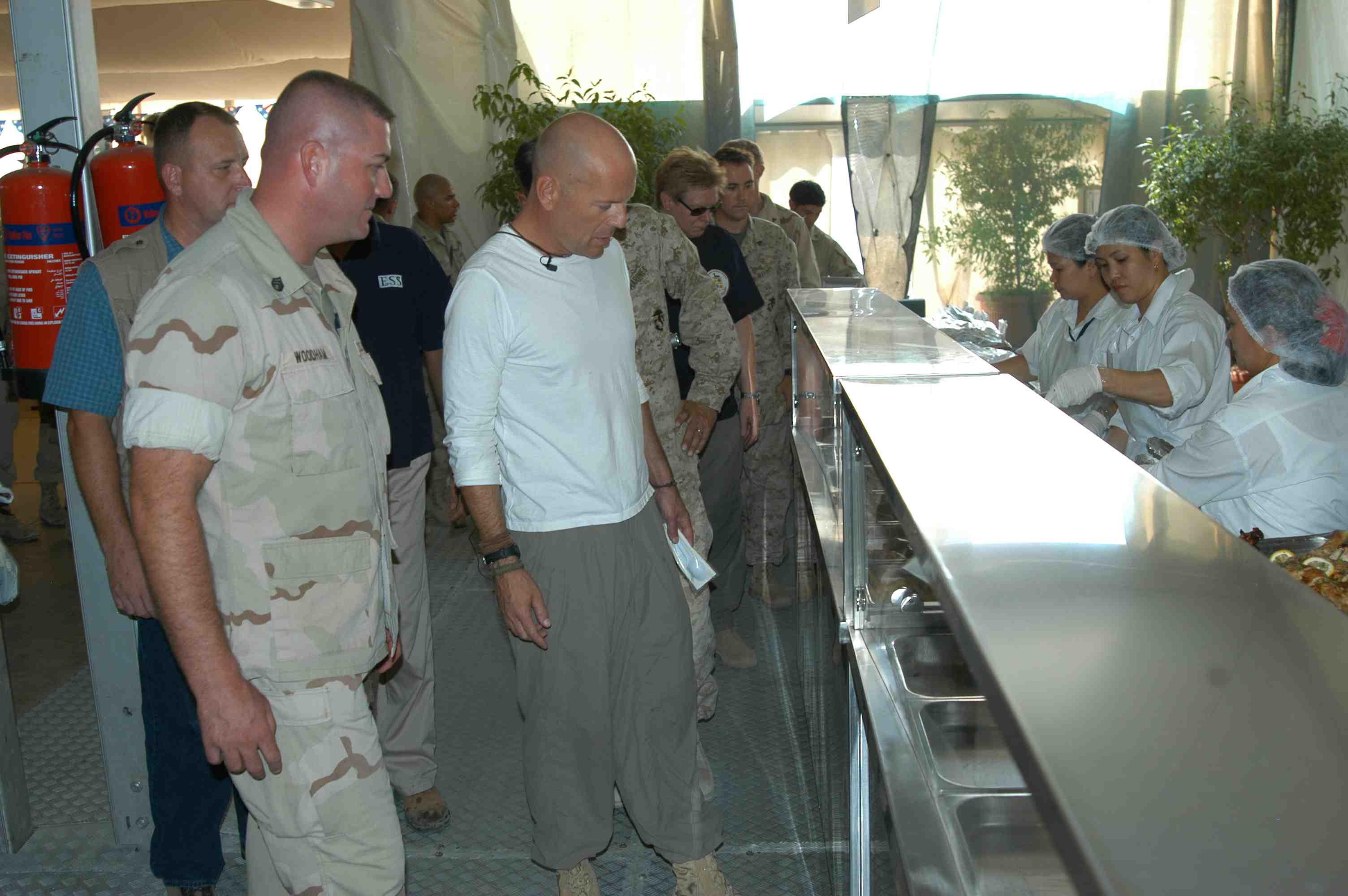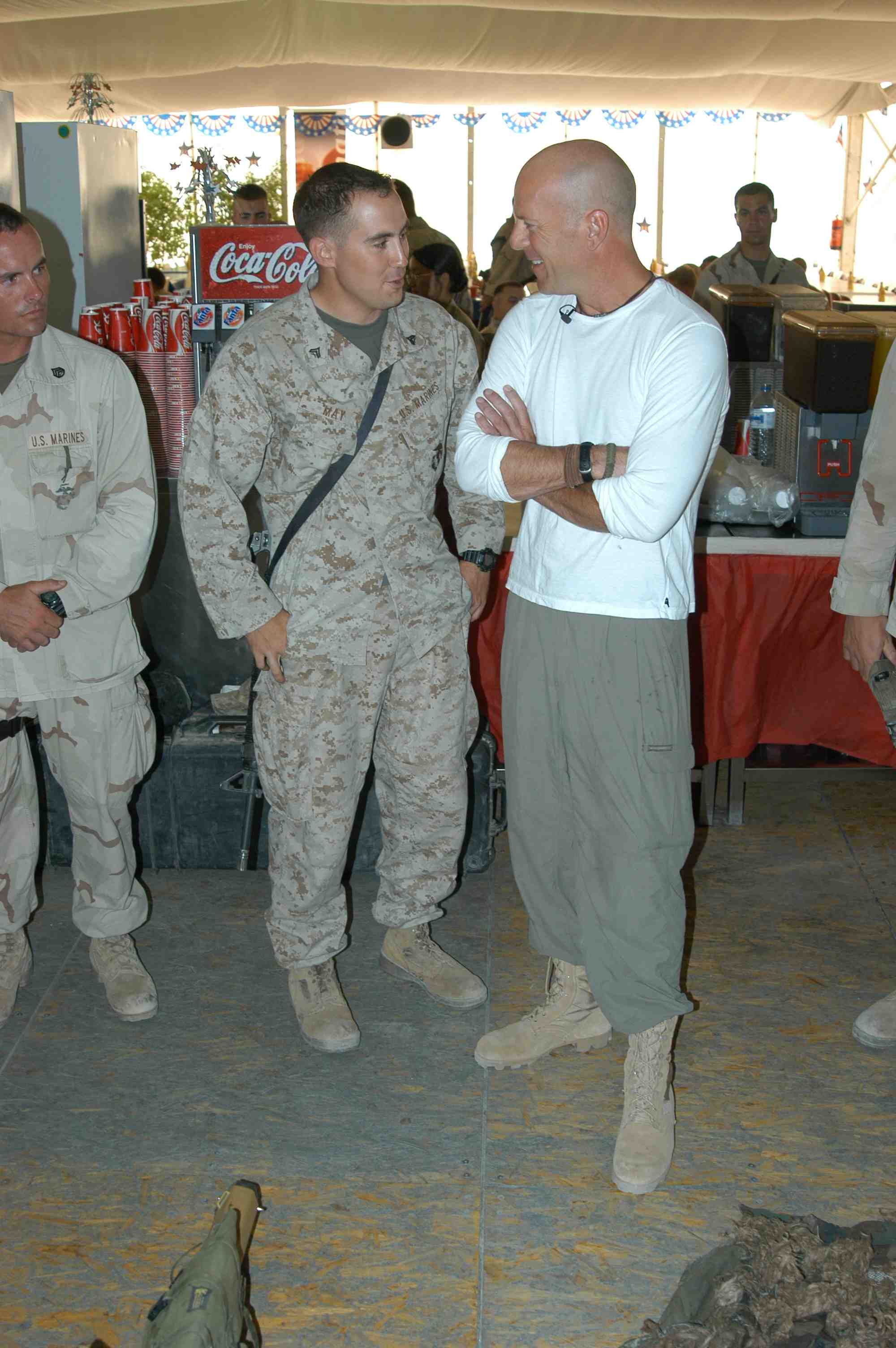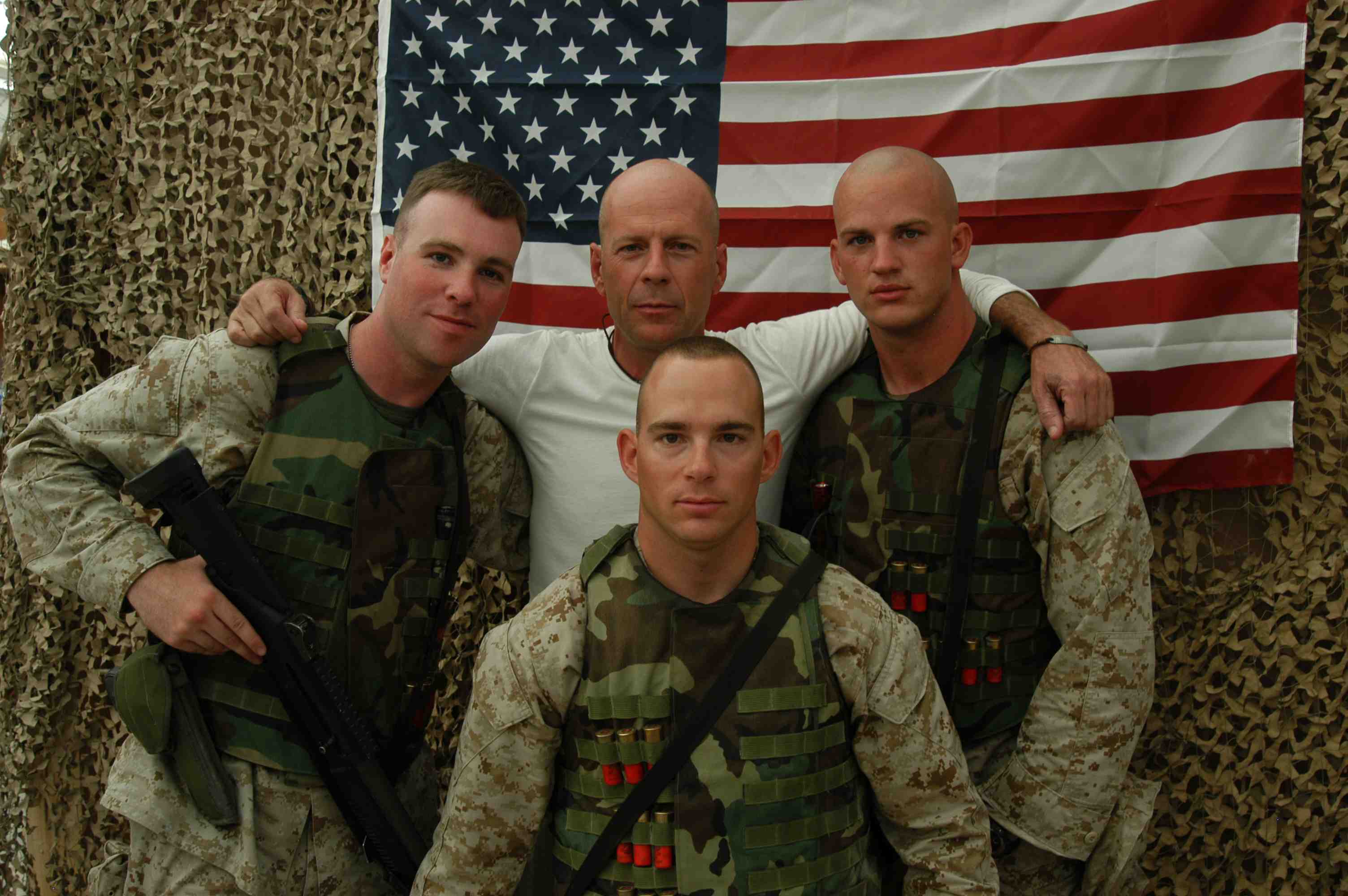 Pictures of Bruce Willis with the troops during a USO tour in Abu Dhabi, Iraq and Kuwait, 2003 (posted previously