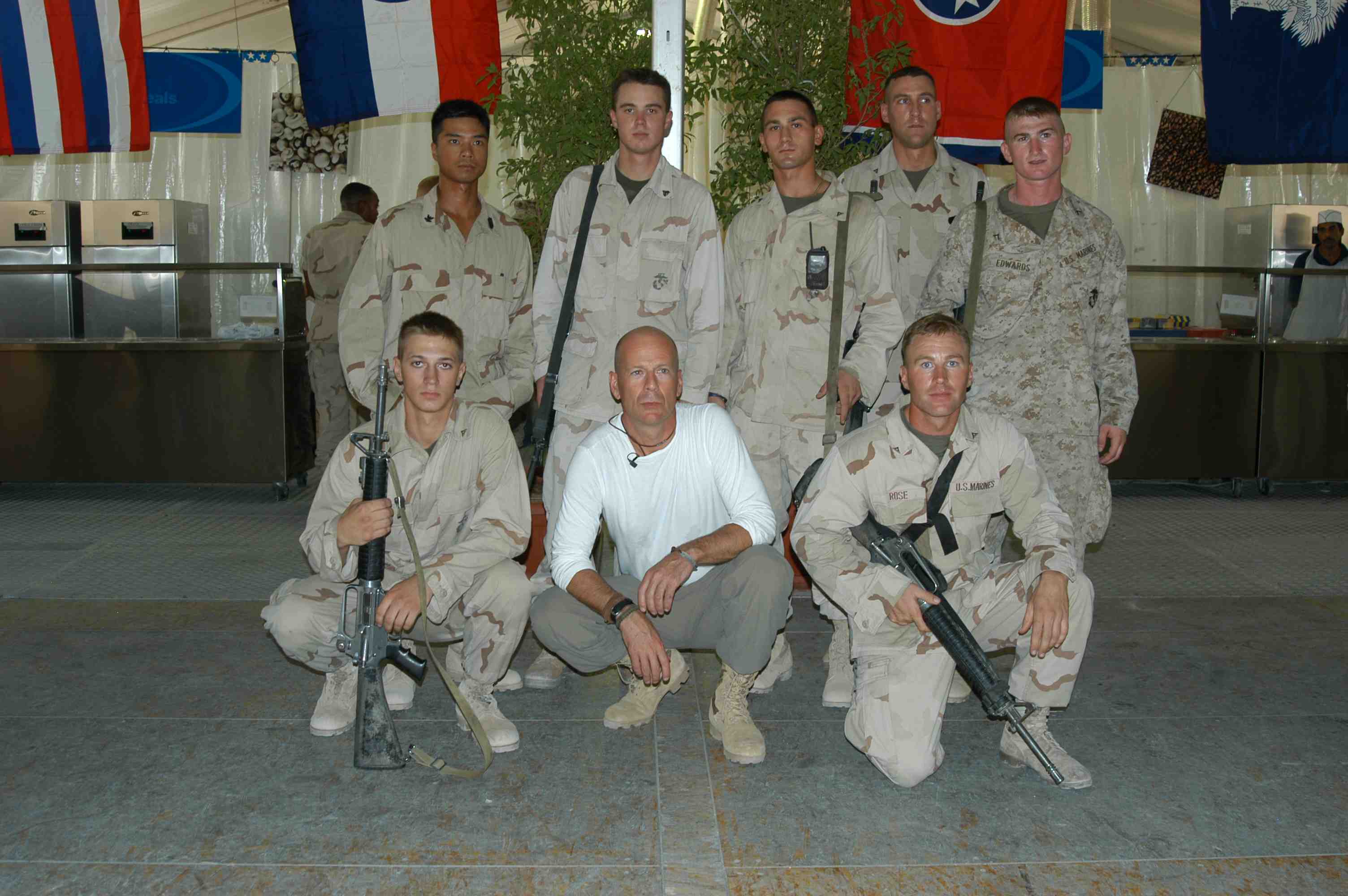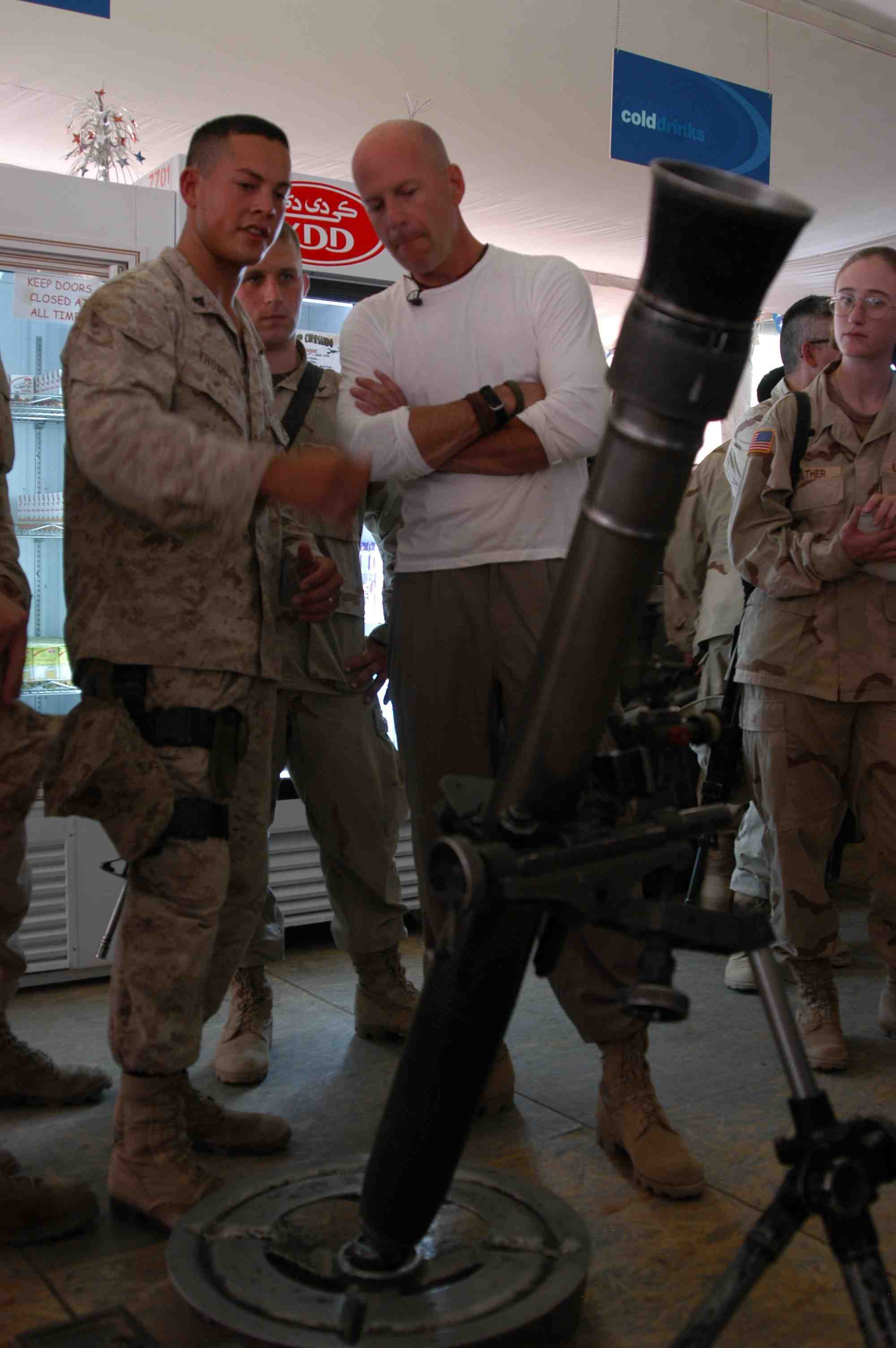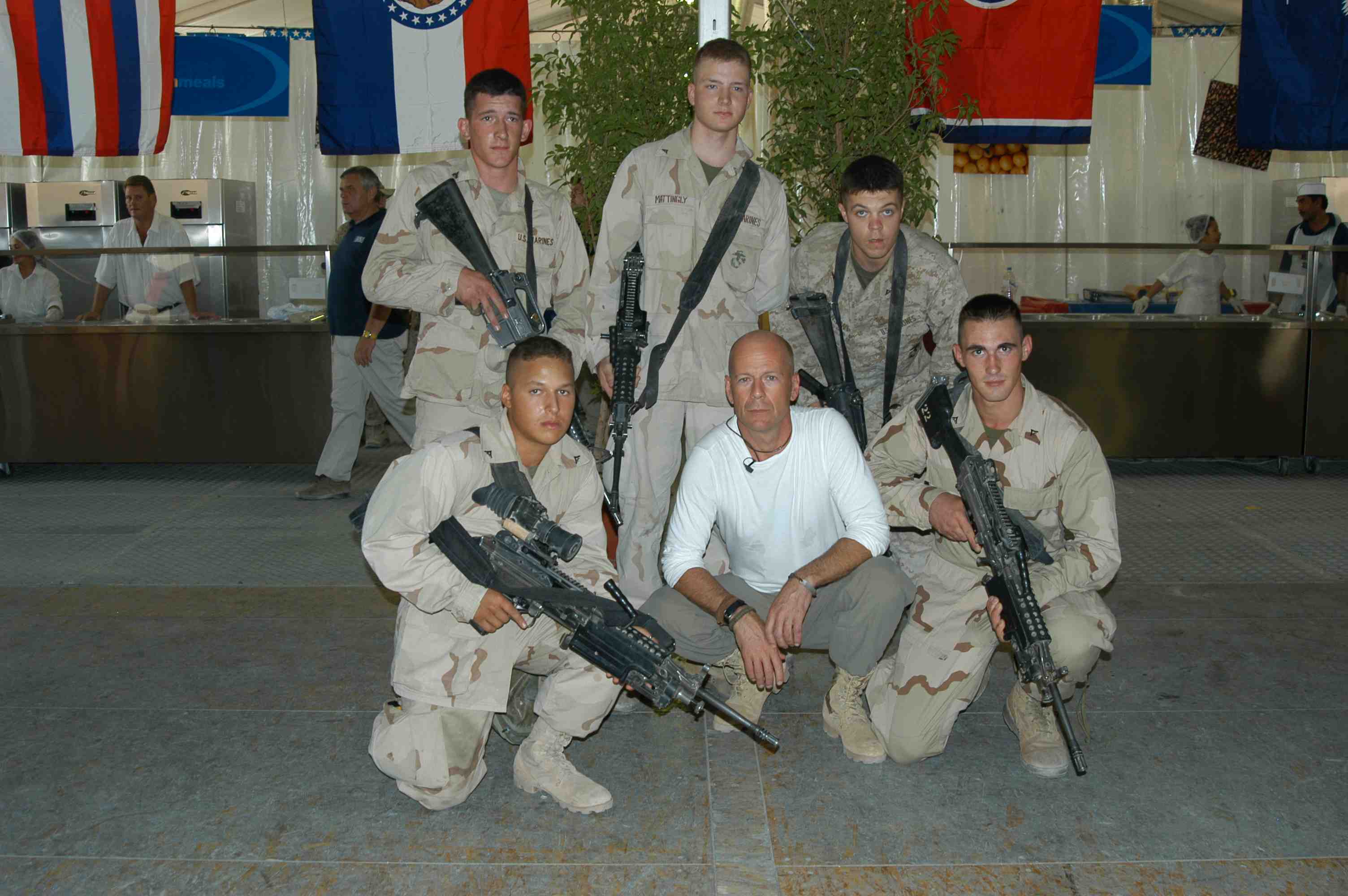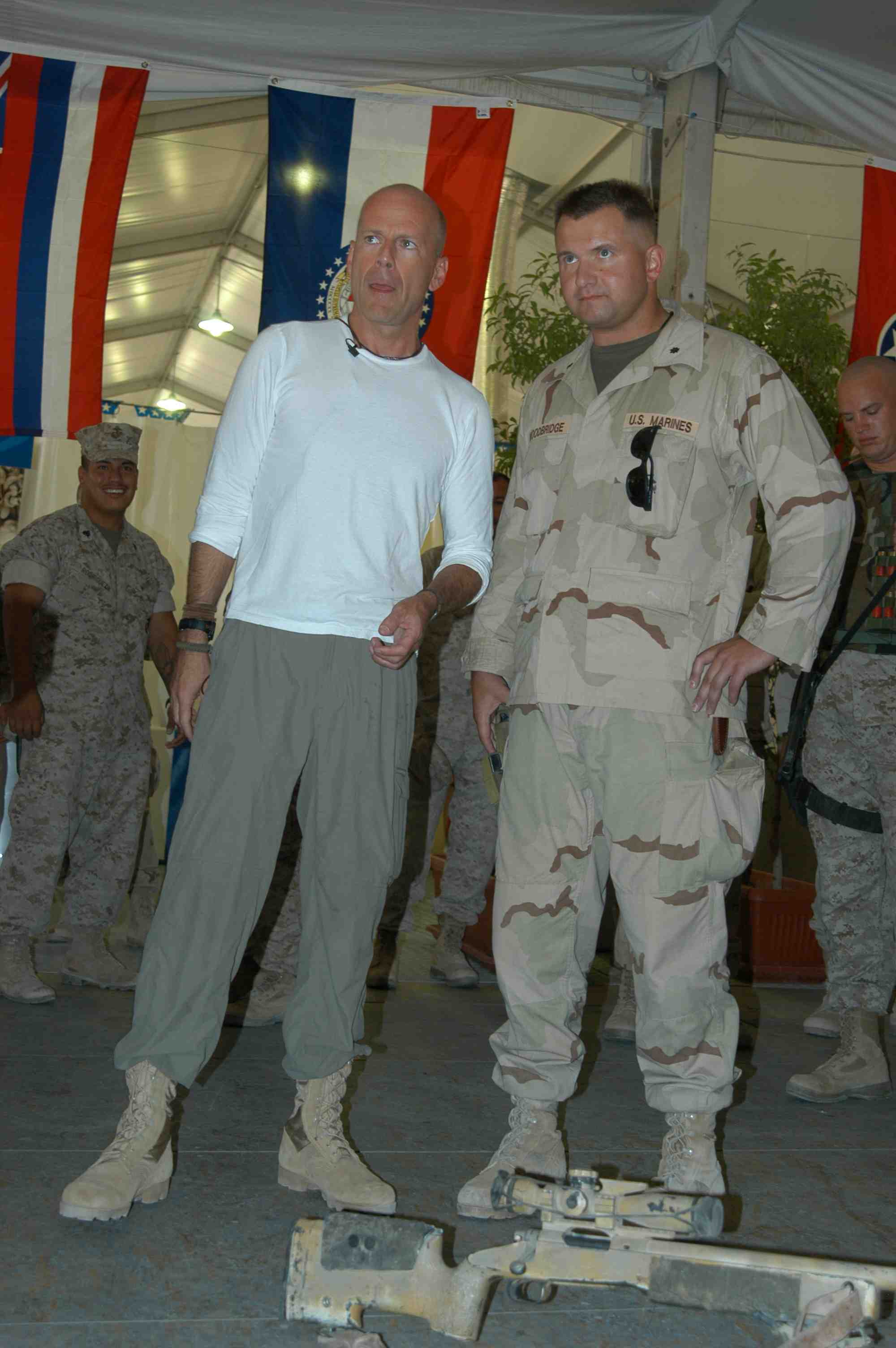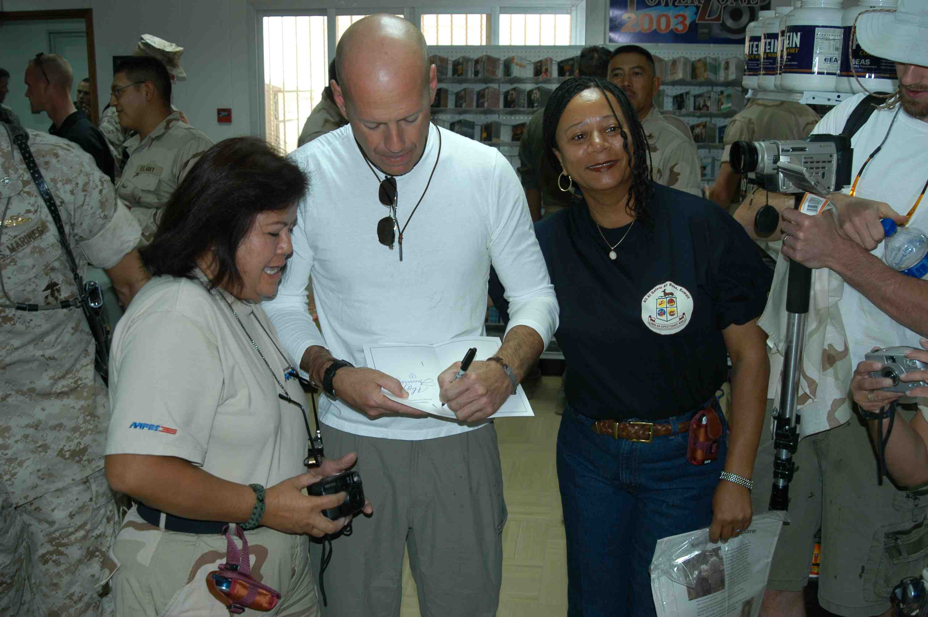 Pictures of Bruce Willis with the troops during a USO tour in Abu Dhabi, Iraq and Kuwait, 2003 (posted previously
