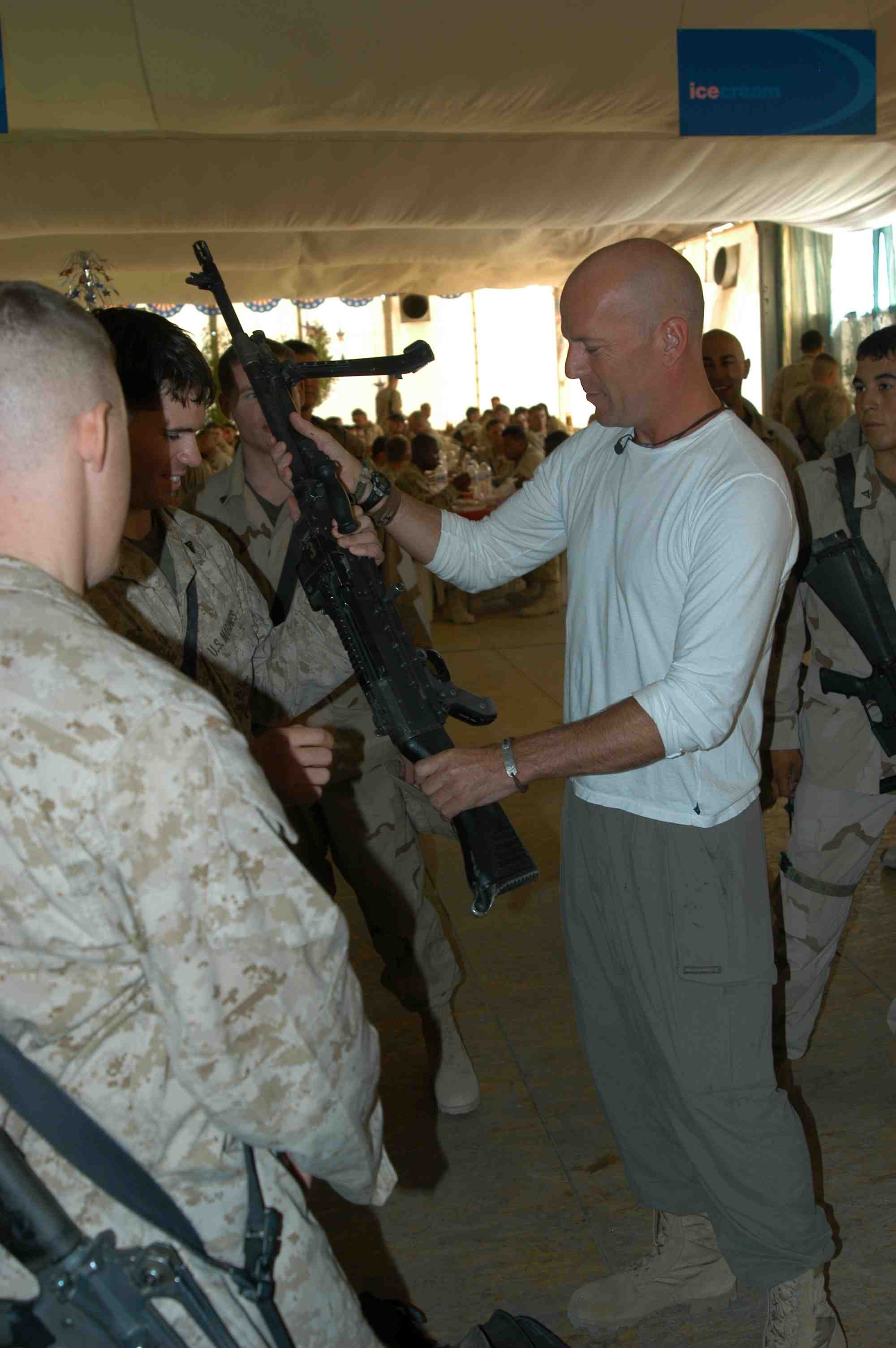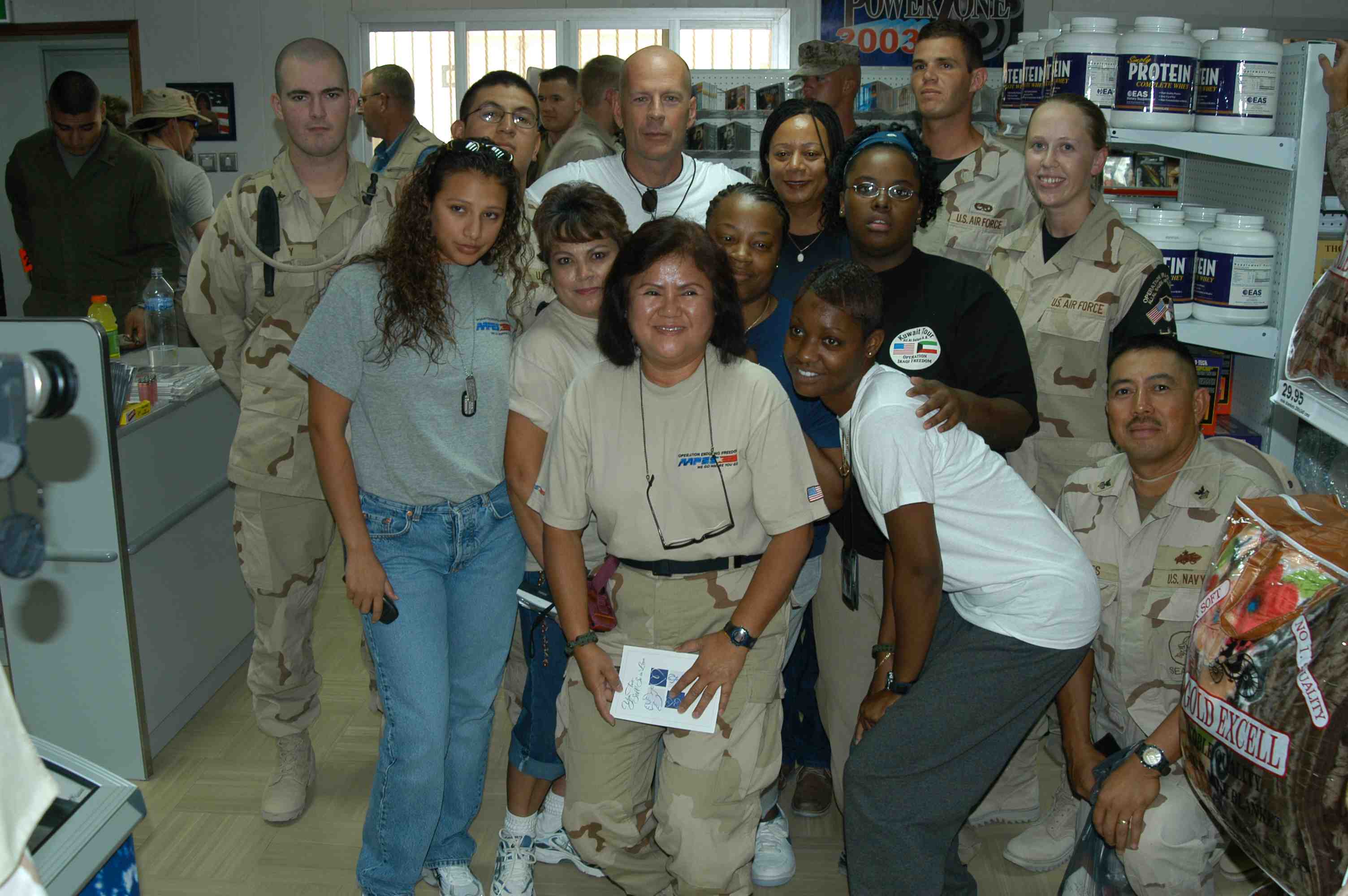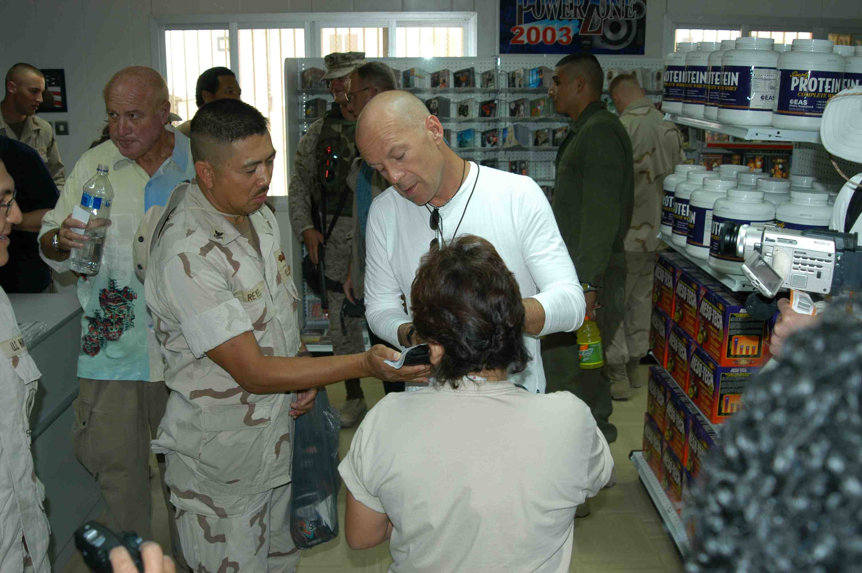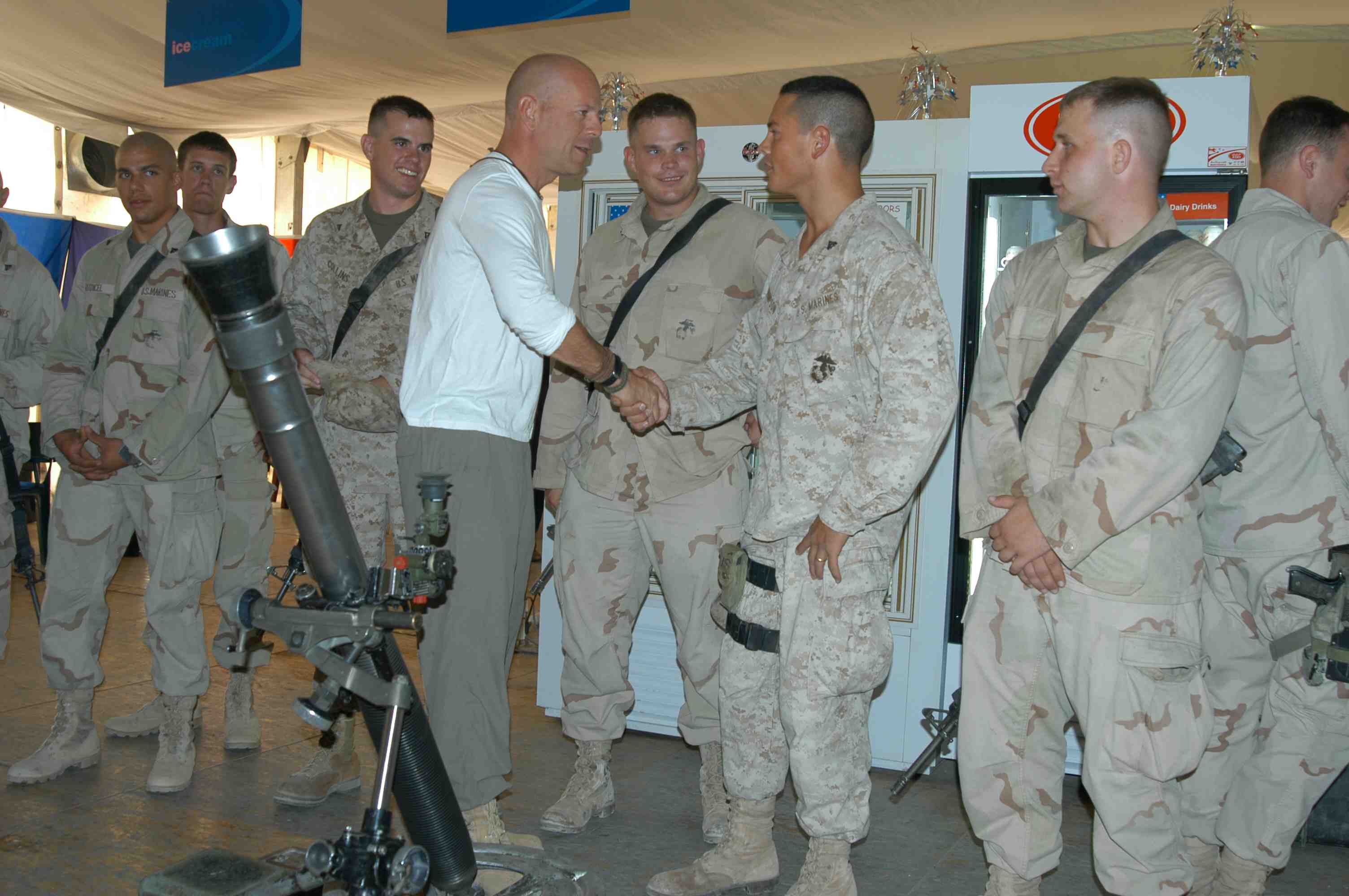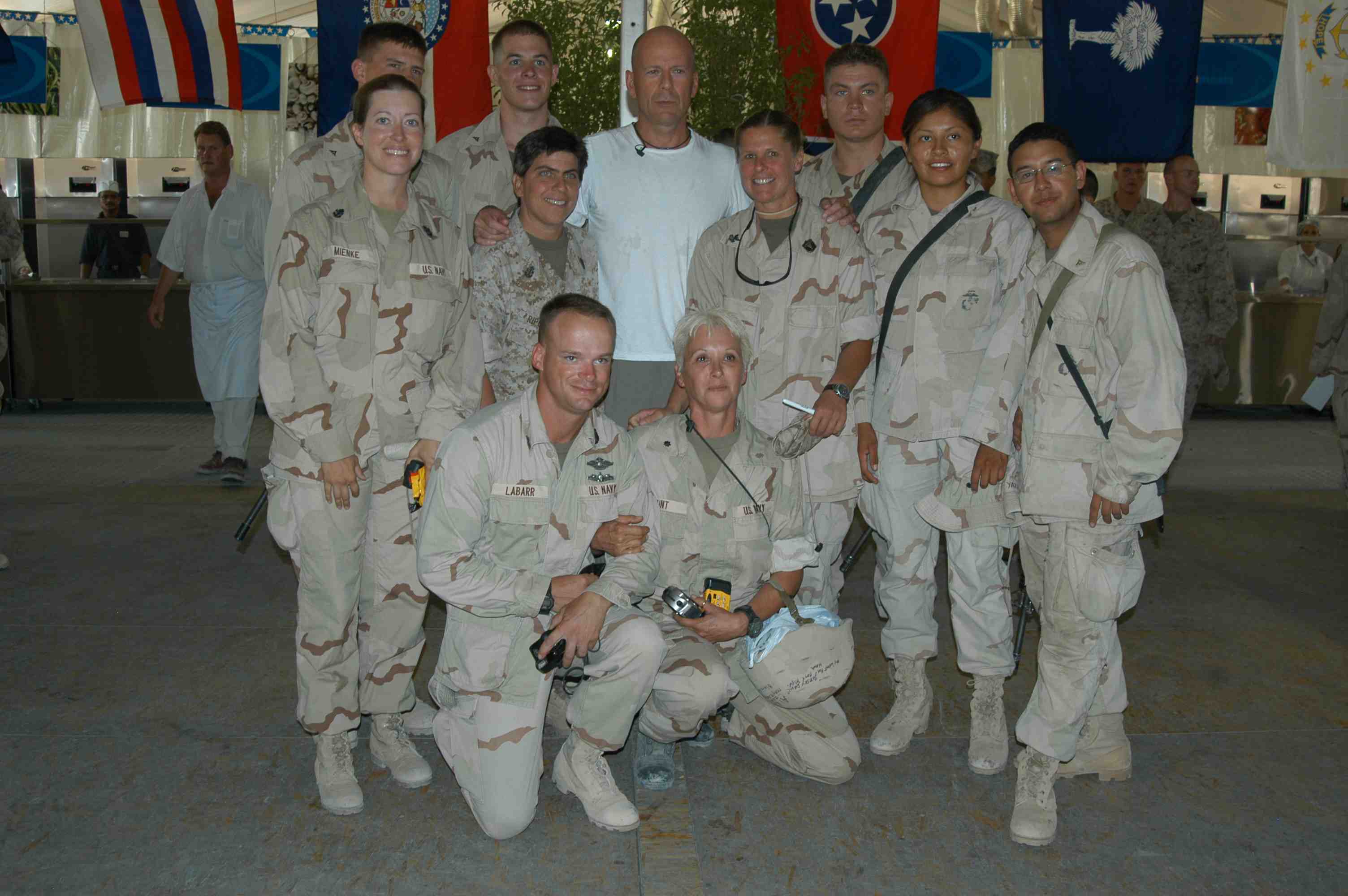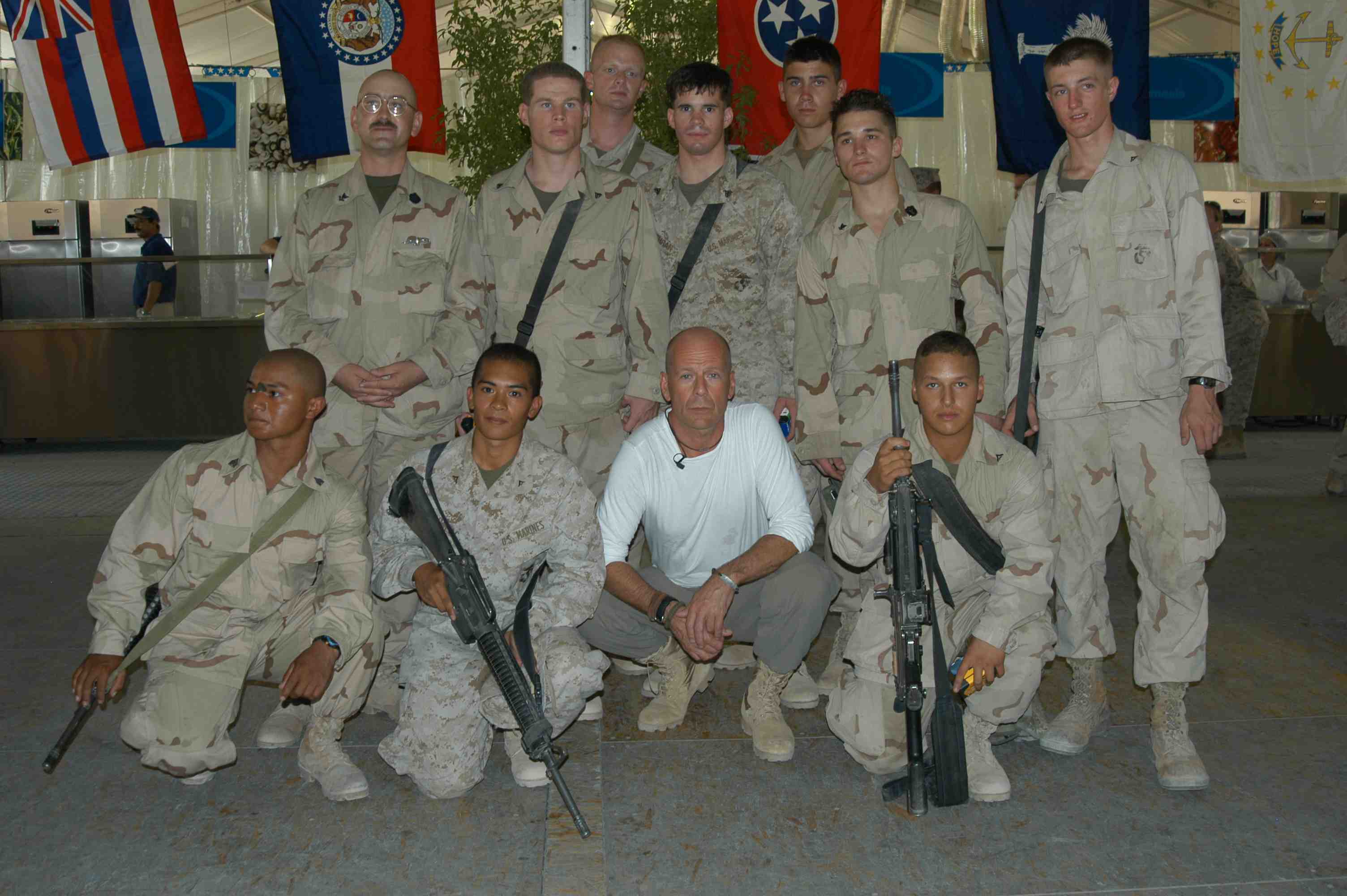 Pictures of Bruce Willis with the troops during a USO tour in Abu Dhabi, Iraq and Kuwait, 2003 (posted previously