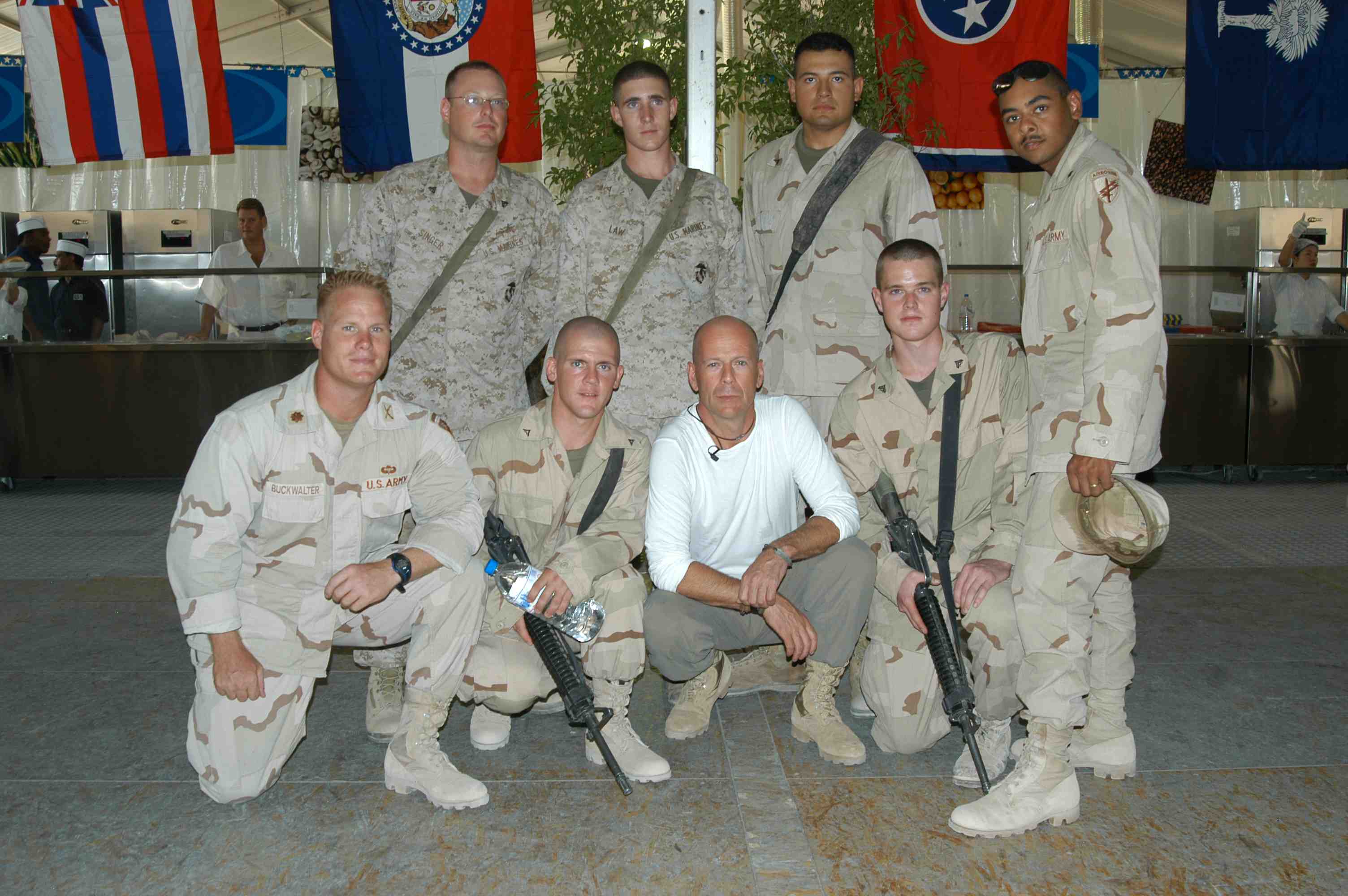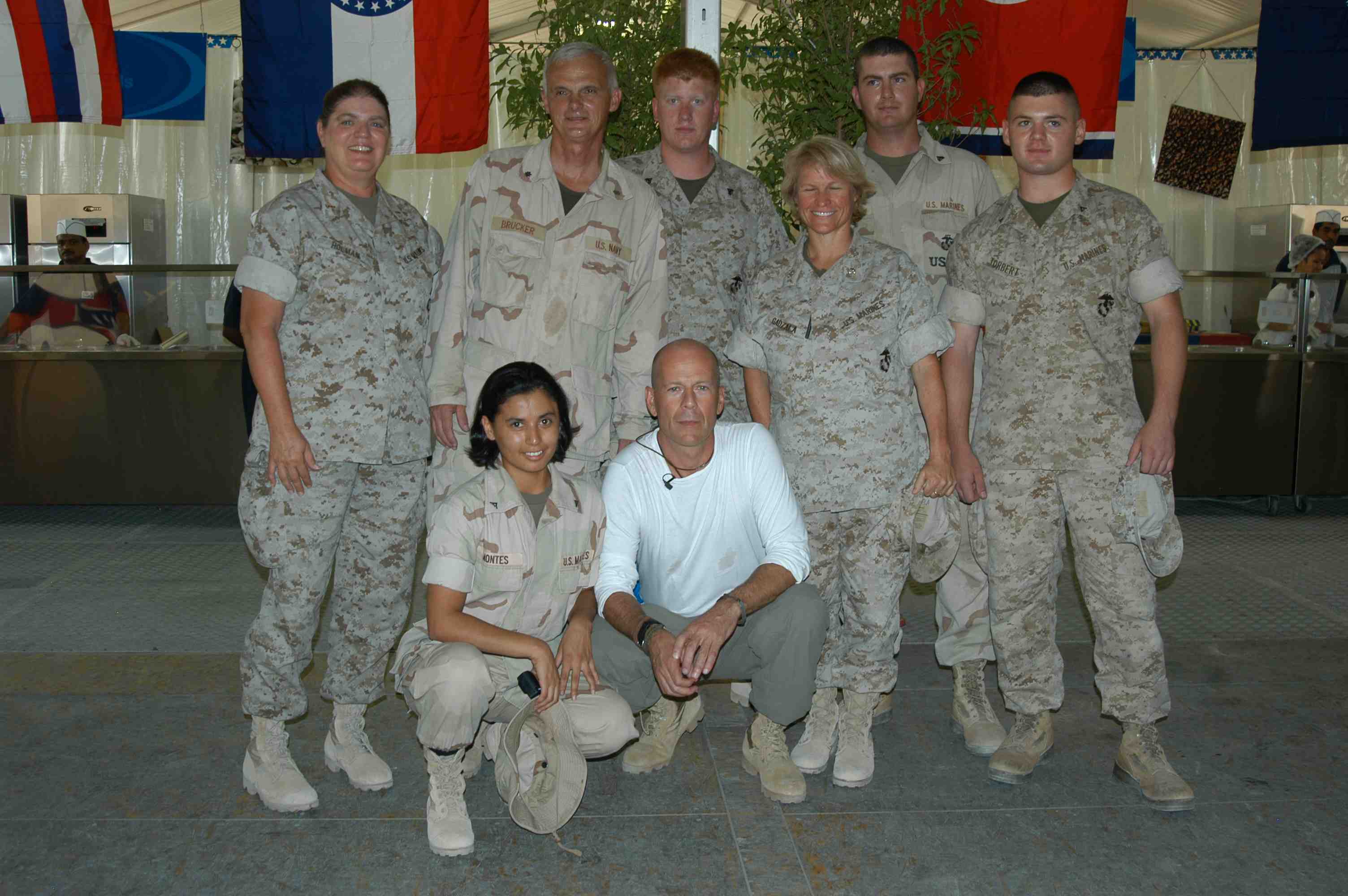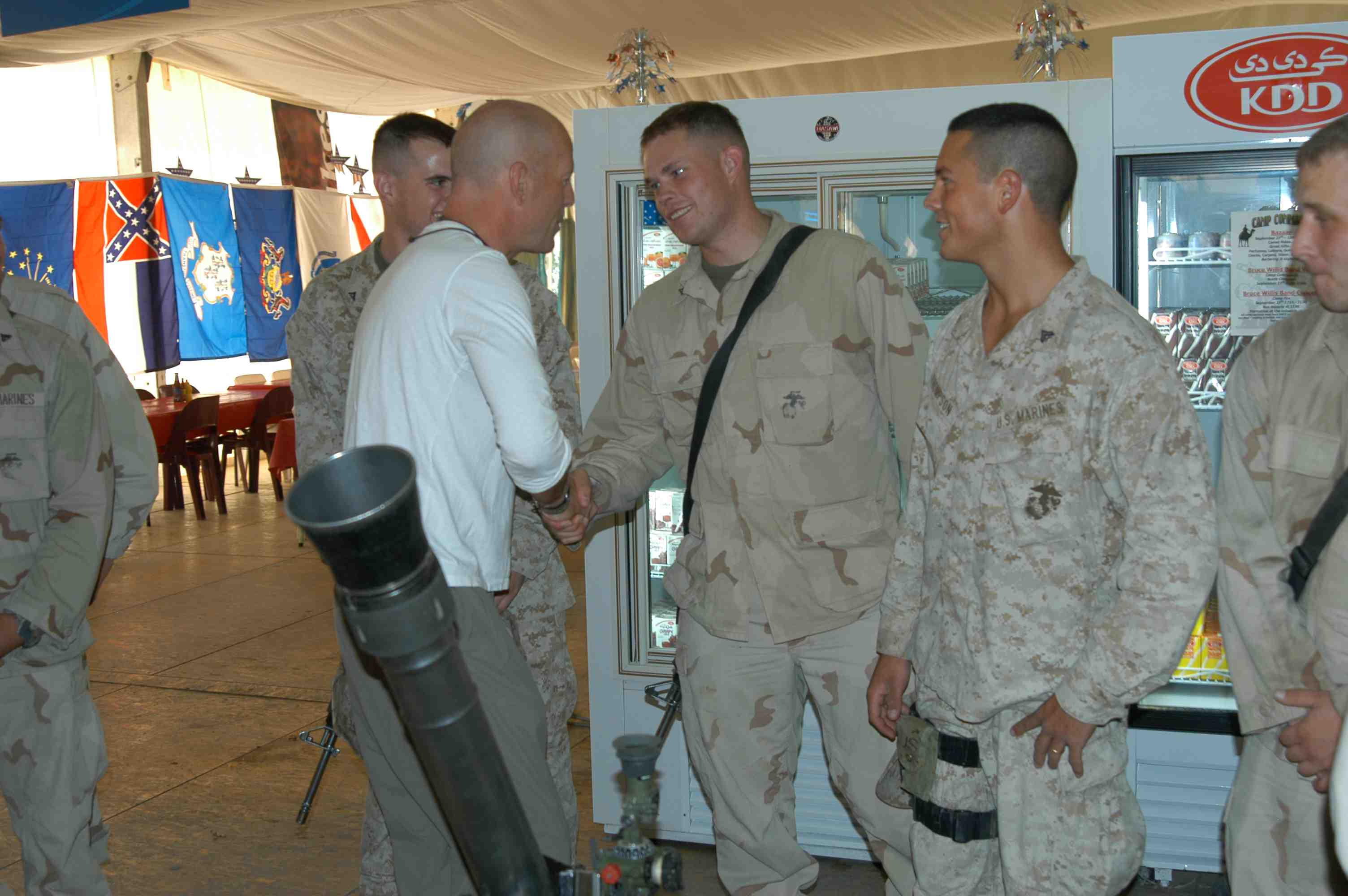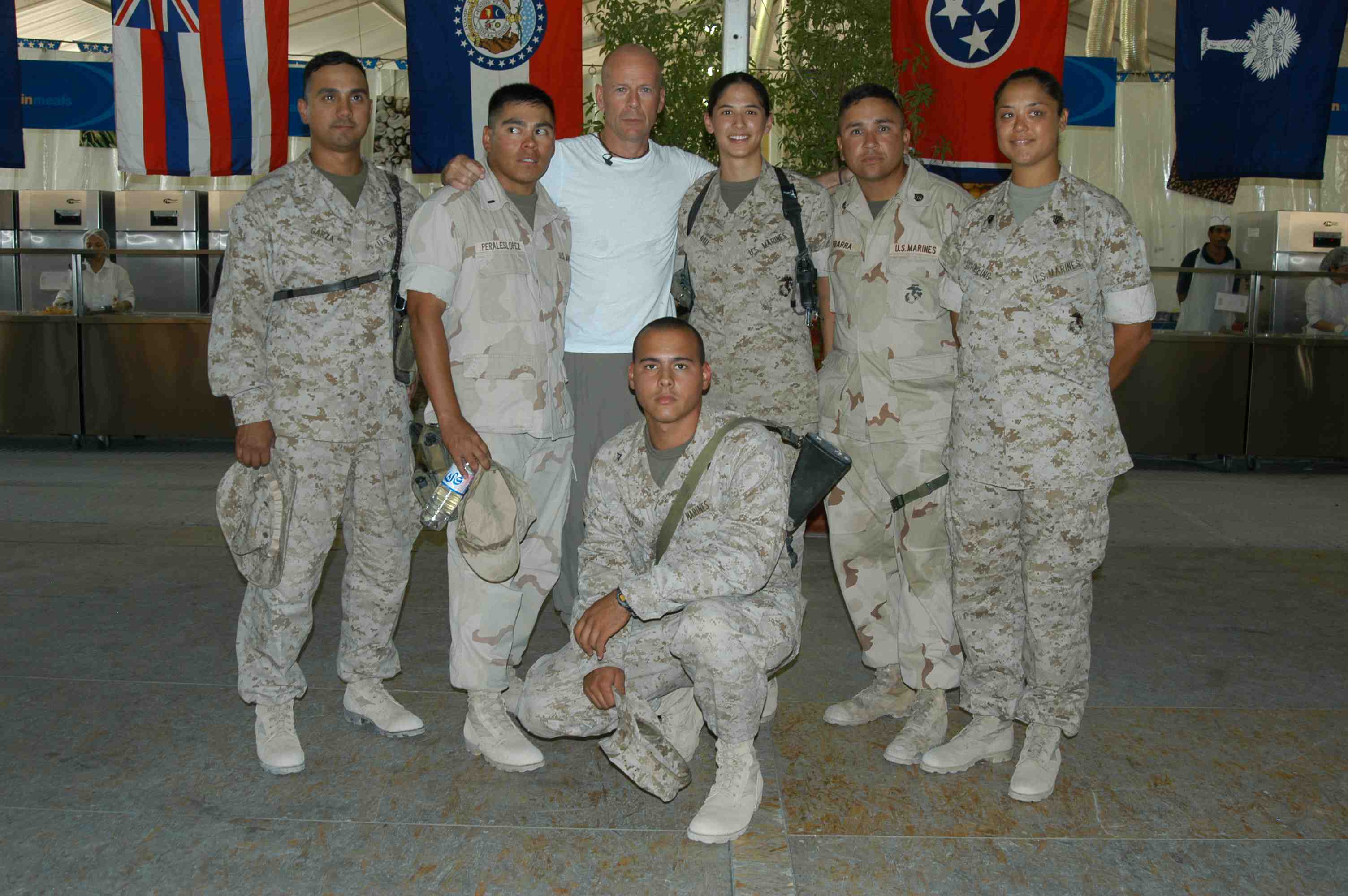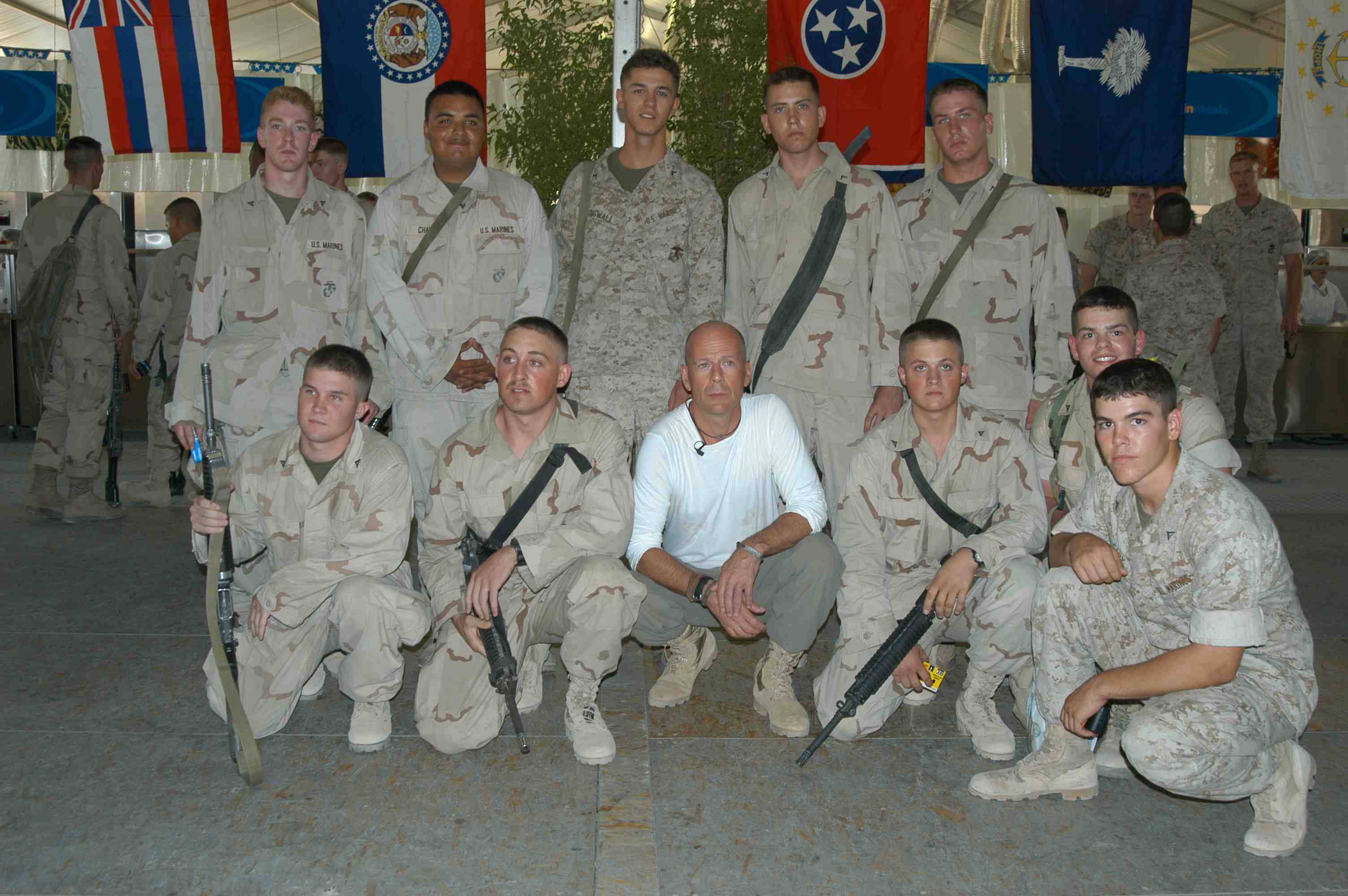 Pictures of Bruce Willis with the troops during a USO tour in Abu Dhabi, Iraq and Kuwait, 2003 (posted previously