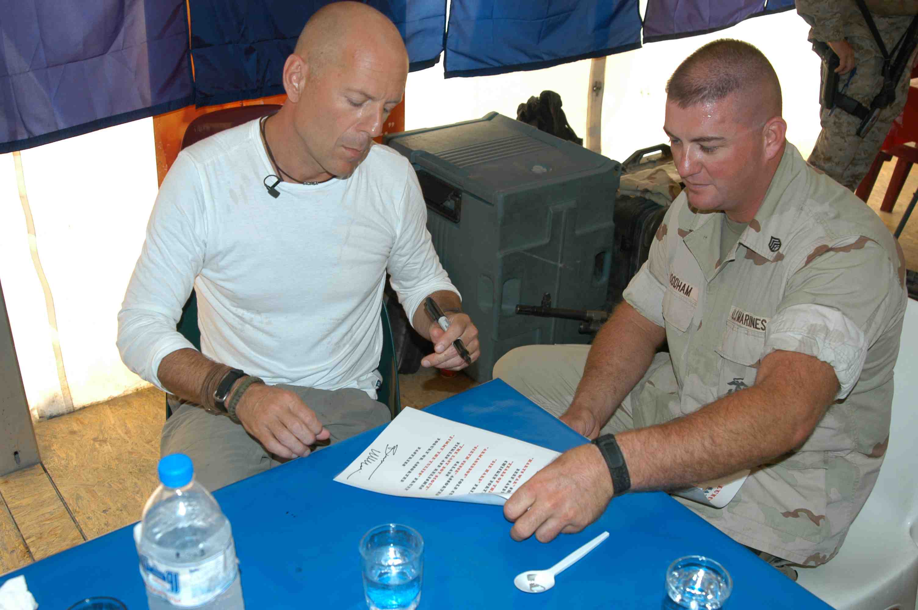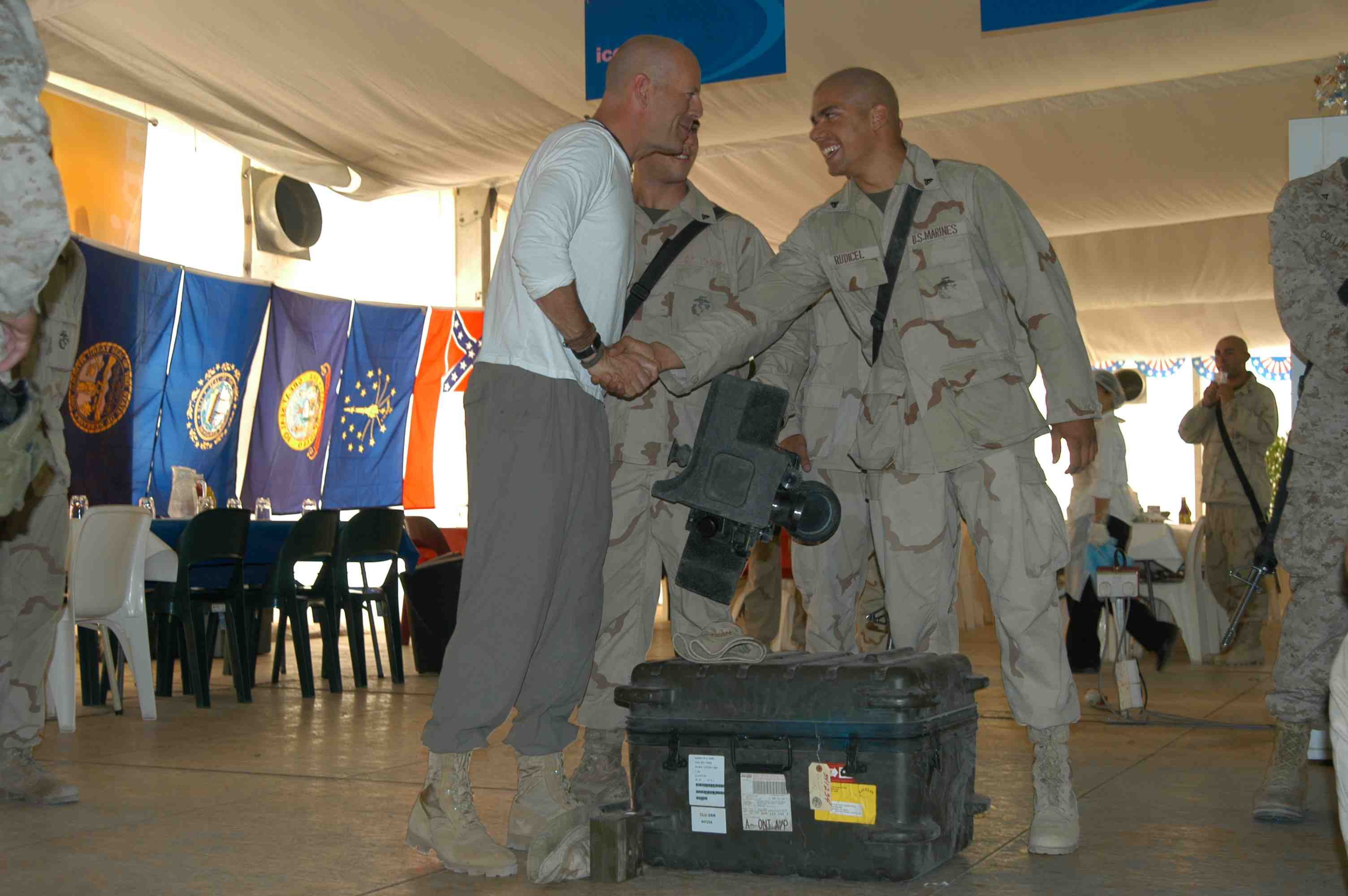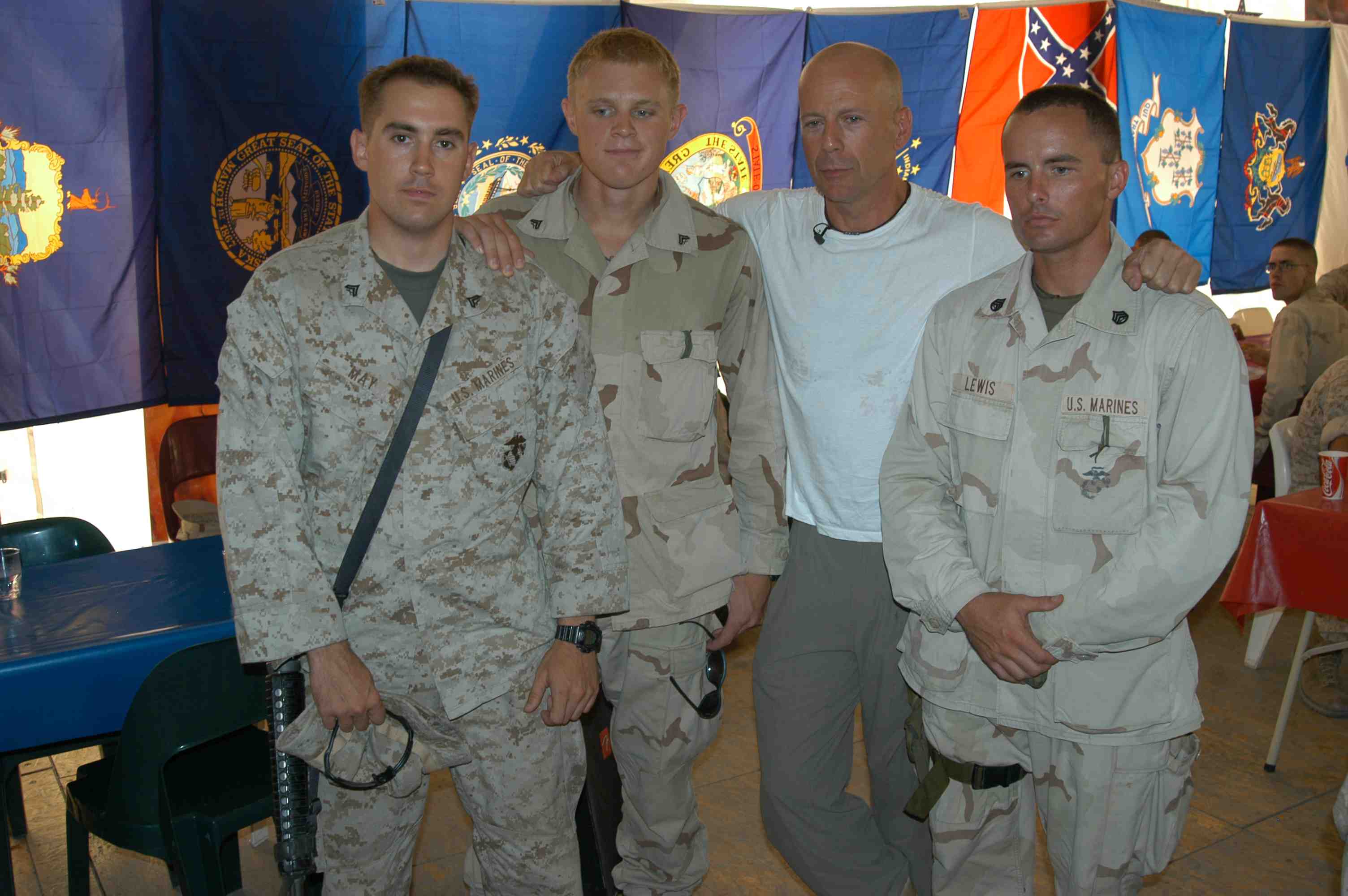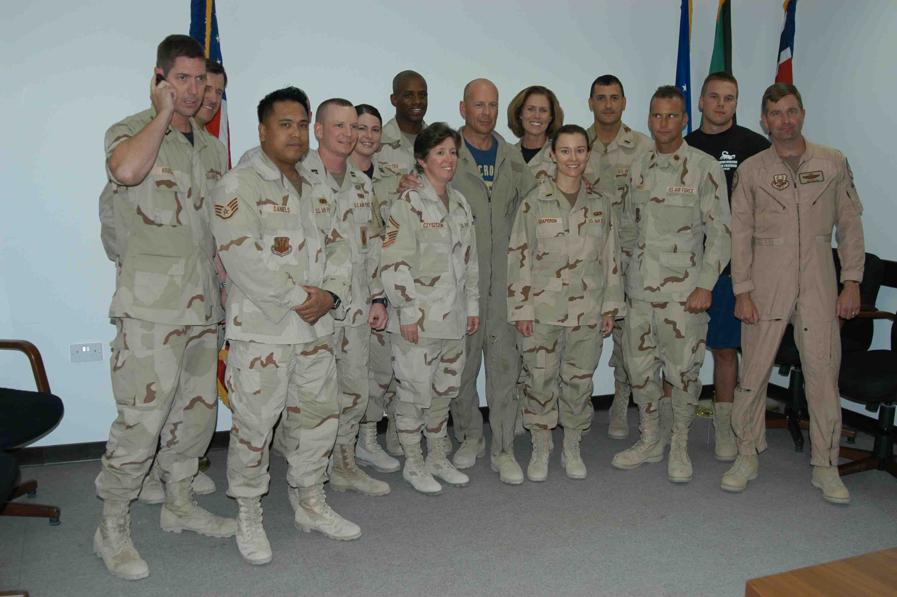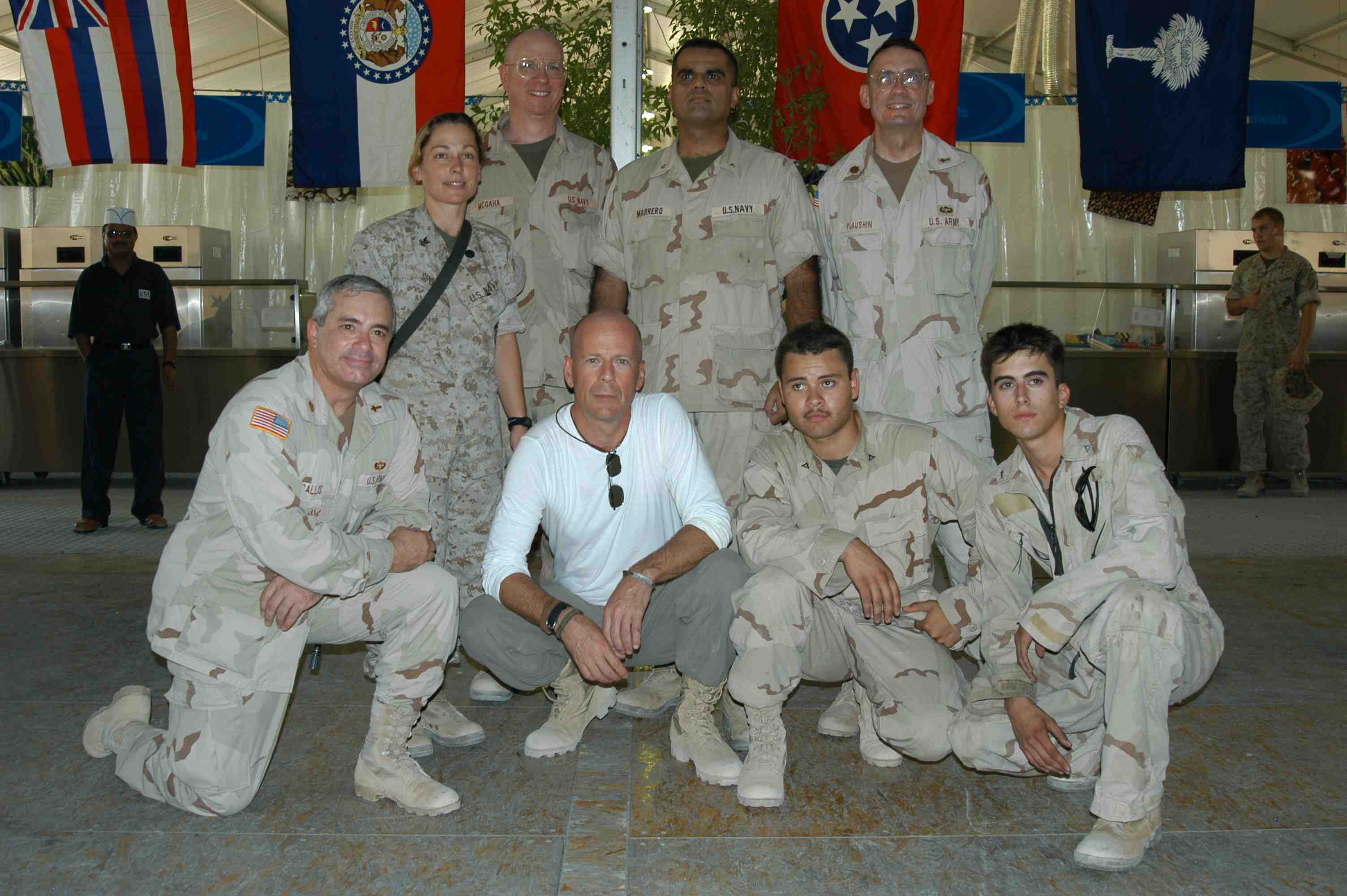 Pictures of Bruce Willis with the troops during a USO tour in Abu Dhabi, Iraq and Kuwait, 2003 (posted previously