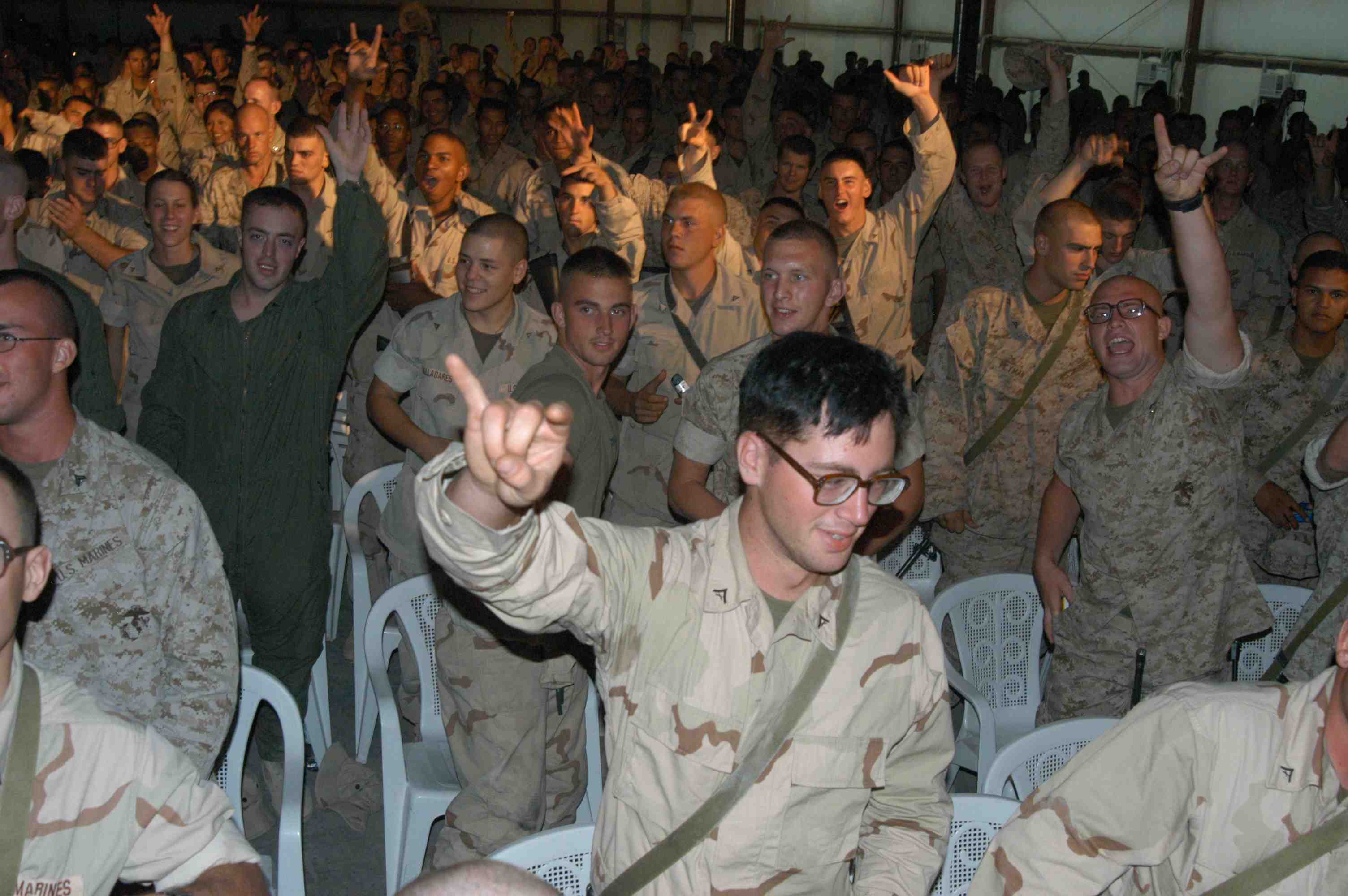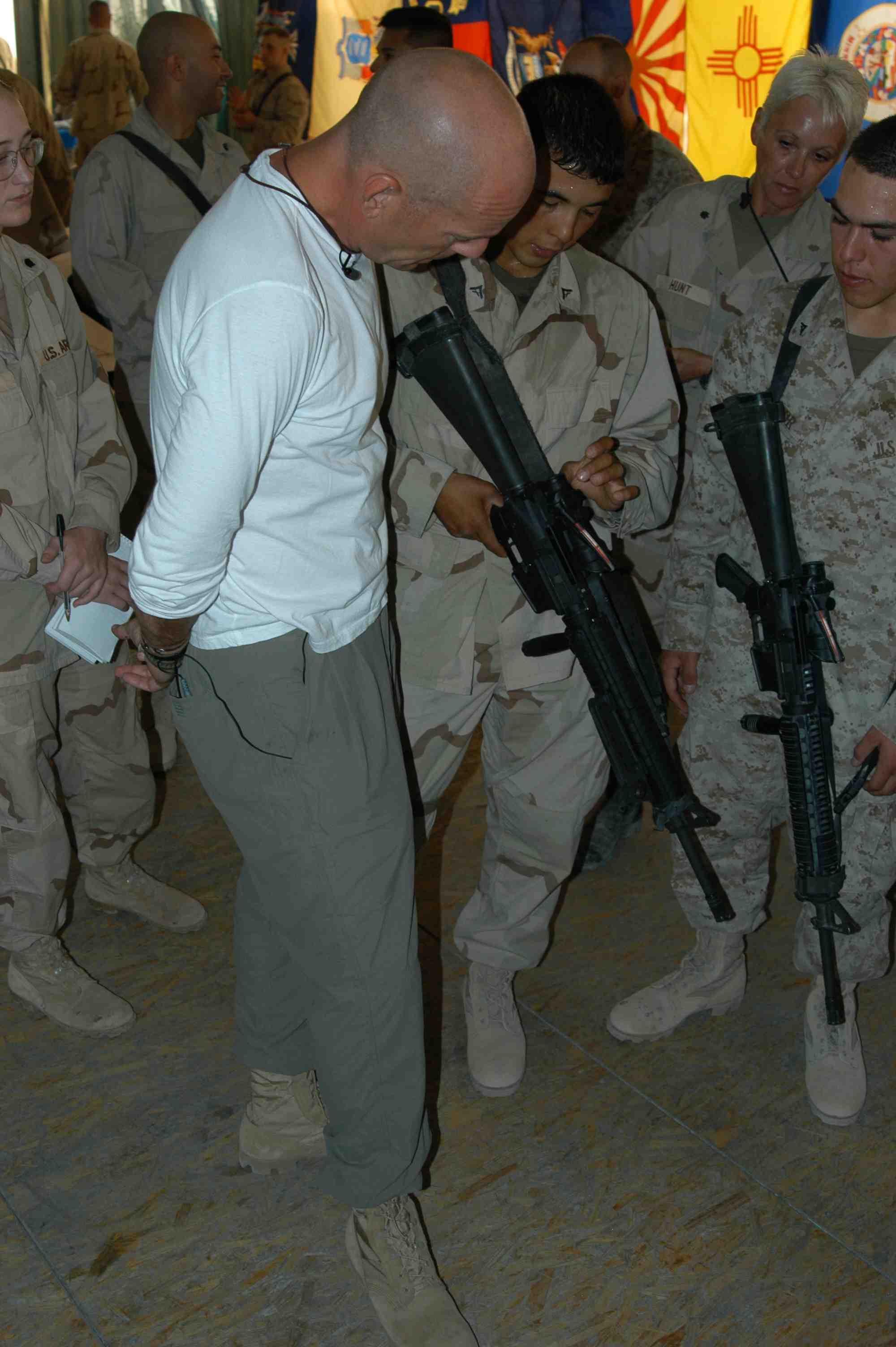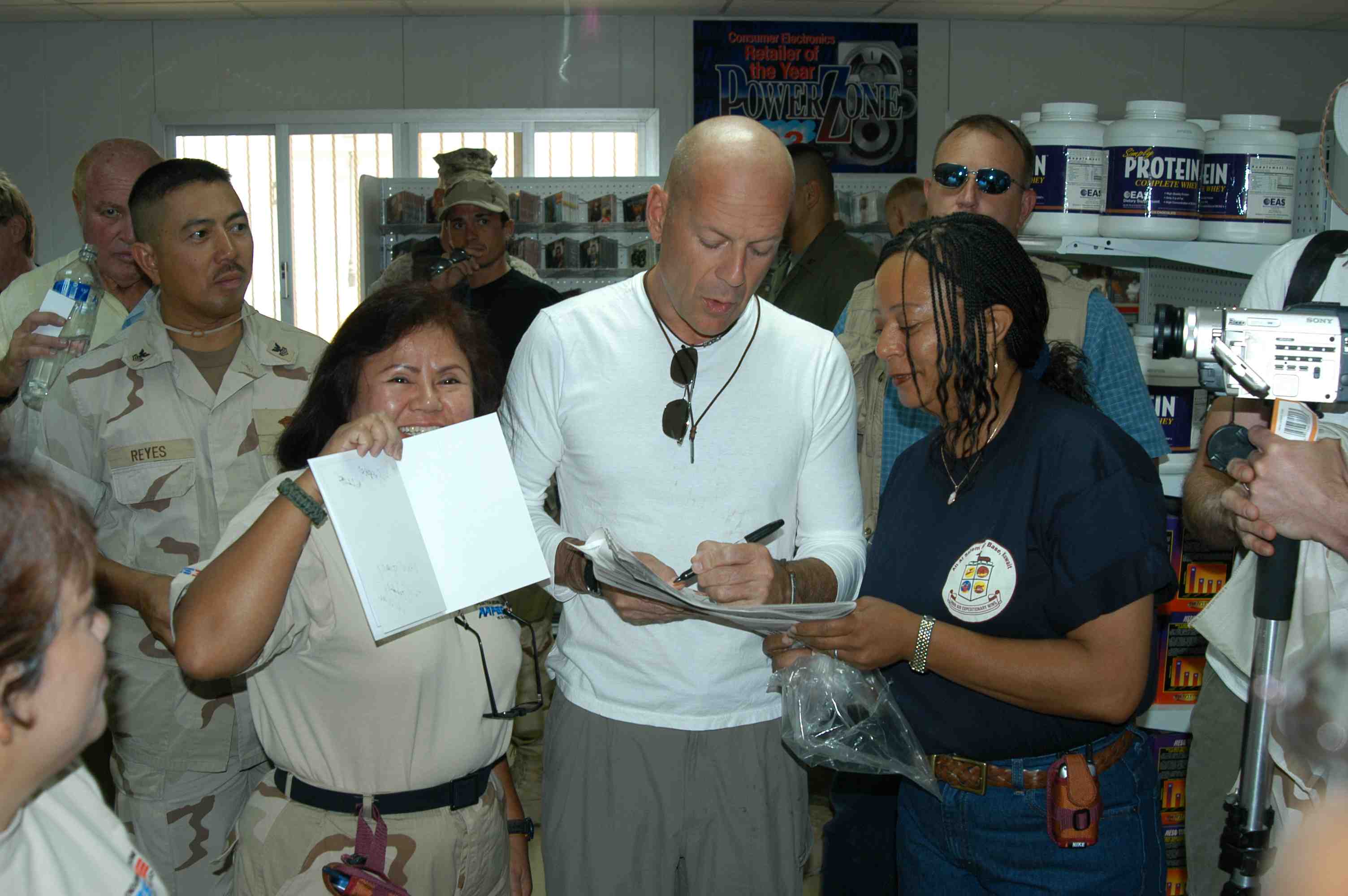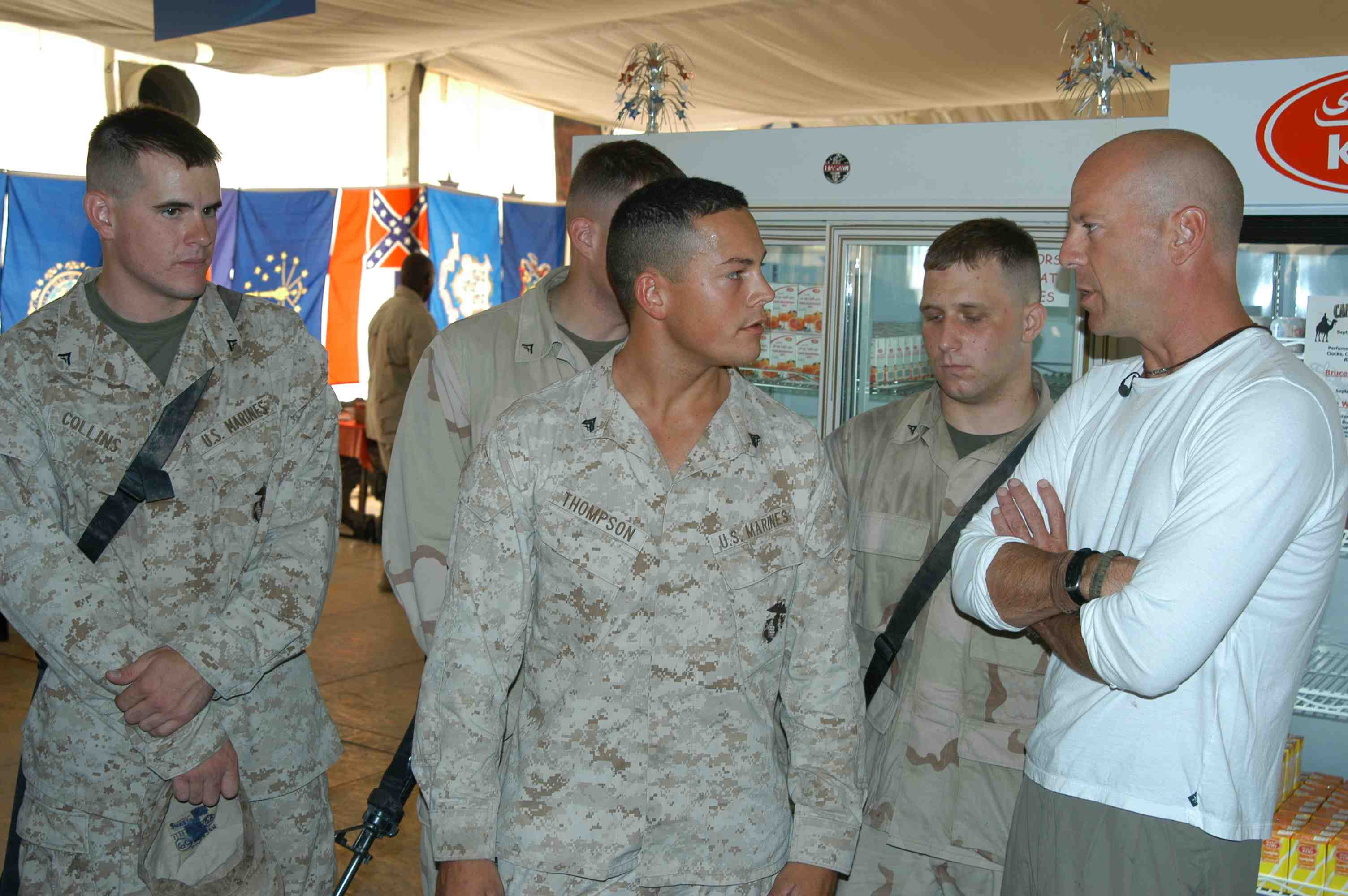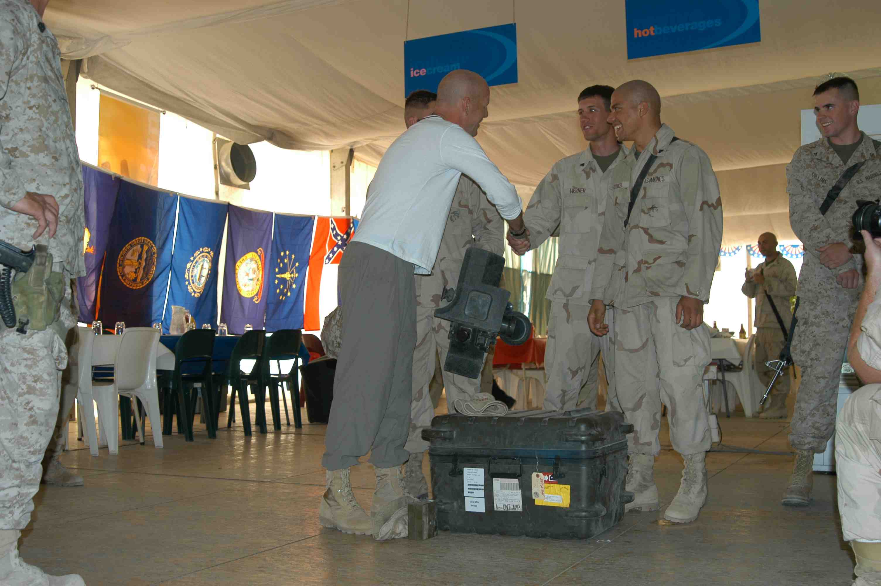 Pictures of Bruce Willis with the troops during a USO tour in Abu Dhabi, Iraq and Kuwait, 2003 (posted previously